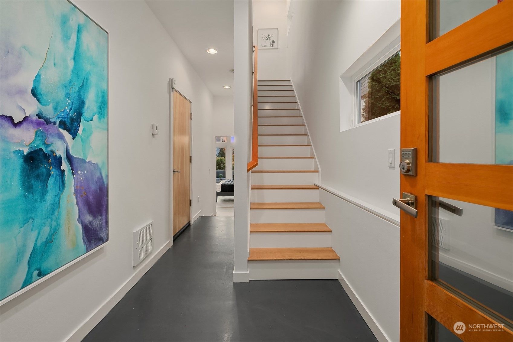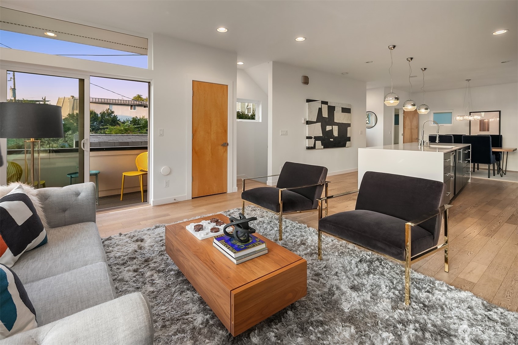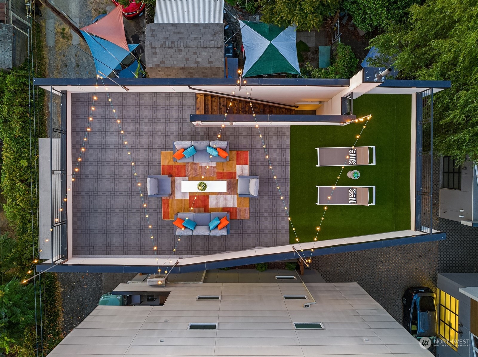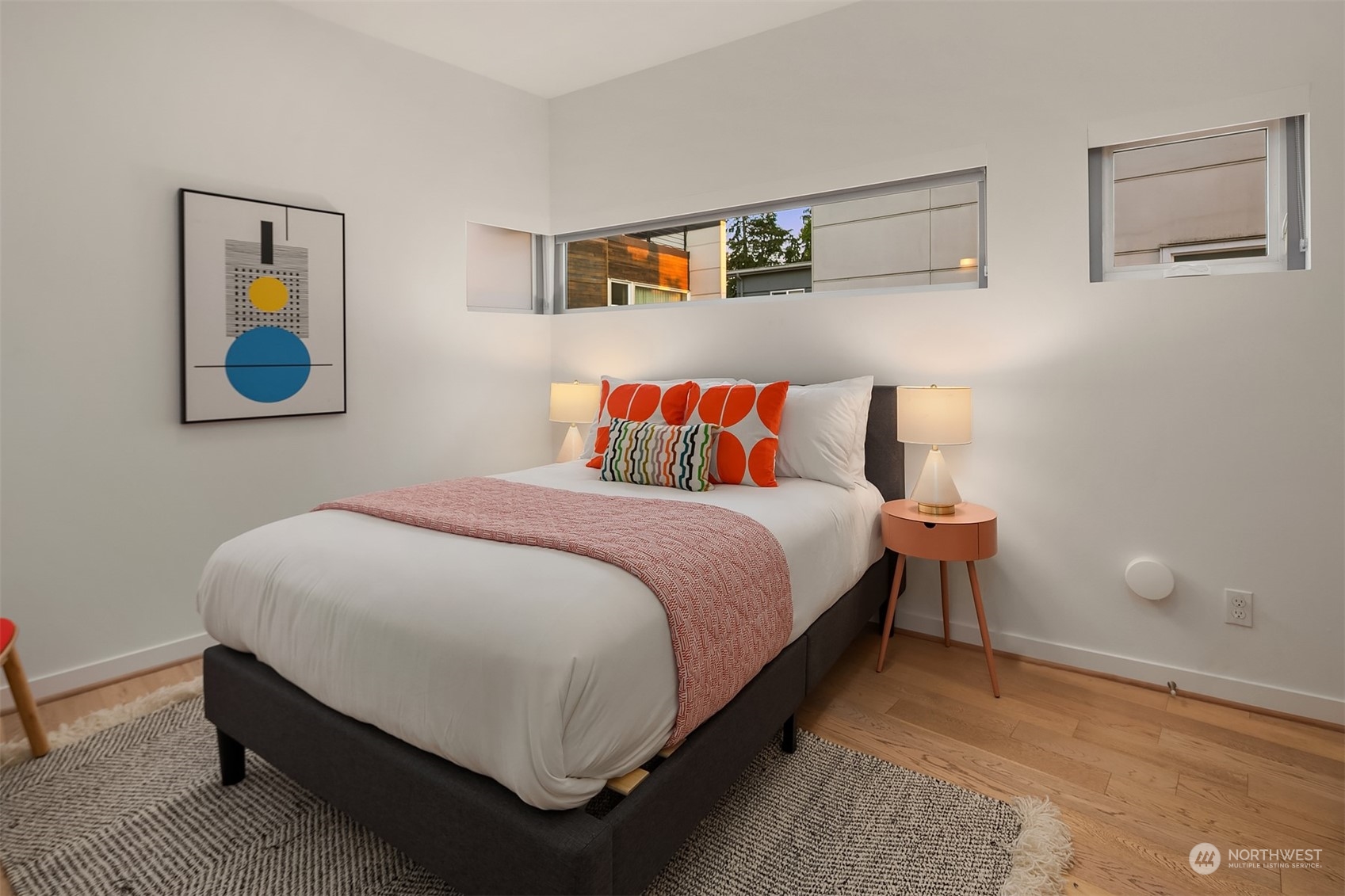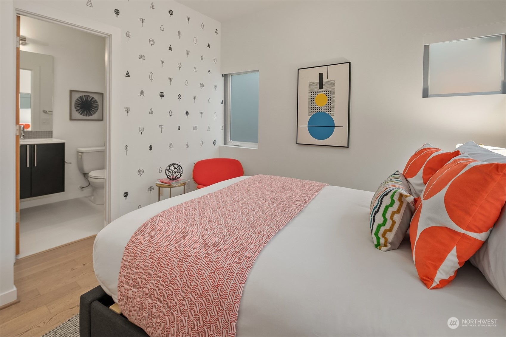 Private rooftop deck captures majestic skyline + mountain views in this modern home nestled between Capitol Hill & Central District. Natural light cascades thru walls of windows and fills open-concept layout. Discerning urbanites will appreciate thoughtful 3-level layout + contemporary design. Spacious main level boasts high ceilings and distinctive fireplace + separate dining area. Chef’s kitchen with high-end appliances, chic cabinetry and large island. Primary suite features walk-in closet + spa-like bath with dual-sink vanity and rain shower. Lower-level bonus room with ensuite bath can be ideal guest suite or home office. Attached garage + rare additional off-street parking, and abundant storage throughout. No HOA dues.