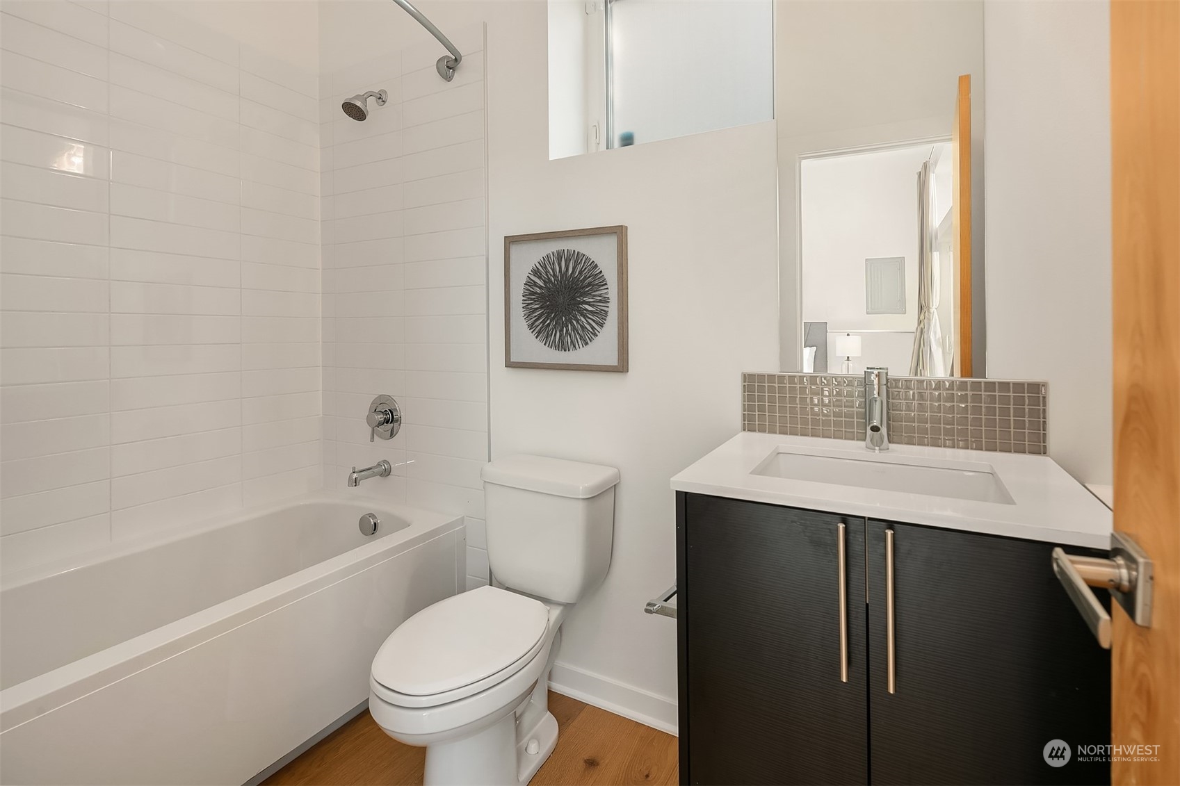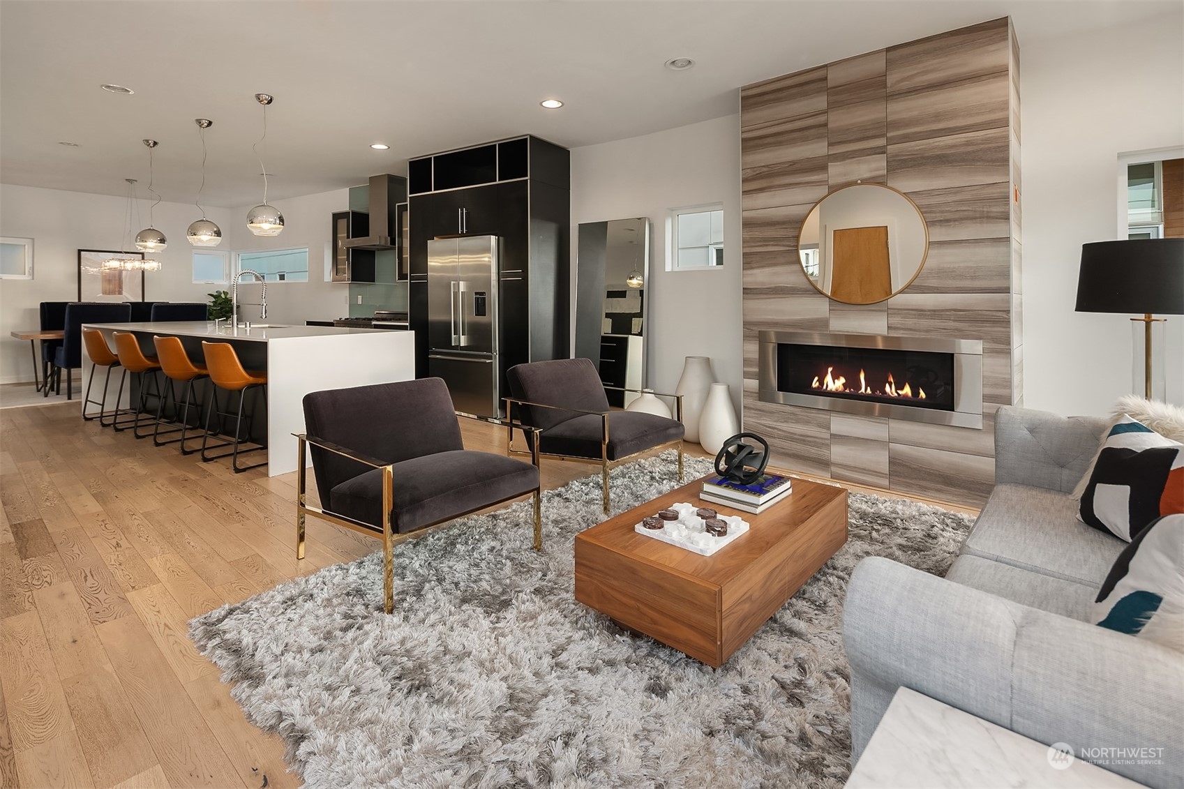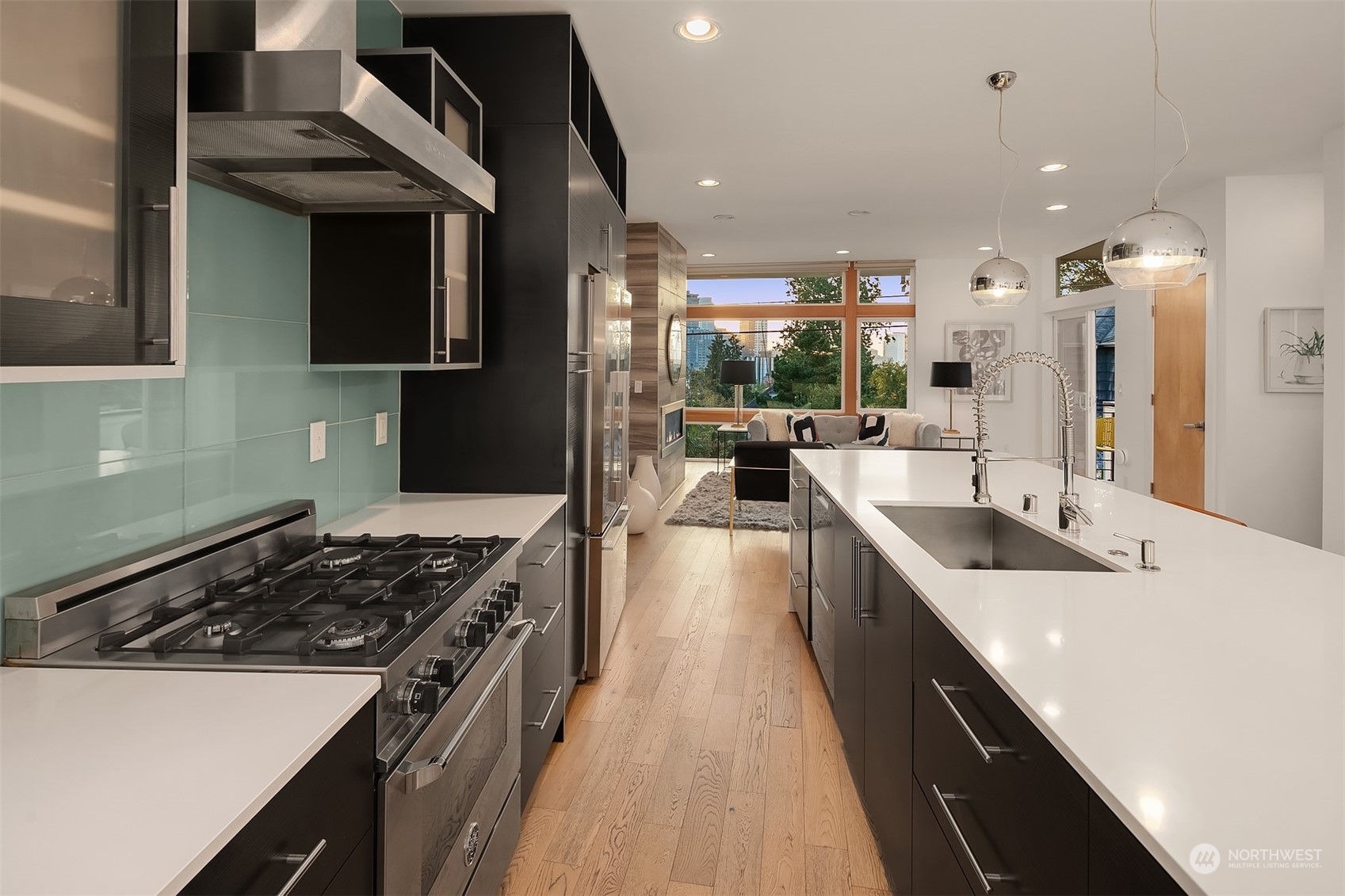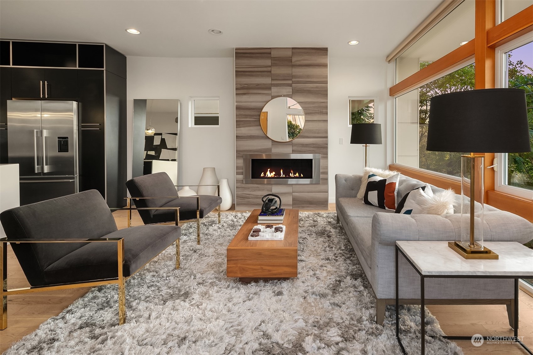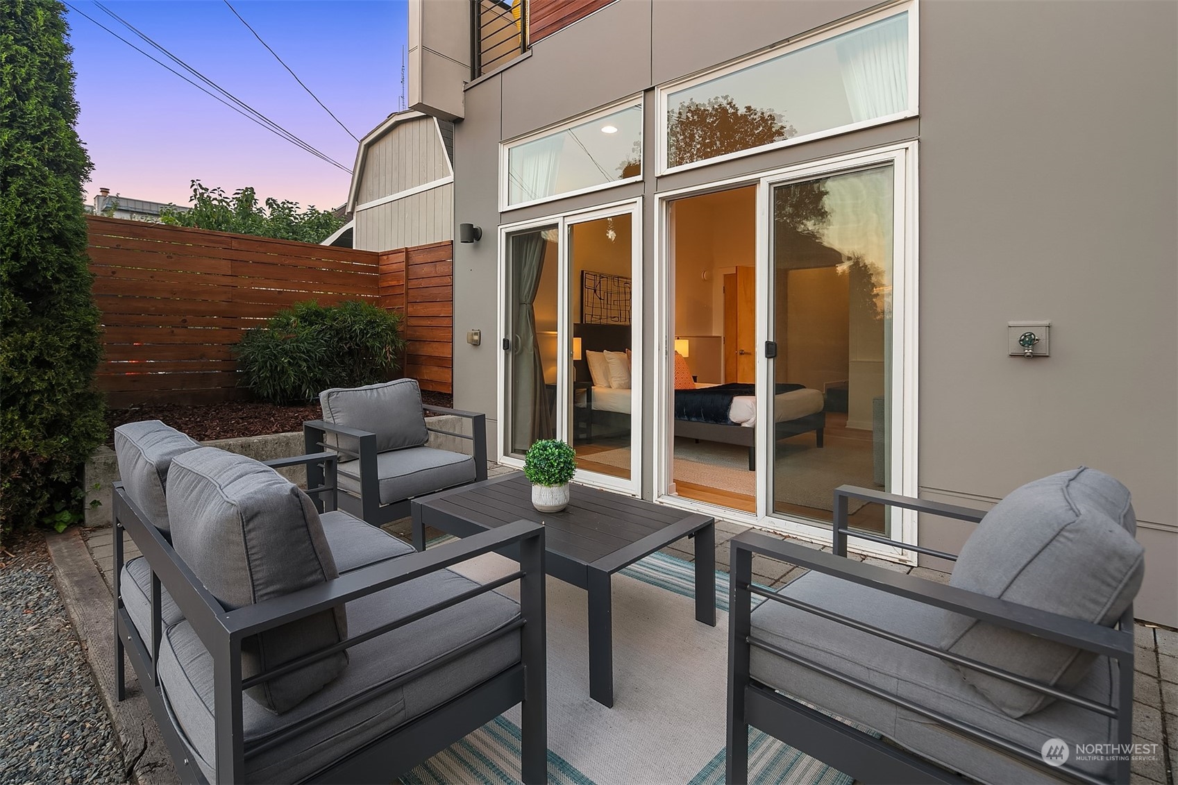 Private rooftop deck captures majestic skyline + mountain views in this modern home nestled between Capitol Hill & Central District. Natural light cascades thru walls of windows and fills open-concept layout. Discerning urbanites will appreciate thoughtful 3-level layout + contemporary design. Spacious main level boasts high ceilings and distinctive fireplace + separate dining area. Chef’s kitchen with high-end appliances, chic cabinetry and large island. Primary suite features walk-in closet + spa-like bath with dual-sink vanity and rain shower. Lower-level bonus room with ensuite bath can be ideal guest suite or home office. Attached garage + rare additional off-street parking, and abundant storage throughout. No HOA dues.