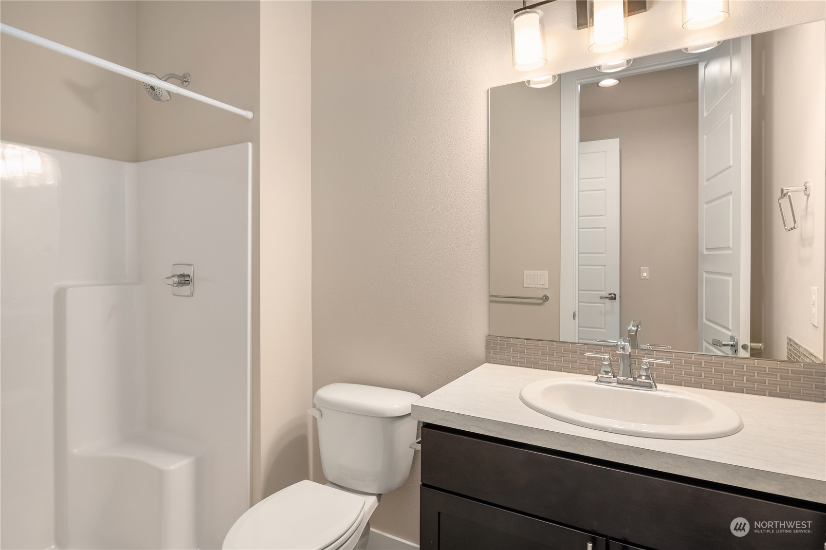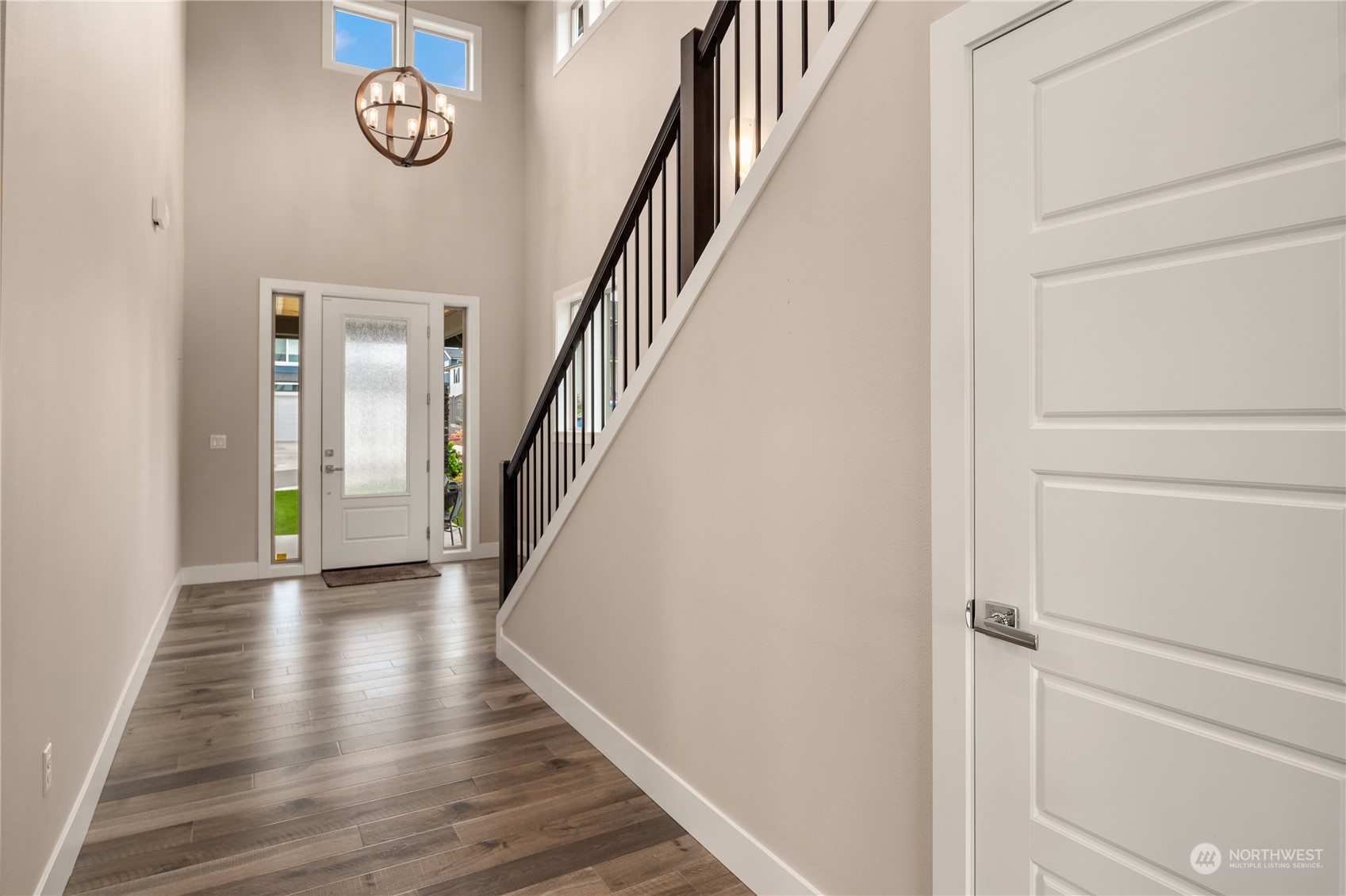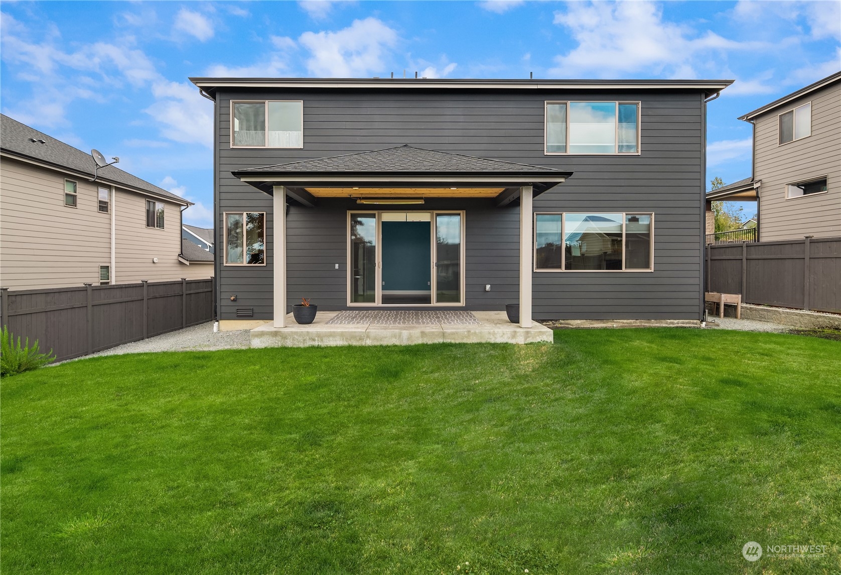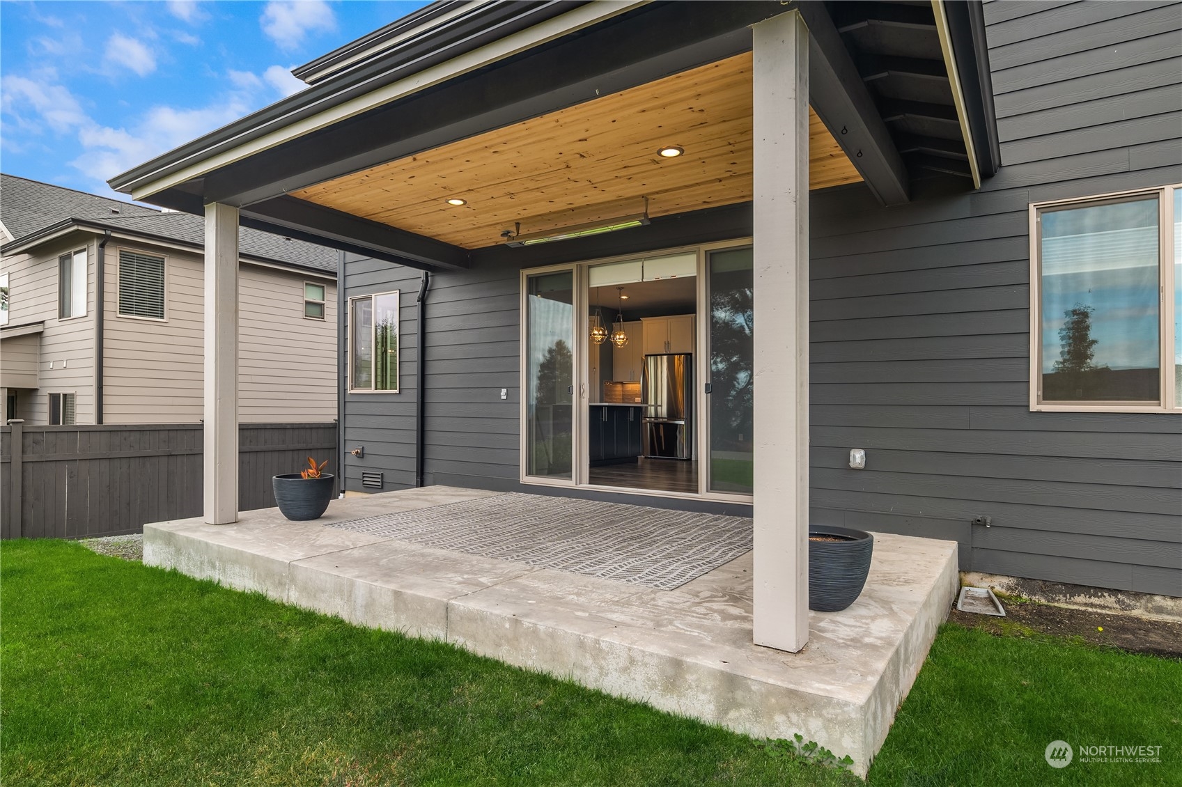 Wonderful 2019 JK Monarch resale. Light-filled entry flows into a gorgeous great room with herringbone-tiled fireplace, 10 foot ceilings and oversize slider to covered patio. Continue through to kitchen that features quartz counters and island w/storage, ss appliances and walk in pantry. Powder room and guest room/office w/3/4 bath on main. Upstairs you'll find a delightful primary with dual closets, a spacious, tiled bath/shower area and partial Sound view! 2 add'l upstairs bdrms w/Jack & Jill bath and a large bonus room for that big TV! The infrared heater on the patio make this outdoor room a year round delight looking out on a lawn just waiting for games and parties. Home features A/C, full front & rear sprinklers and 3 car garage.