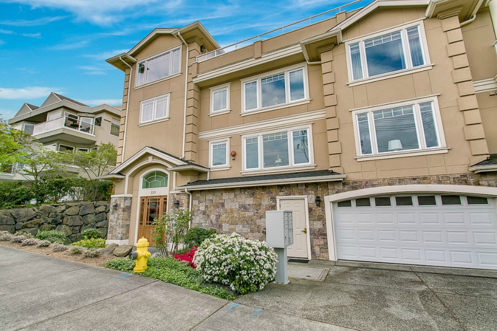 Live the dream in this rare listing located in heart of Edmonds. Exquisite 2000 sq.ft+ condo in 5 unit/55+ building. Open floor plan w/3 sets of French doors leading to the almost 1200sq. ft. Southern facing patio- great flow for entertaining both indoor & out! Kitchen features beautiful cherry cabinets, SS appl & large island. Master w/5piece spa bath, 2nd en suite bed & media room, radiant heat flrs, gas cooking, large laundry & lots of storage. 2 prkg spots in secure garage & storage locker.