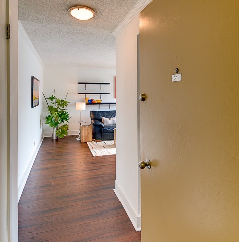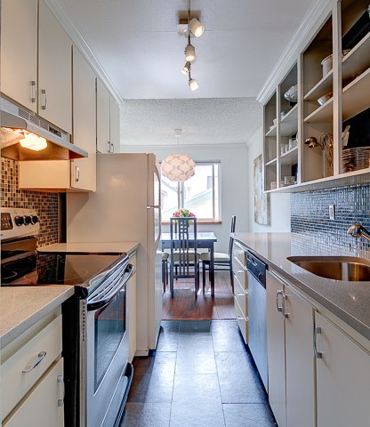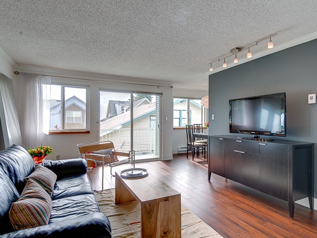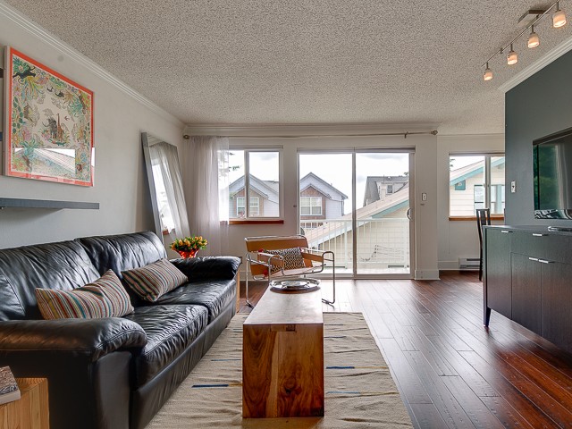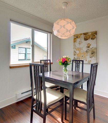 Top floor corner unit in desirable upper Fremont. Gorgeous bamboo floors throughout condo. Updated double pane windows allow for loads of sunlight and peak-boo views of city from balcony. Kitchen complete w/ quartz counters, slate flooring & tile back splash. Updated bathroom. One assigned parking spot & storage unit. All-in-one w/d in unit plus on site laundry rm. Small well run building- one domestic pet ok. Close to bus, shopping, coffee and dining!