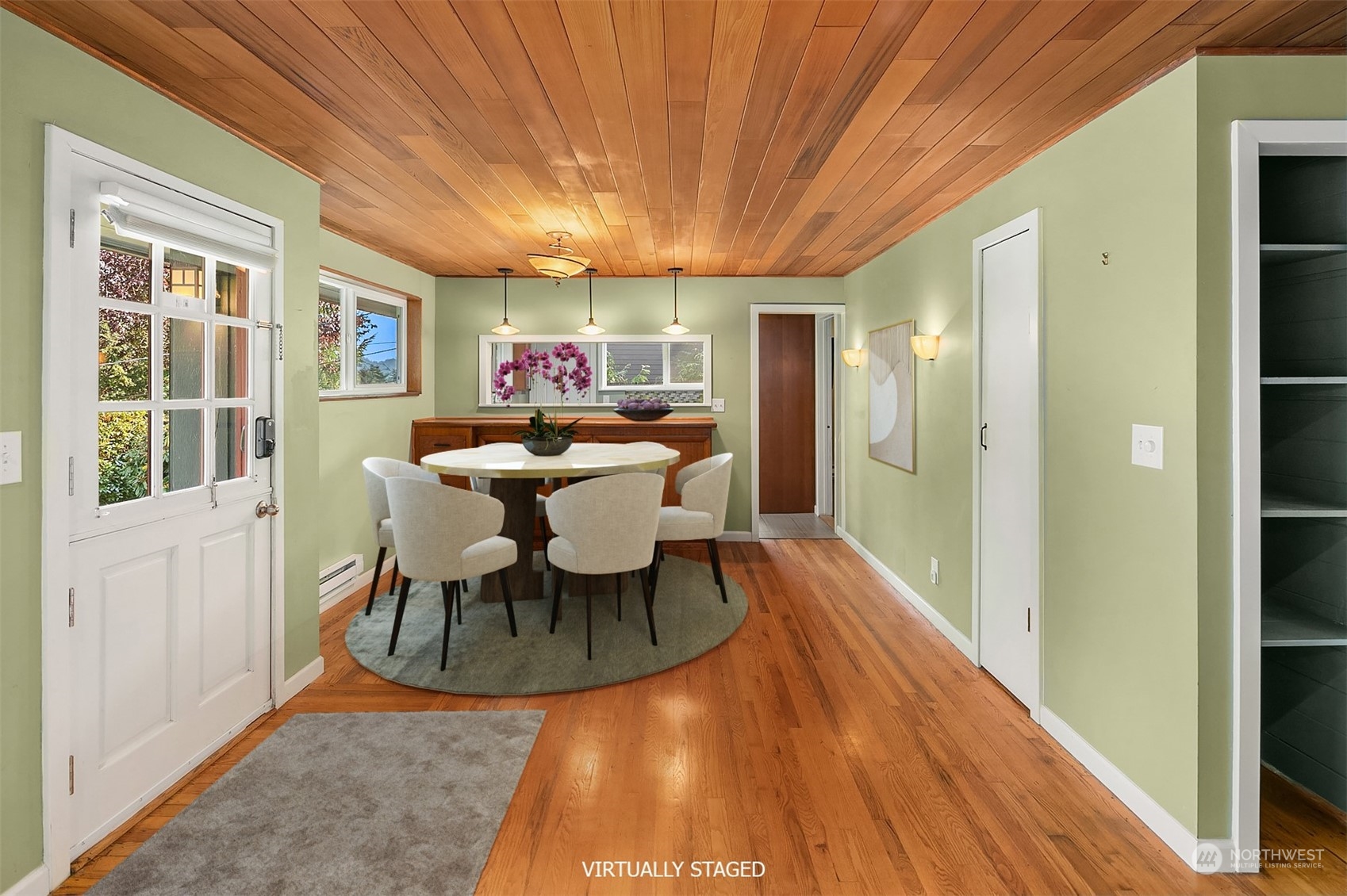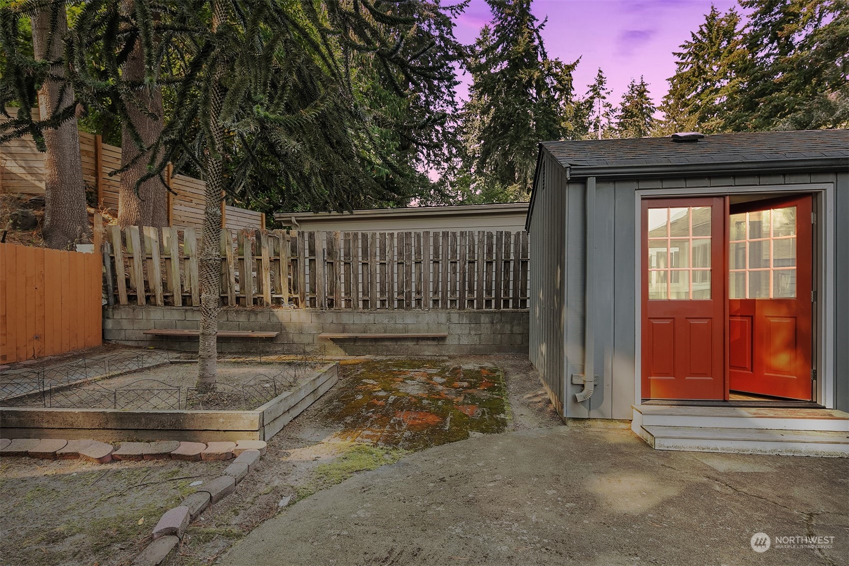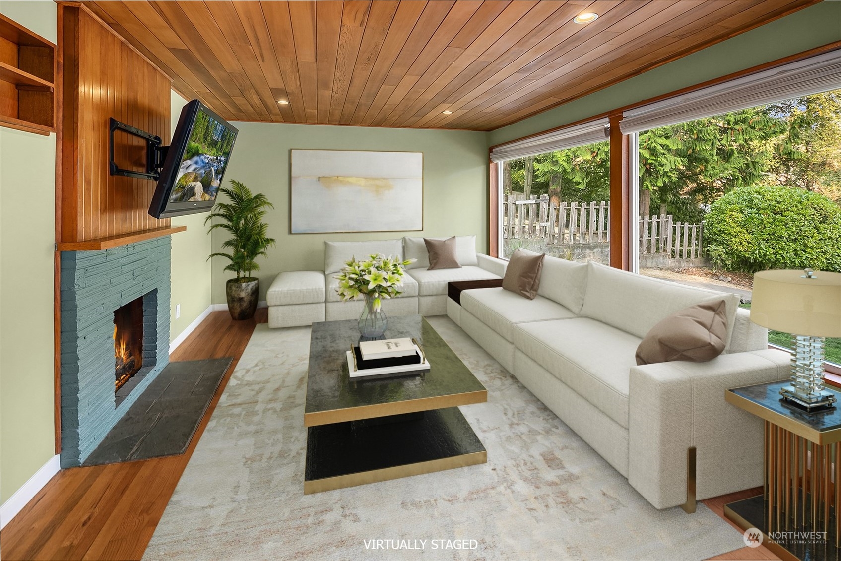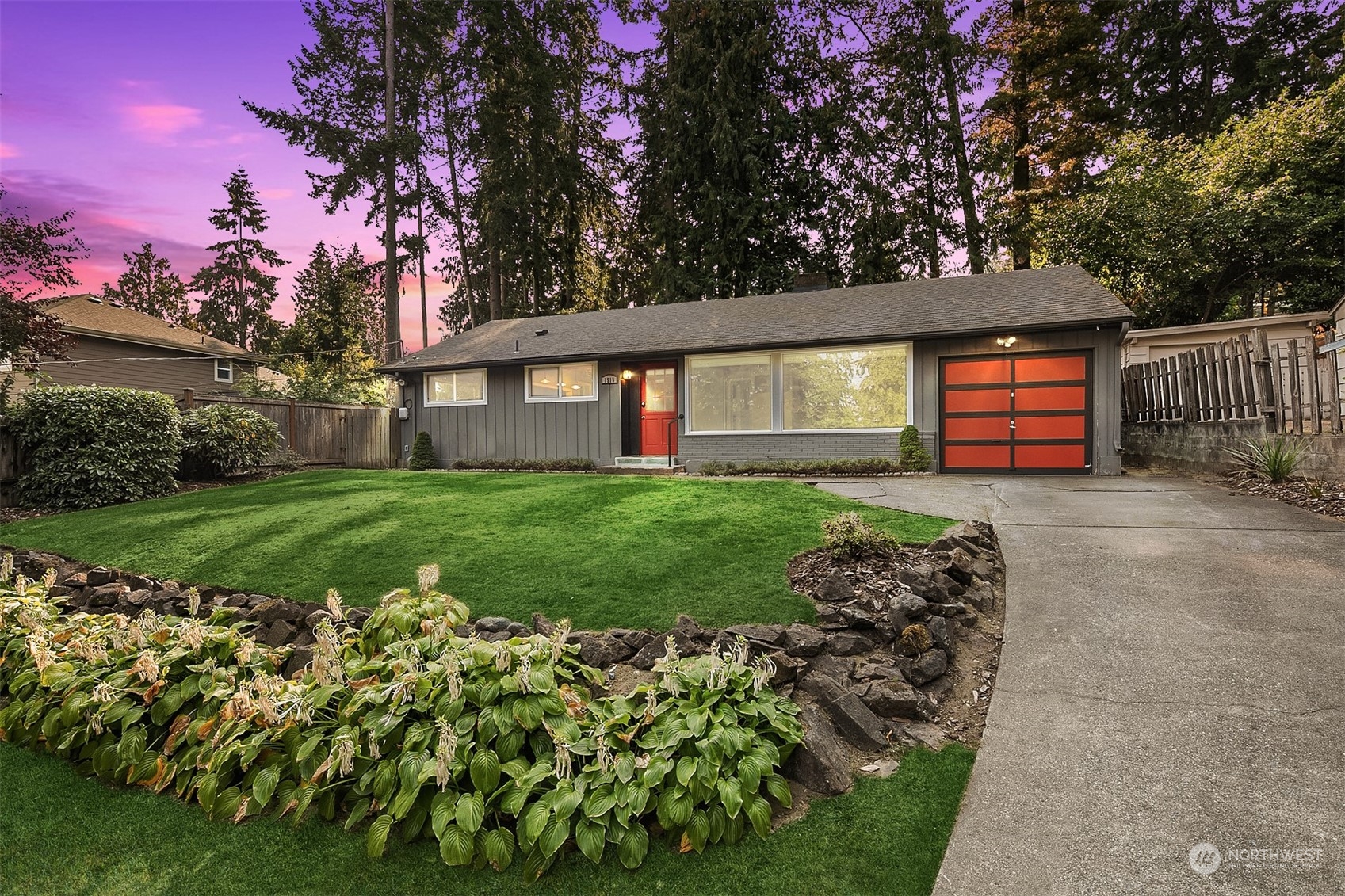 $10,000 closing cost credit! Charming Shoreline Rambler just a stone's throw to amenities, freeways, Lake Forest Park and schools. The entry leads you to an inviting family room w/wood burning fireplace, real hardwood floors, & tongue & groove ceiling creating mid-century styling. Spacious dining room adjoins the updated kitchen, perfect for entertaining. Kitchen features quartz countertops, tile backsplash, stainless steel appliances & tile floors. Bathroom w/updated vanity, tile backsplash & tile floors. The home features 3 bedrooms & your choice an office/den/studio or 4th bed, & an attached garage. Fenced yard w/gardening shed w/lots of room for creativity. Located on quiet street, home sits up for privacy w/plenty of parking.