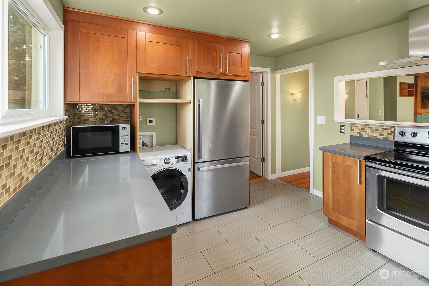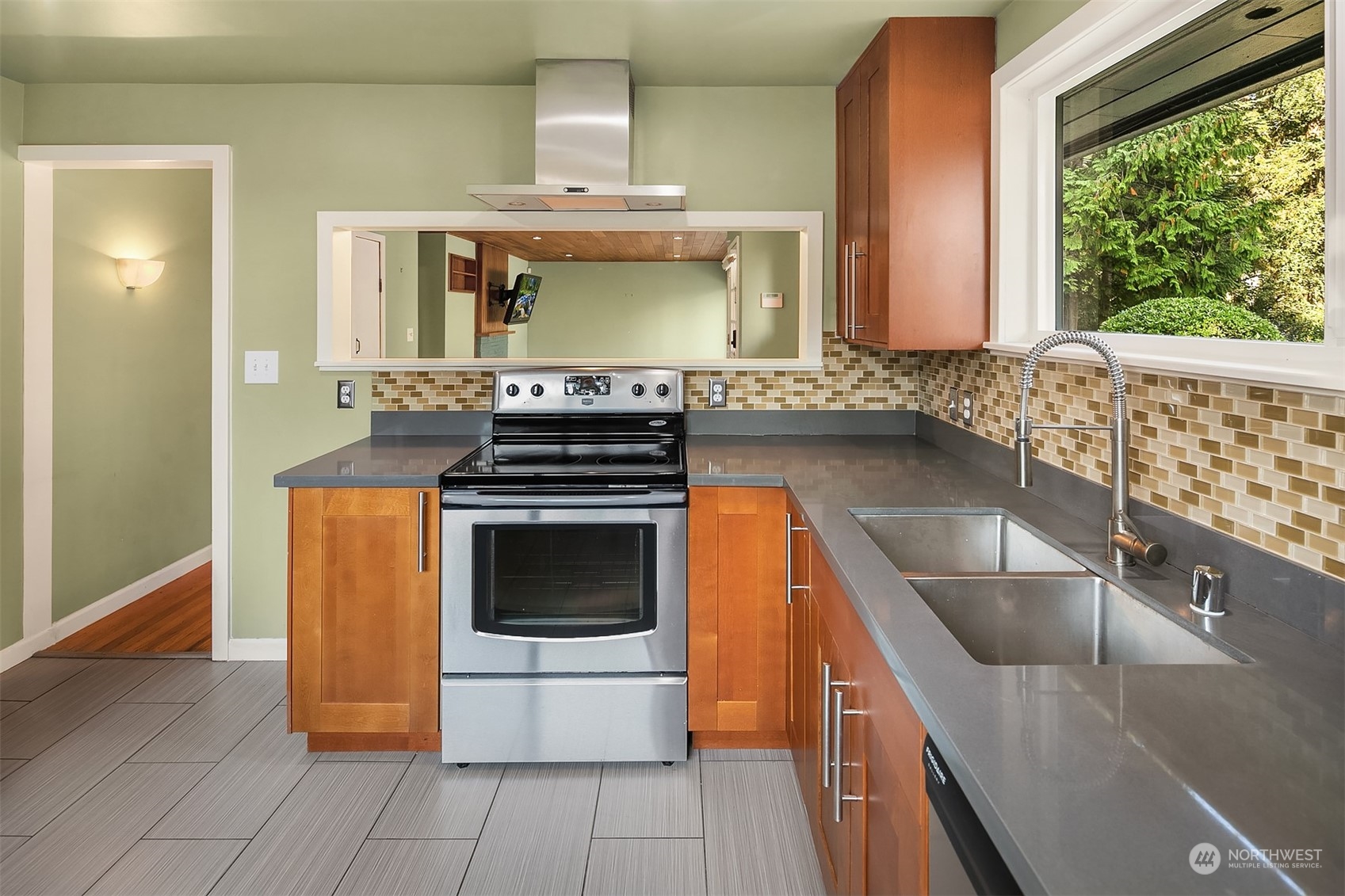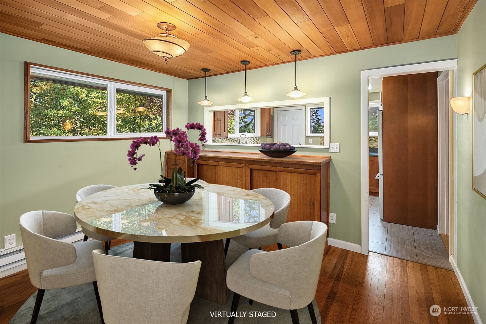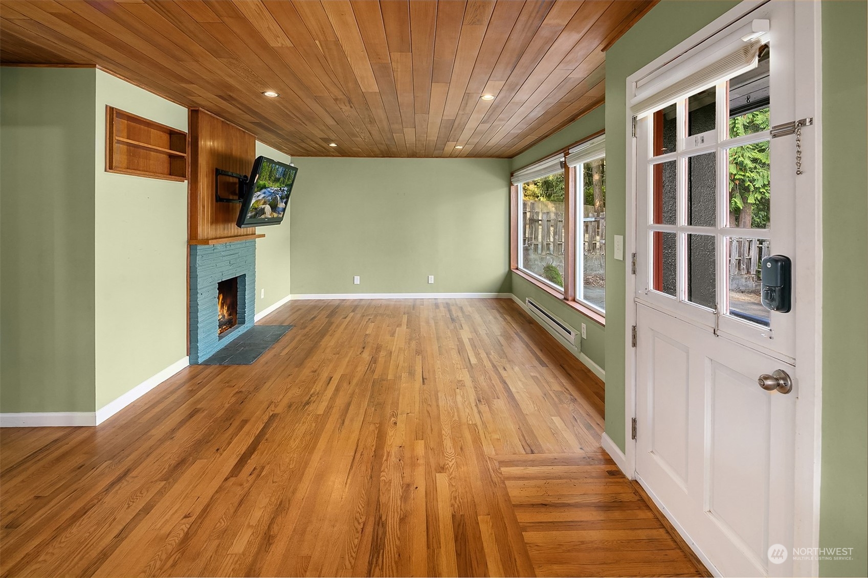 $10,000 closing cost credit! Charming Shoreline Rambler just a stone's throw to amenities, freeways, Lake Forest Park and schools. The entry leads you to an inviting family room w/wood burning fireplace, real hardwood floors, & tongue & groove ceiling creating mid-century styling. Spacious dining room adjoins the updated kitchen, perfect for entertaining. Kitchen features quartz countertops, tile backsplash, stainless steel appliances & tile floors. Bathroom w/updated vanity, tile backsplash & tile floors. The home features 3 bedrooms & your choice an office/den/studio or 4th bed, & an attached garage. Fenced yard w/gardening shed w/lots of room for creativity. Located on quiet street, home sits up for privacy w/plenty of parking.