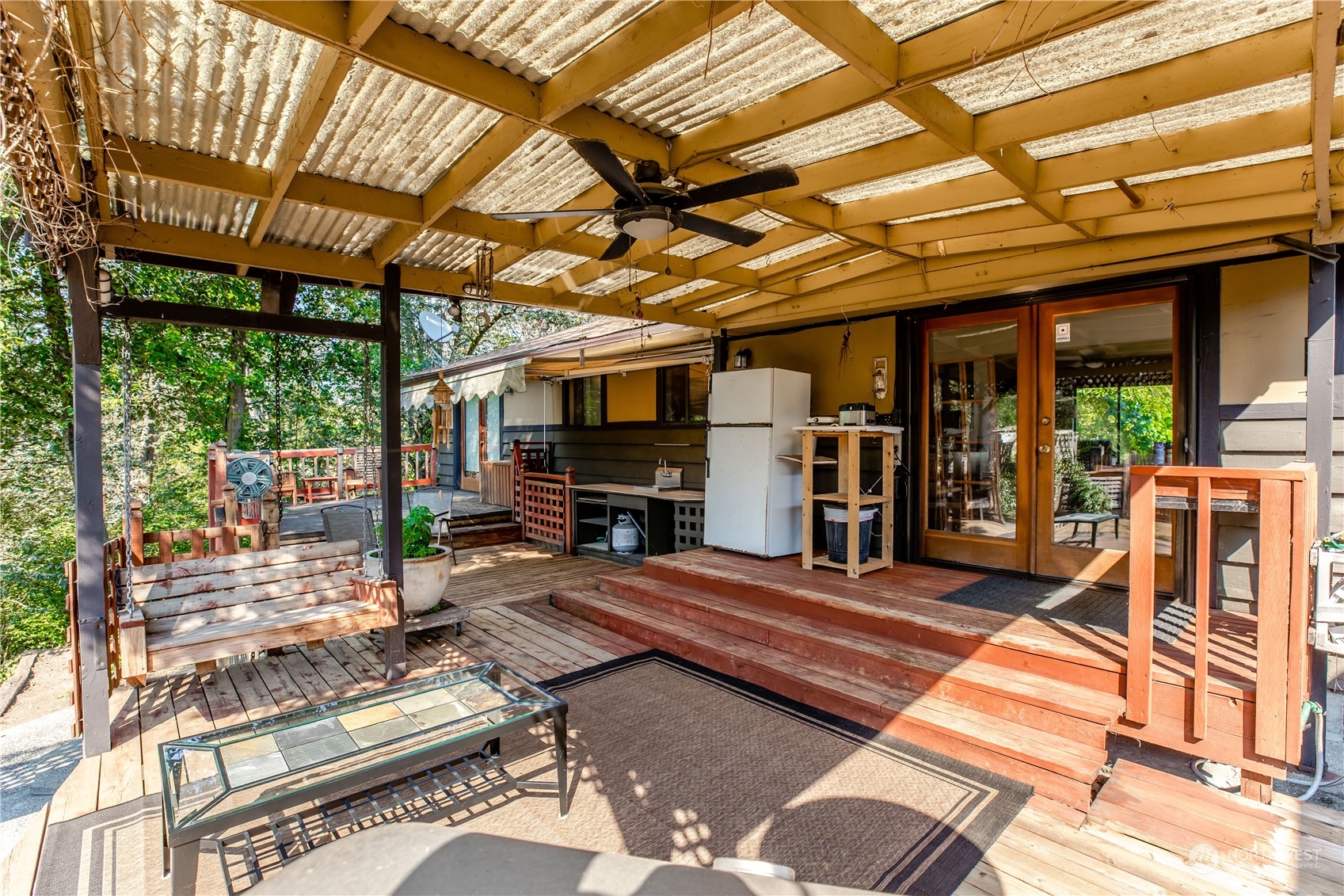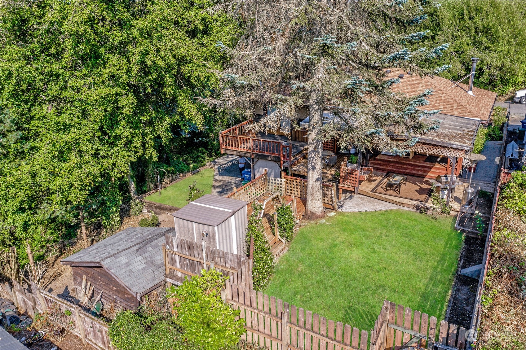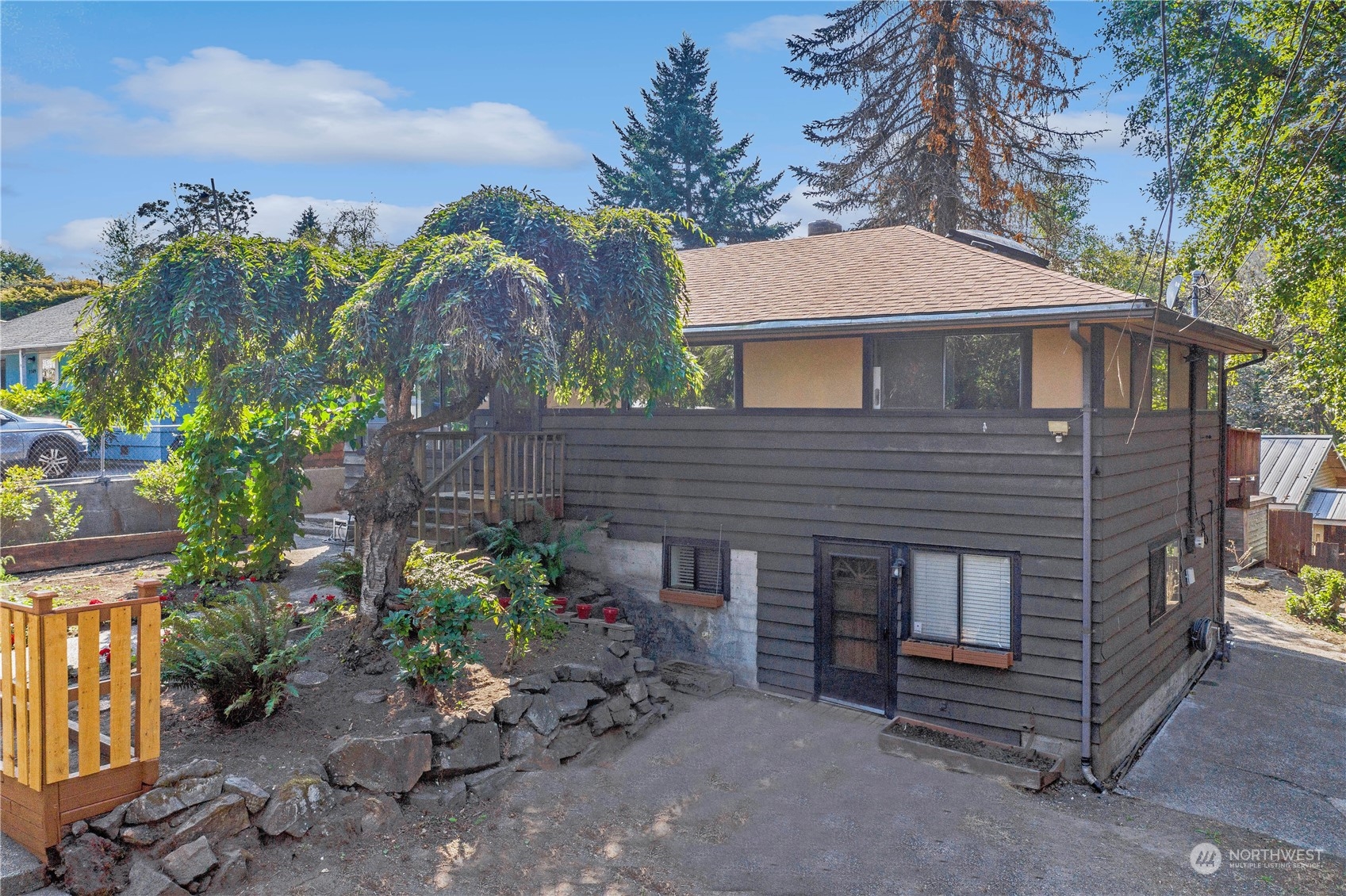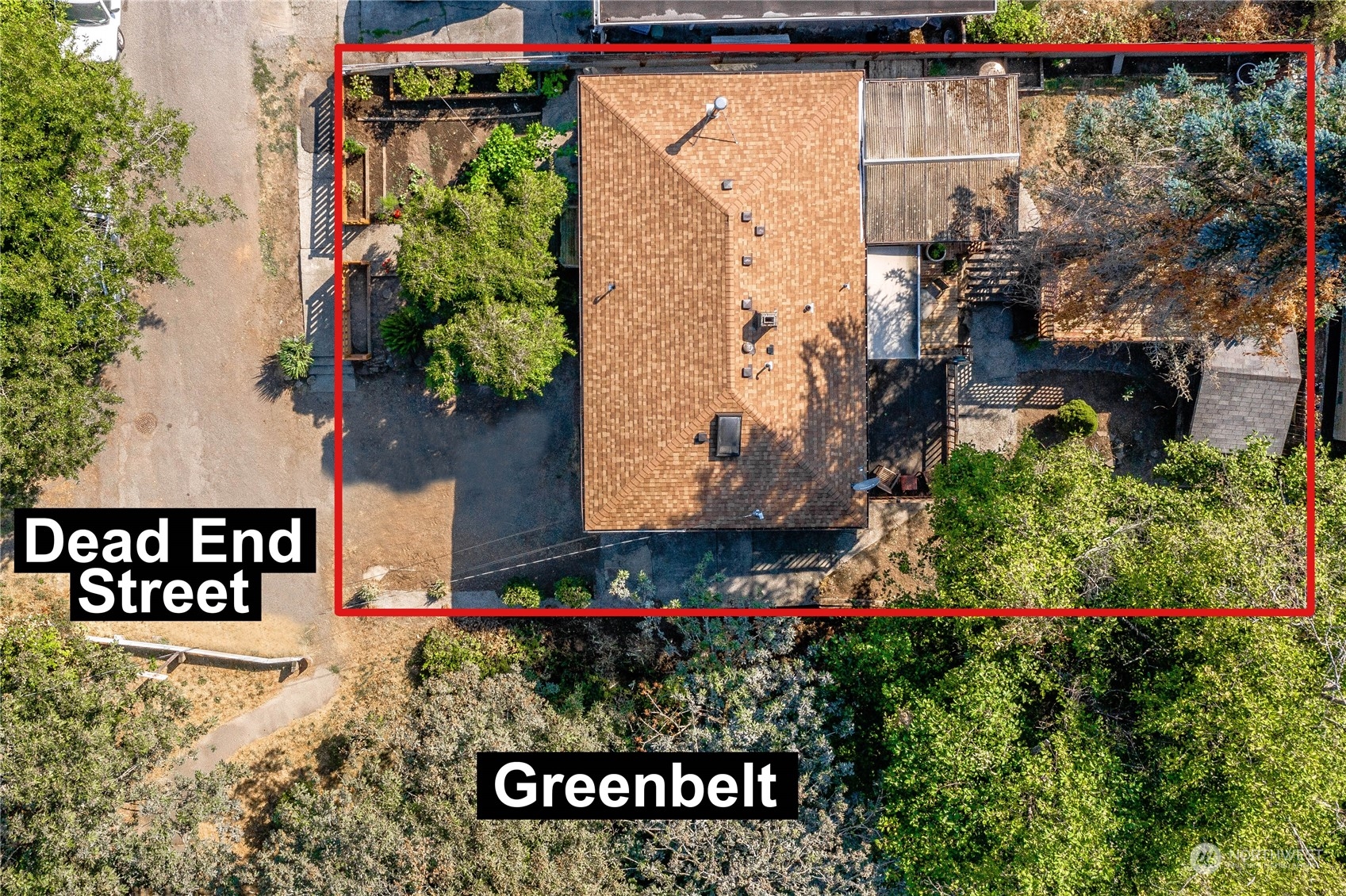 This unique home sits at end of a quiet dead end street in West Seattle. It is nestled up next to a private green belt providing privacy and a naturistic feel. Inside the home features a second living space including kitchen and bathroom as well as private entrance and its own access to the lower level backyard! It is perfect for a mother in law or extra rental income. The home features lots of parking space both in driveway and off street, and the backyard has two levels with two decks and is the ideal home to entertain for summer gatherings. Brand new roof installed. West Seattle Bridge set to open by end of September.