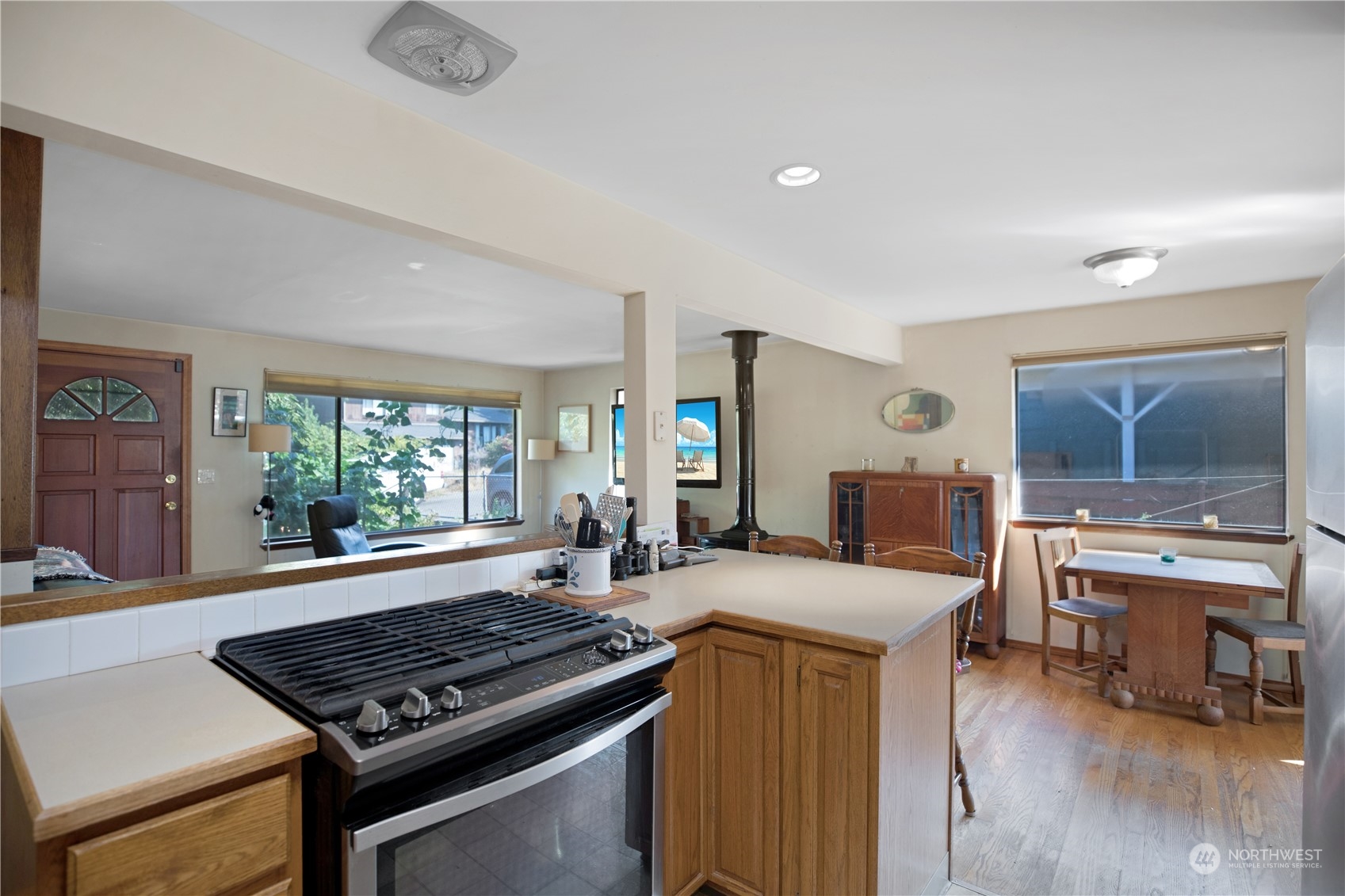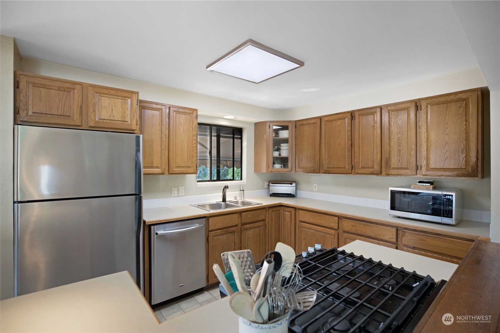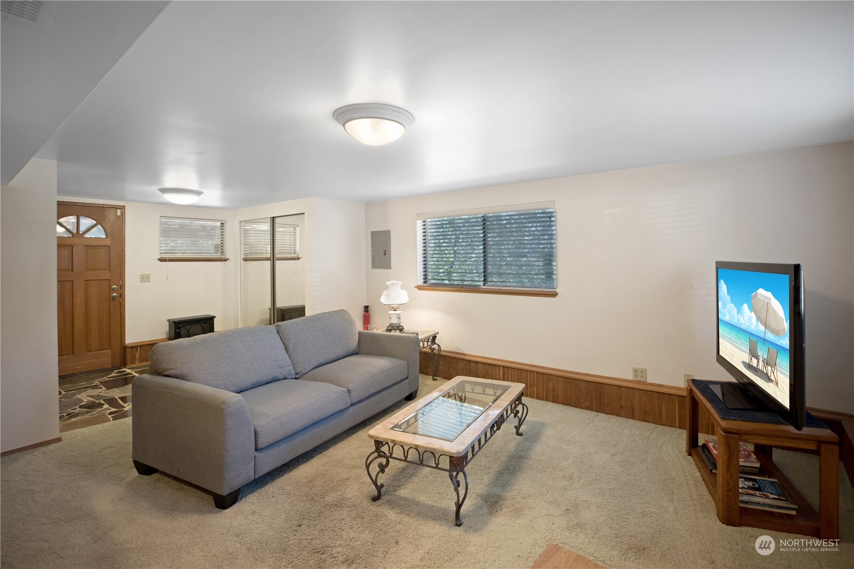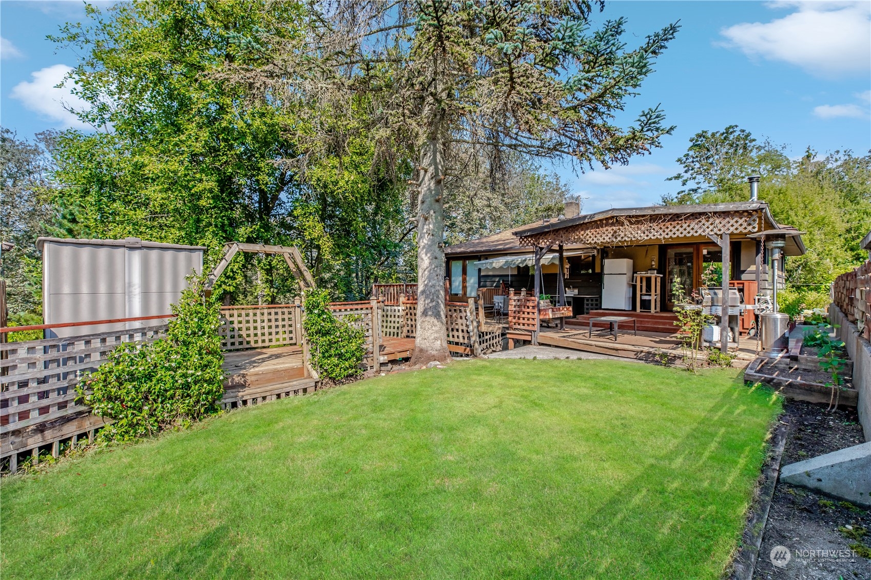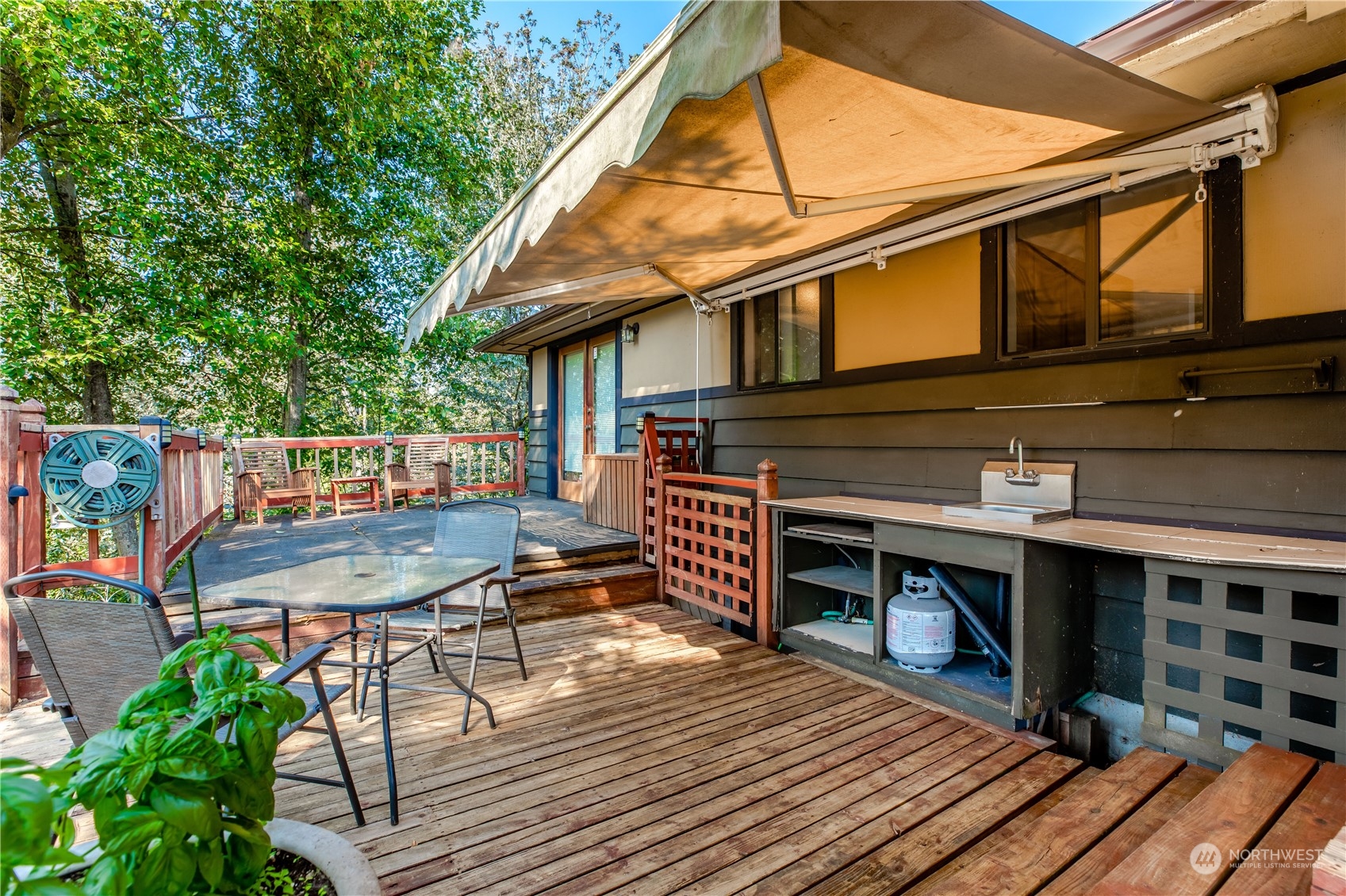 This unique home sits at end of a quiet dead end street in West Seattle. It is nestled up next to a private green belt providing privacy and a naturistic feel. Inside the home features a second living space including kitchen and bathroom as well as private entrance and its own access to the lower level backyard! It is perfect for a mother in law or extra rental income. The home features lots of parking space both in driveway and off street, and the backyard has two levels with two decks and is the ideal home to entertain for summer gatherings. Brand new roof installed. West Seattle Bridge set to open by end of September.