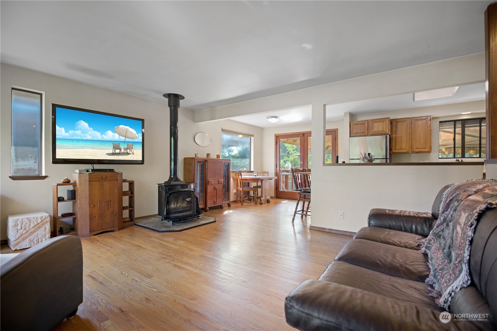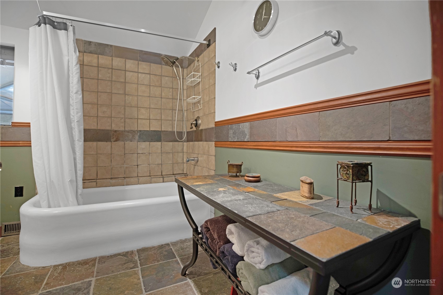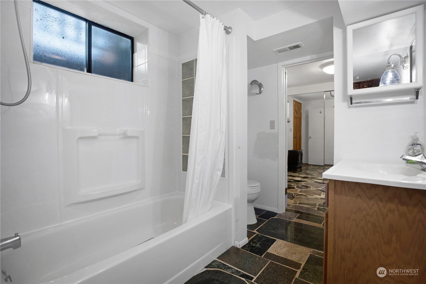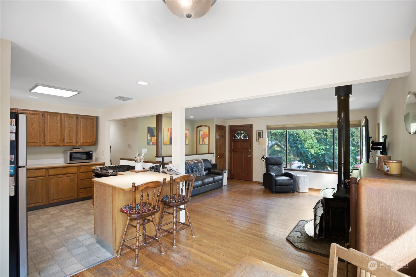 This unique home sits at end of a quiet dead end street in West Seattle. It is nestled up next to a private green belt providing privacy and a naturistic feel. Inside the home features a second living space including kitchen and bathroom as well as private entrance and its own access to the lower level backyard! It is perfect for a mother in law or extra rental income. The home features lots of parking space both in driveway and off street, and the backyard has two levels with two decks and is the ideal home to entertain for summer gatherings. Brand new roof installed. West Seattle Bridge set to open by end of September.