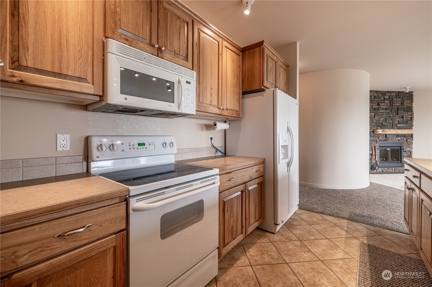 One owner, Original developers unit. Beautiful two bed, two bath single level home. Cherry Ln Condo. 55+ development. City, river and mountain views. Private balcony. Features bright clean atmosphere. Knotty Alder cabinets throughout. Ceramic tile and wall-to-wall carpeting, window coverings, electric fireplace and spacious deck. Heated EXTRA LARGE 4 car garage has a ceramic tile floor and is double wide and deep for extra storage or multiple vehicles. Additional 6x12 storage room is located just outside the unit. Elevator access or stairs. Secure access. Shopping close by and walking path. Two pets allowed. Easy to see. RV Parking available for a fee. Home pre-inspection available on request.