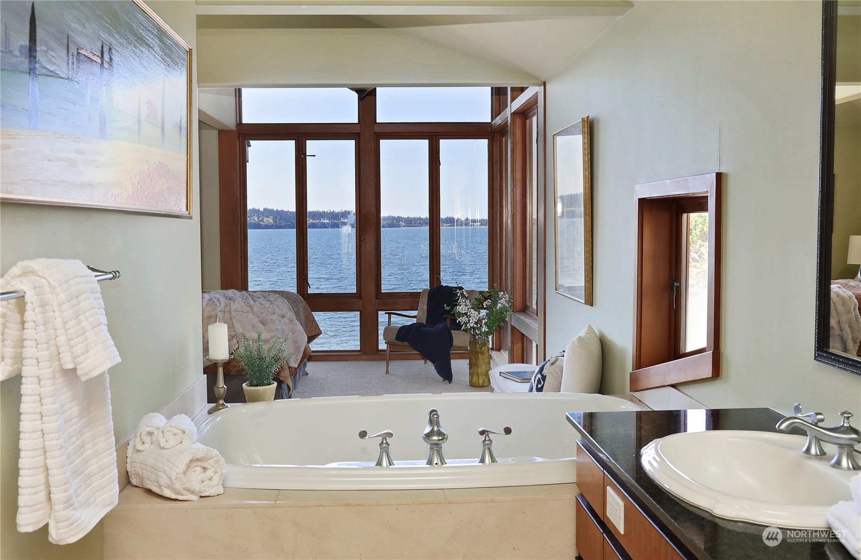 Don't miss this wonderfully unique opportunity for the ultimate island getaway. Located on Baby Beach on the west side of Whidbey Island, this custom-designed light-filled home offers the opportunity for peace and solitude in today's busy world. Low bank access looking across Holmes Harbour toward Greenbank allows you to moor a boat, go crabbing, clam digging and take long beach walks in the sunset. At low tide, you can walk across to Baby Island. Awesome kitchen with exposed edge granite and stainless high-end appliances. Top floor primary suite, main floor ensuite plus 1/2 bath. Custom touches throughout and wonderful entertaining spaces. Featured in 1998 Seattle Times Fall Home Design issue and 2000 Pacific Northwest Plant Life!