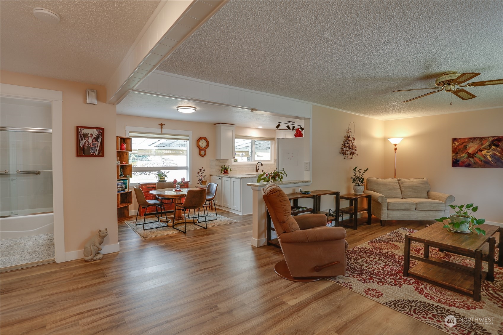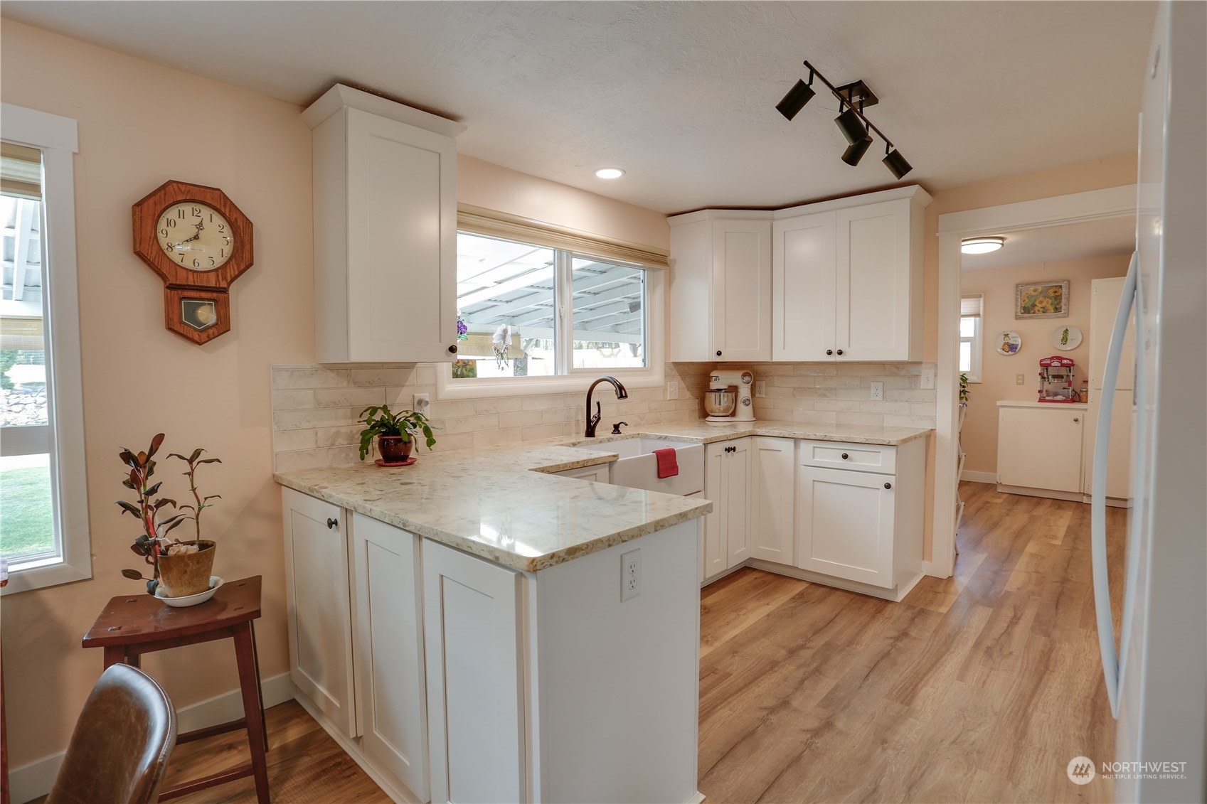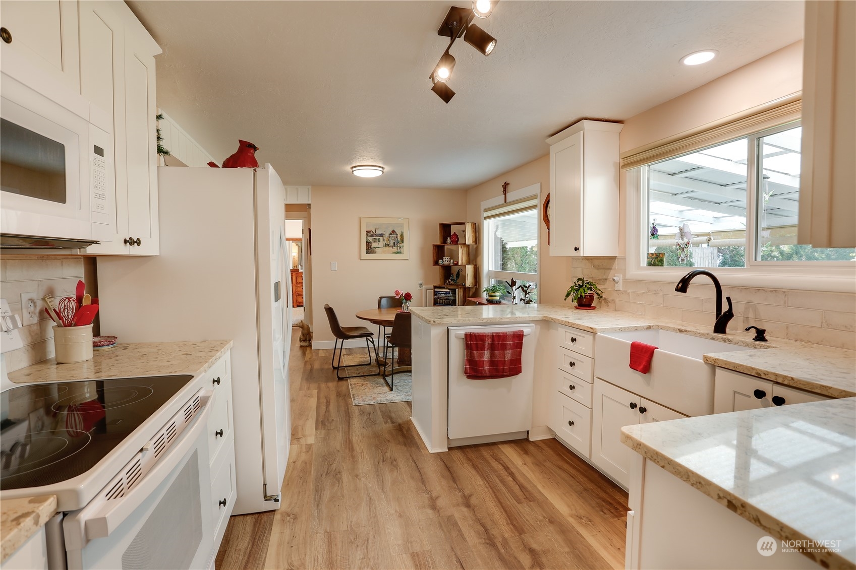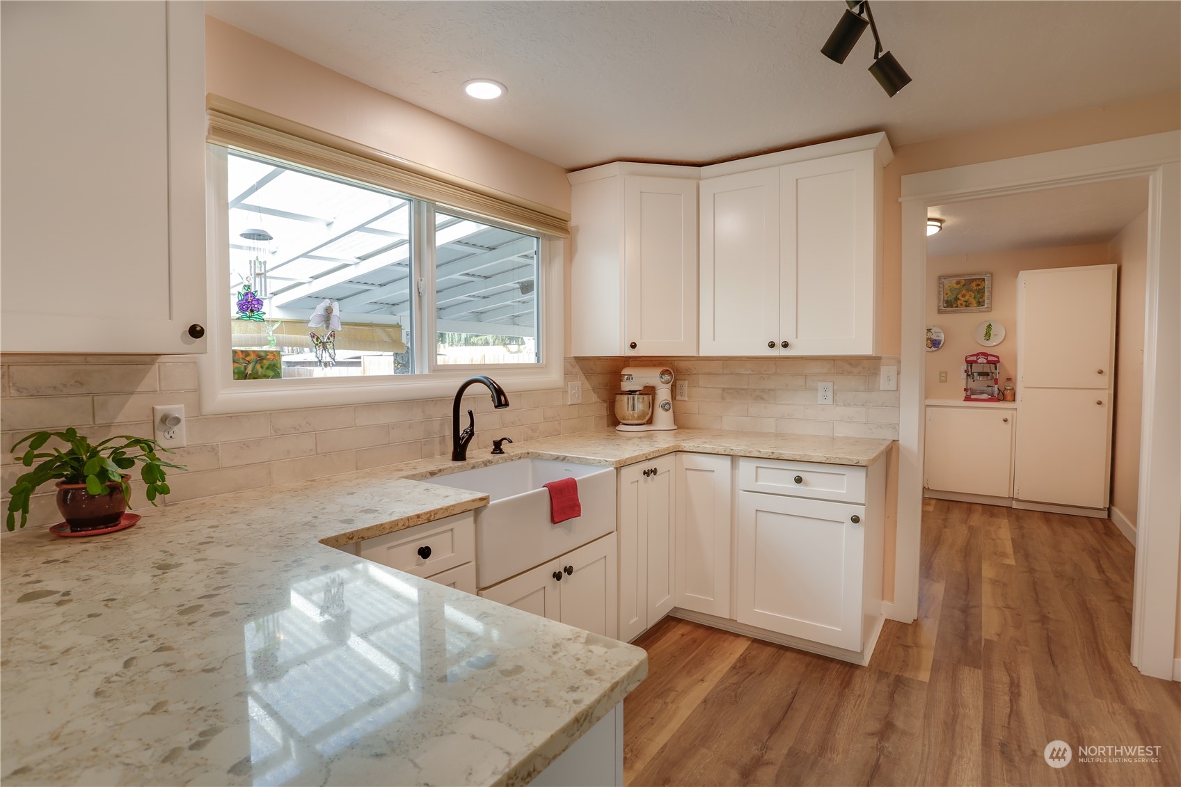 Cozy one story home on a large private lot has undergone many renovations! This home has been revamped w/newer int. & ext. paint, newer LVP plank flooring, trim, and a whole new kitchen remodel with solid countertops & new appliances! The kitchen's farmhouse sink overlooks the back yard & large covered patio. The living rm is good sized & has a wood burning stove for the cozy winter months. The mud room has space for an additional bathroom or add more cupboards for a large pantry area, bedrooms are generous sized. New tile tub surround w/glass door in main the bath. The one car garage will fit a standard sized car. Central heat & air & the roof is approx 4 years old. Seller will pay up to $5,000 towards a rate buy down w/full price offer.