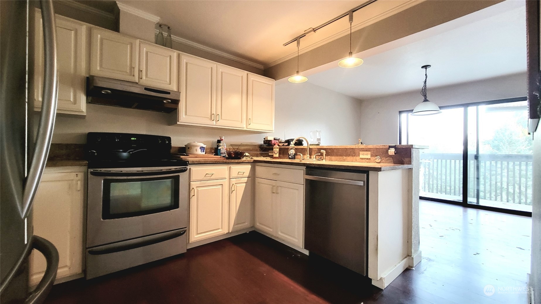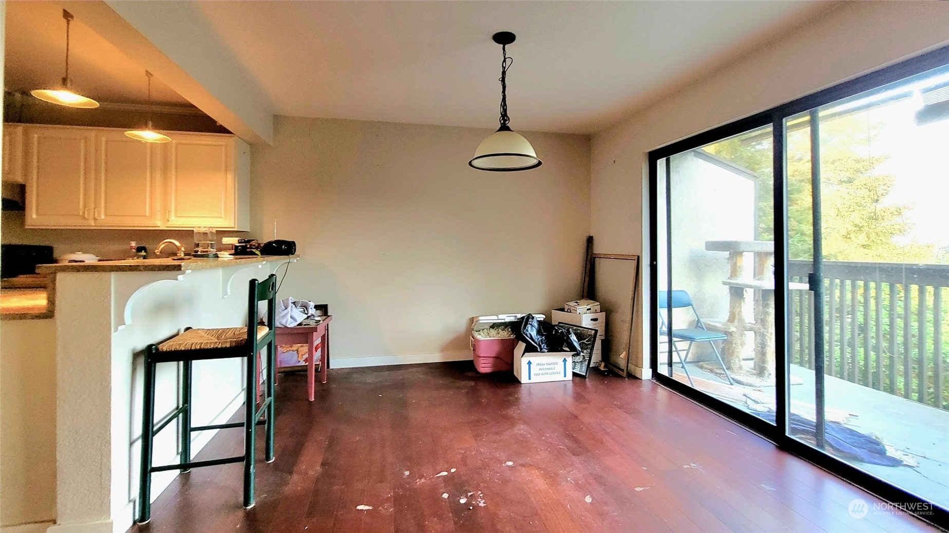 Welcome to Park Place - Enjoy Living in this Private Condo with a large covered deck and covered parking space. This 1-level unit has open floor plan, Hardwood Floors, White Cabinets, a massive living room with large windows and a Cozy Wood-burning fireplace leads out from a sliding door to a large private patio. Assigned 1-car covered parking with lots of guest parking. This is a very quiet community in Shoreline with an amazing opportunity for pride of home ownership. A Bonus Entertainment, Clubhouse w/ Pool table. All located minutes to I-5, the New Light Rail Transit Center, North City, Lake Forest Park & Ballinger Shopping and Restaurants. Small pets allowed. Hurry! Will entertain all offers, may credit rate buy down to buyer.