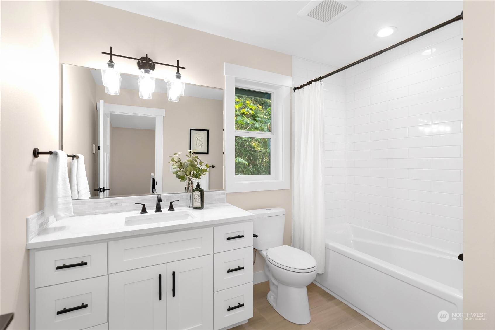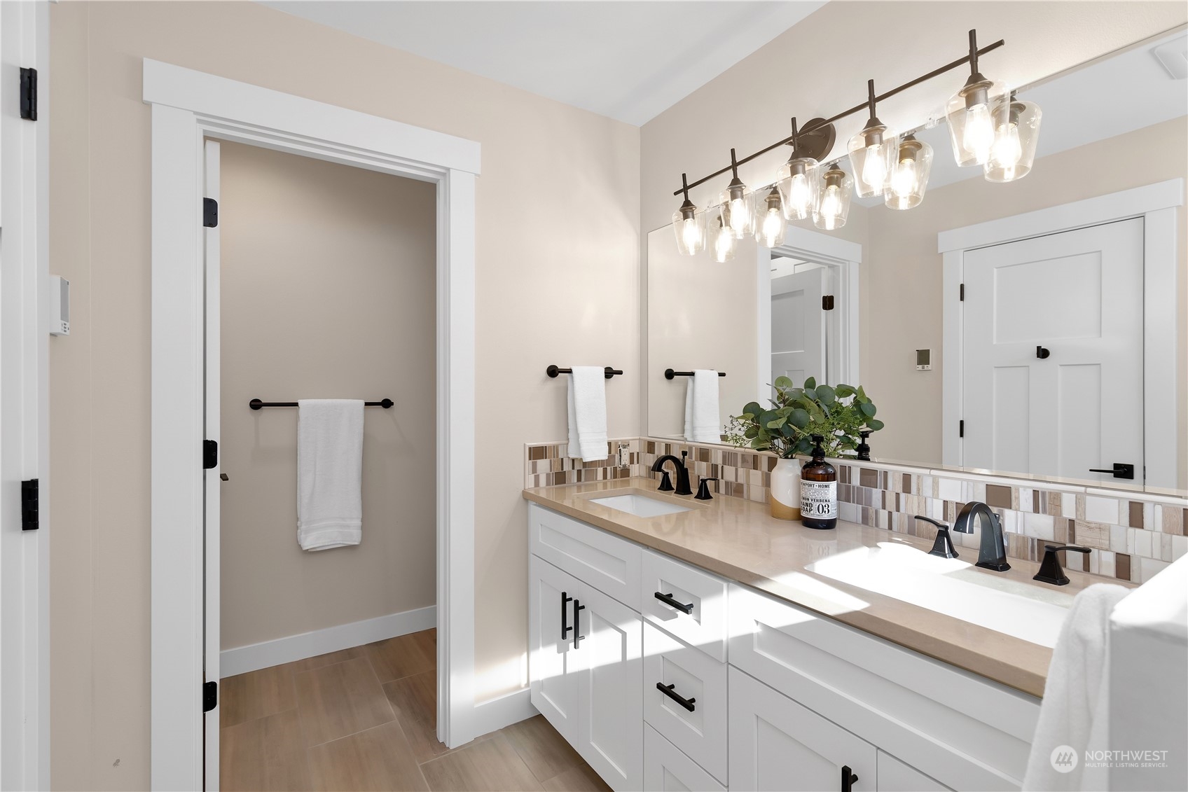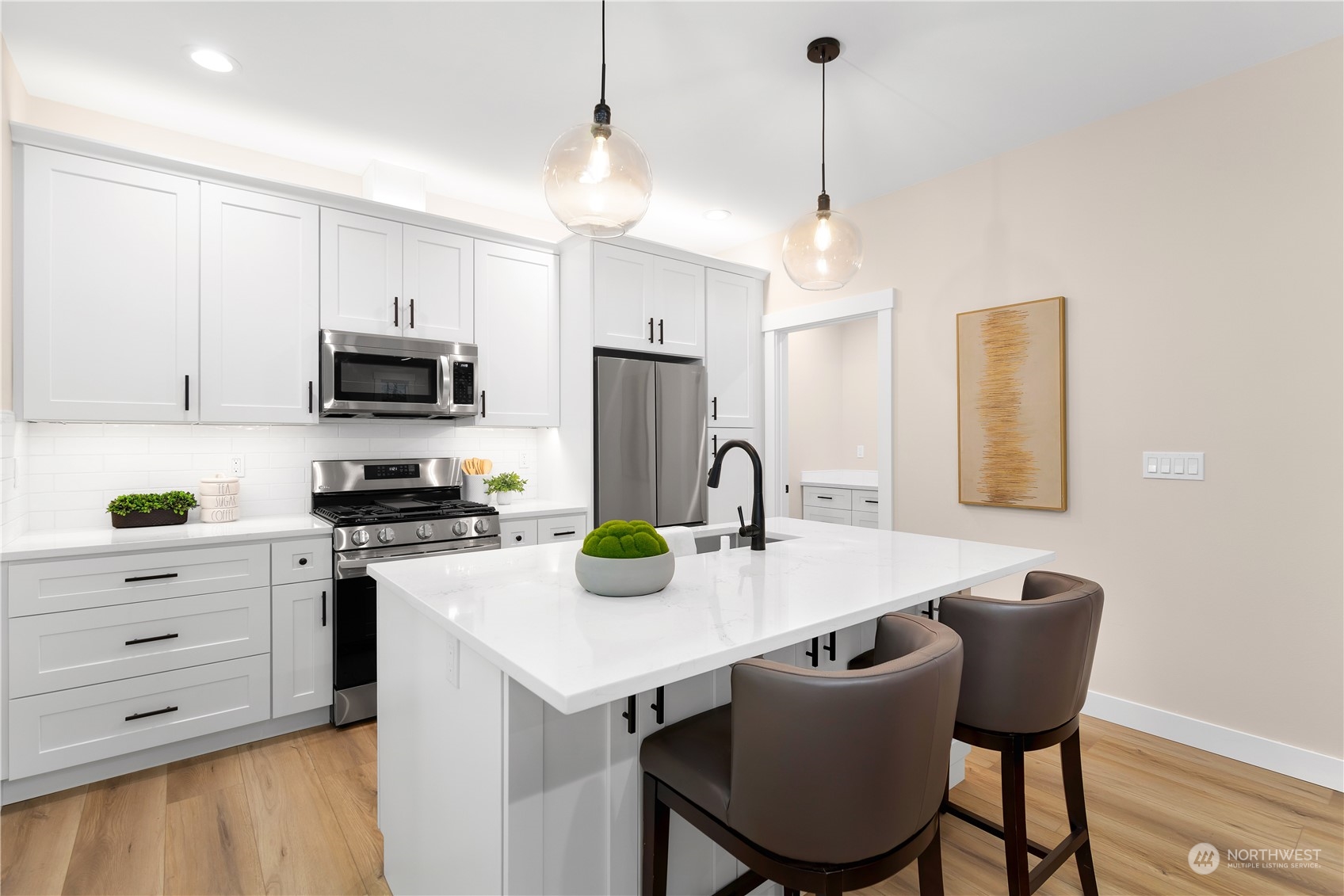 Welcome to your brand NEW home in Sudden Valley! This home offers a luxury experience with high-end finishes, walk-in pantry, air conditioning, and upgraded packages throughout. Beautifully designed and move-in ready. The spacious primary bedroom opens to a large ensuite w/ walk-in tile shower, quartz counters, tile floor & massive walk-in closet! Kitchen has quartz counters, SS appliances, soft close drawers & eat-in island. Upstairs you'll find 2 additional bedrooms with access to their own full bath. Open up your backdoor to a fully gated deck with greenbelt and seasonal creek to the right, serene nature and walking distance to local trails/parks (one of which is the largest park in Sudden Valley, Beaver Ridge)!