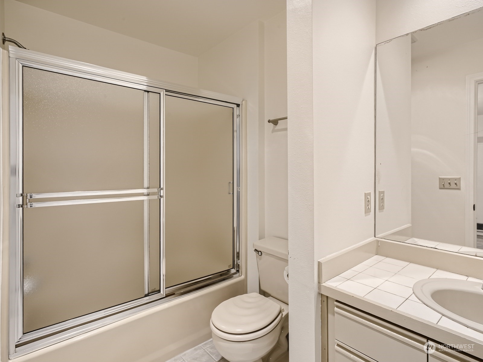 Perfect Two Bedroom Condo in Great Location. Has Two Separate Bathrooms and Two Designated Parking Spots. This ground floor unit provides a large living room w/ a fireplace, modern kitchen w/ corian counters, large bright primary bedroom with private ensuite bathroom and a huge walk-in closet. Updated carpets, paint, and vinyl framed windows. Comes with all appliances. Condo & carpets professionally cleaned, move in ready. Easy access to freeway, park-n-ride, & shopping. Detached garage fits full sized car w/ storage space + wide driveway. HOA dues pay for water/sewer & grounds. Dogs/cats ok. Lovey front porch w/ tranquil view of pond.