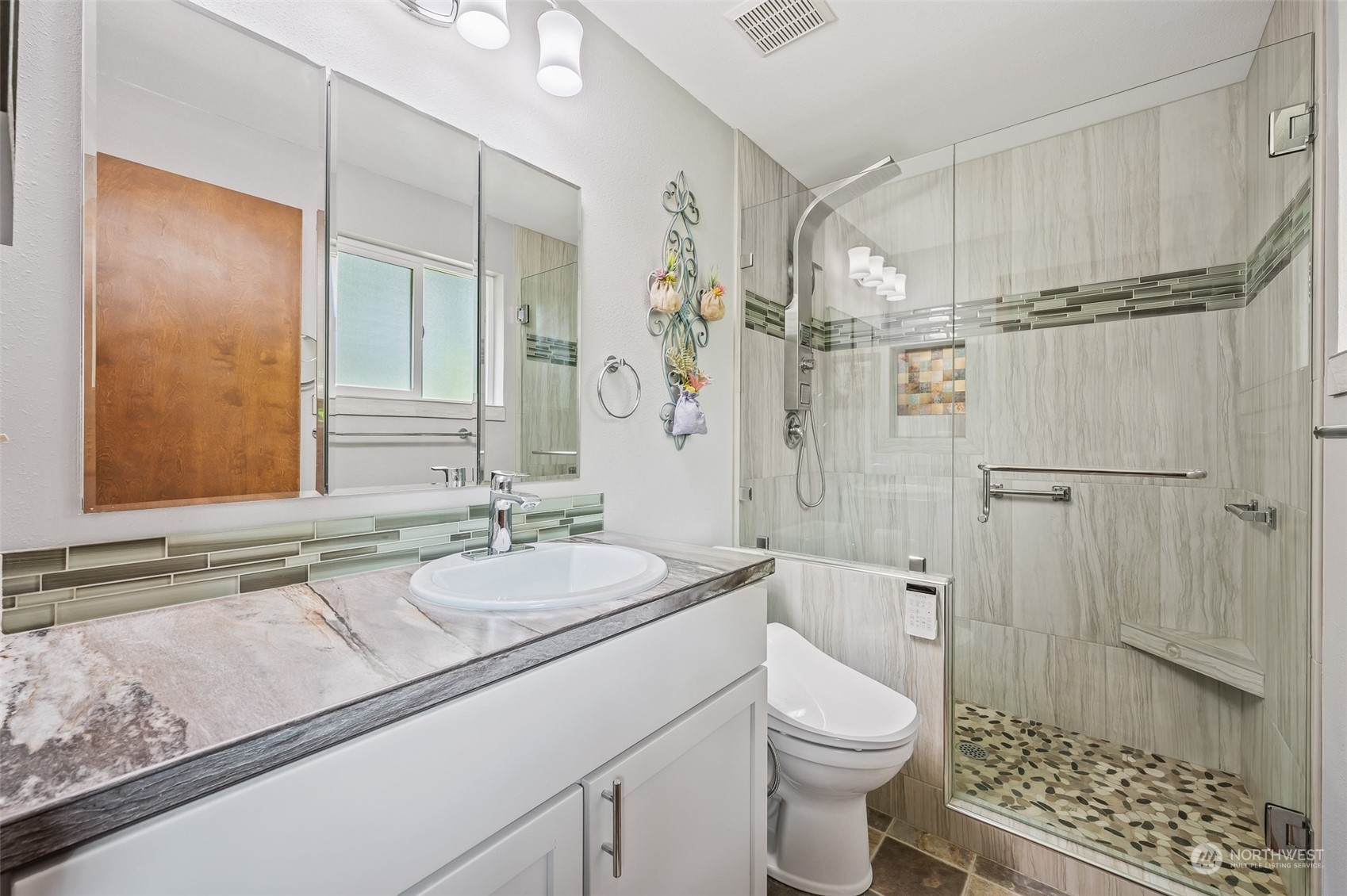Sprawling rambler situated on a double lot in the heart of Wenatchee! Updated throughout with an open floor plan (perfect for entertaining) or spend your time enjoying the park-like setting of the backyard from your expansive deck! Stainless steel appliances, a gas fireplace surrounded by built-ins and laminate hardwood flooring are just a couple of perks of this home! It also boasts 3 large bedrooms, 1 full bath with brand new jetted tub (additional in-line heater on jet pack, keeps water warm longer) and 1 updated bath with gorgeous walk-in shower. The over-sized garage gives you plenty of space for storage and two cars, and the new freezer stays! You even have access to the back parcel down a privately maintained alley!