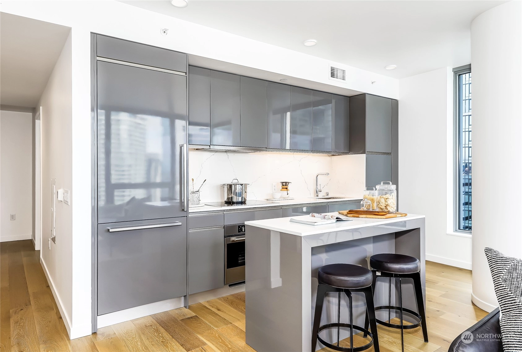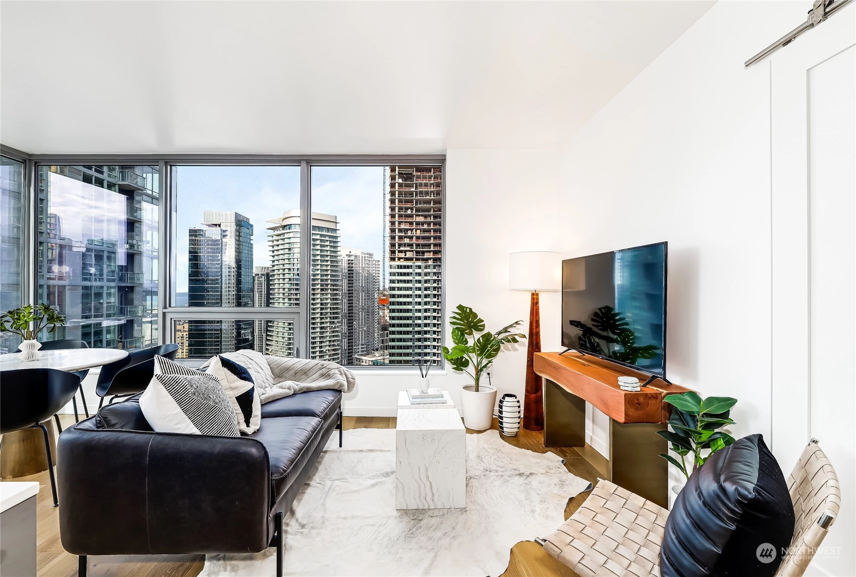Brand new, never-been-lived-in. This spacious NW facing 2 bedroom 2 bath home features an open concept floor-plan with great Lake Union and downtown Seattle views. Sleek interiors and thoughtful finishes provide a refreshing welcome home, while a custom-built home automation system streamlines your day-to-day. This home includes one assigned parking stall & storage locker. Nexus residents enjoy three full floors of state-of-the-art amenities–including private dining facilities, co-working spaces, the rooftop Skyclub, and lavish outdoor entertaining areas.