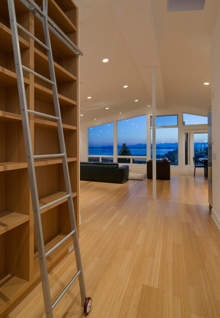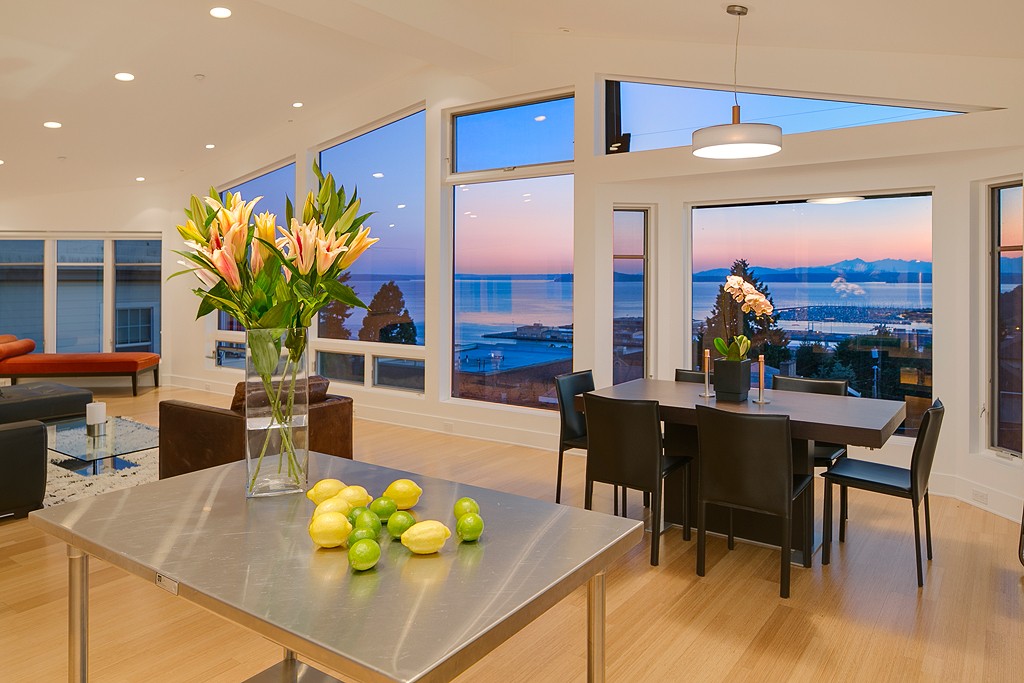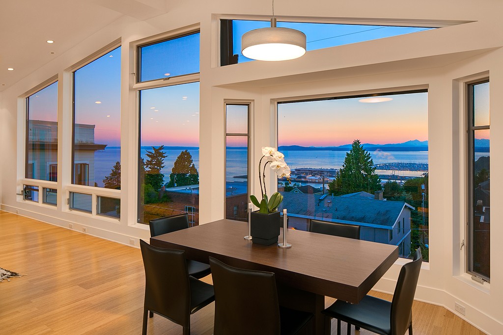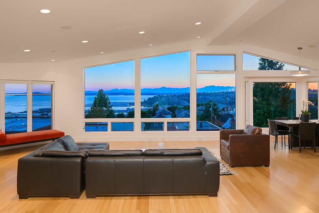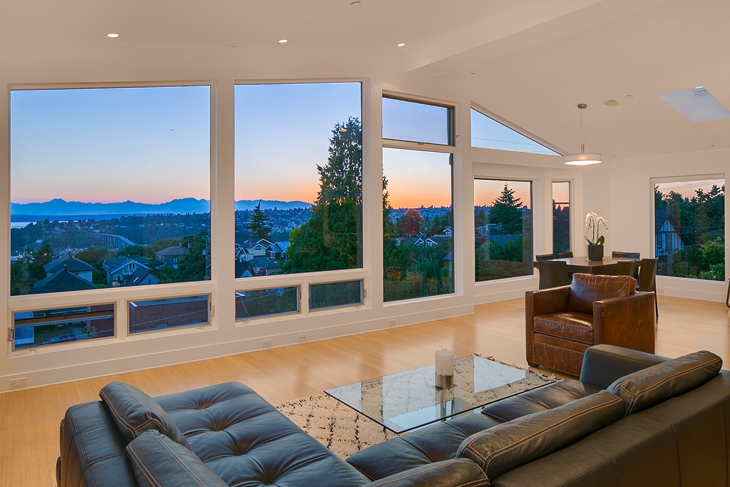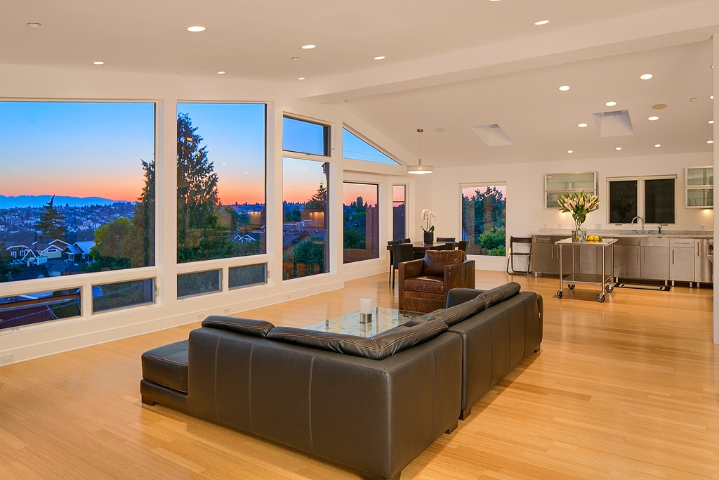 Modern life meets modern architecture. Sleek contemporary style for the urban minimalist redefines condo living on Queen Anne. A unique gallery like space with unobstructed views of Olympic Mountains and Puget Sound. Floor to ceiling windows, art lighting, and bamboo hardwoods throughout. Boutique building on a quiet residential street gives a New York loft feel with Seattle style living. Large den easily could be a third bedroom.