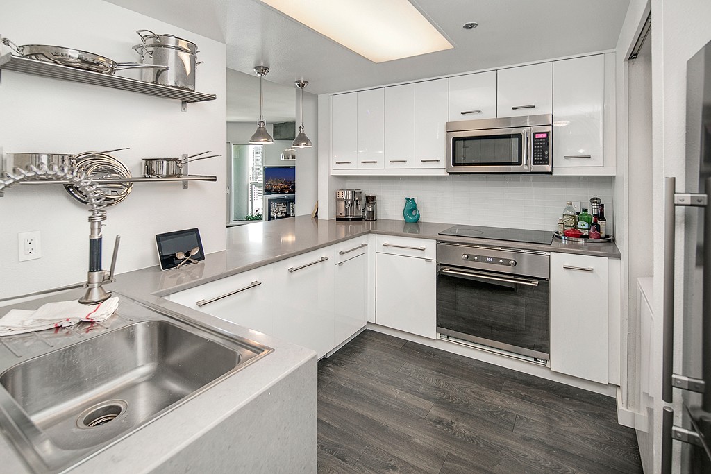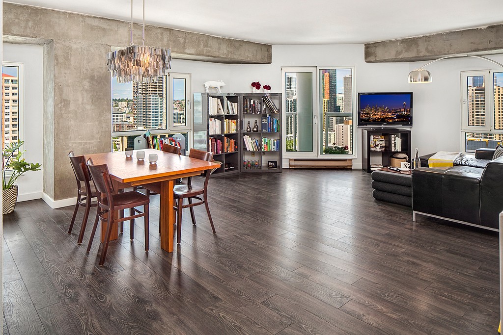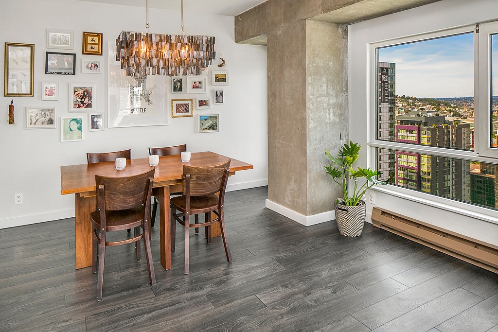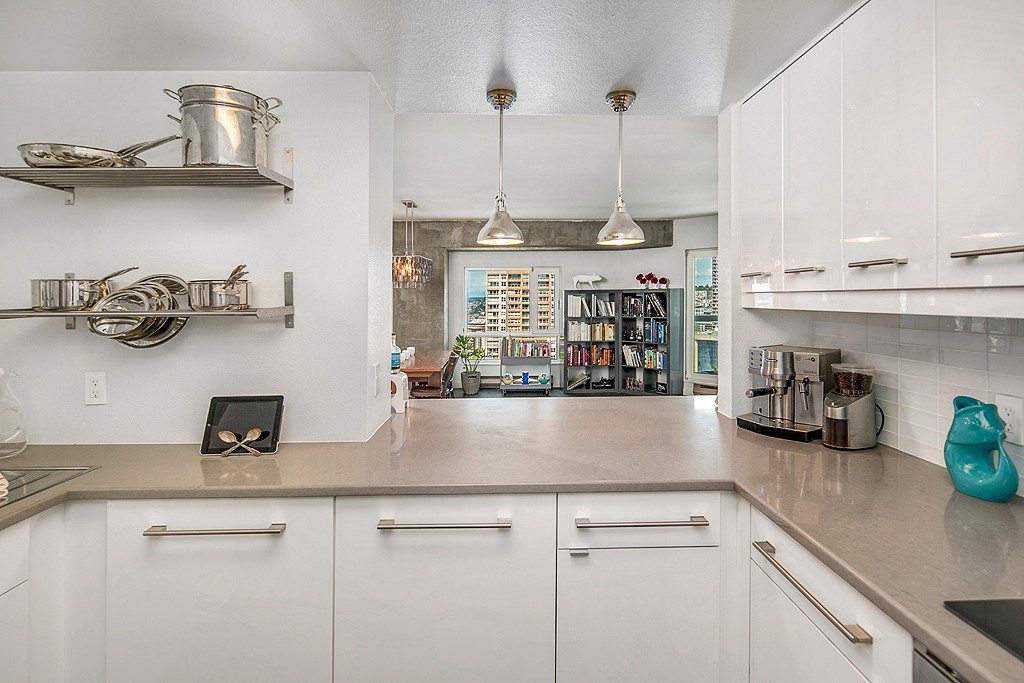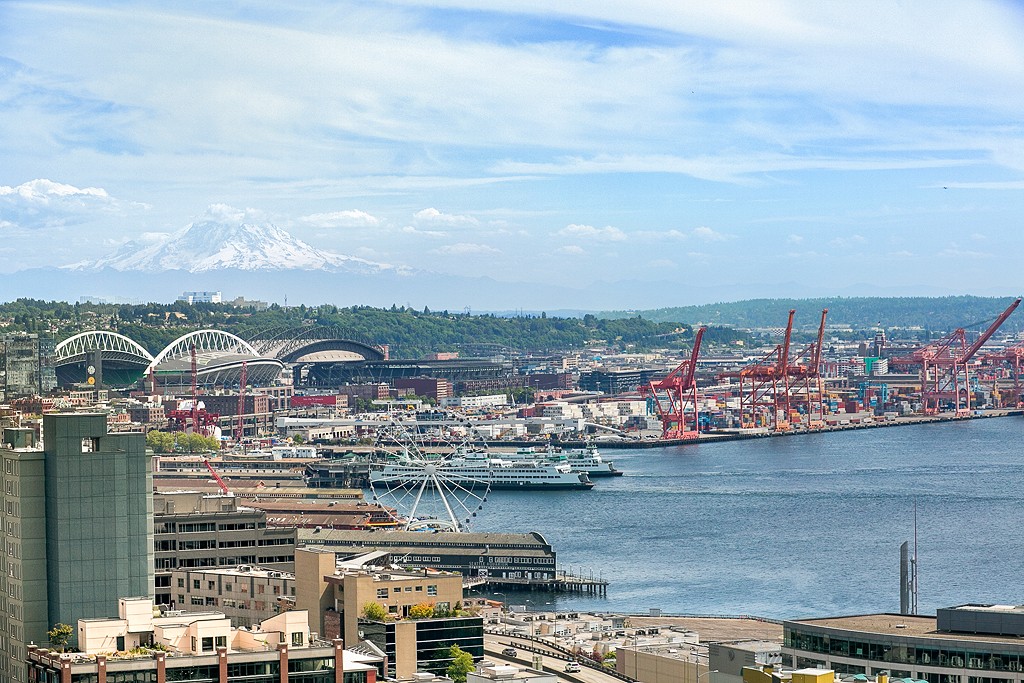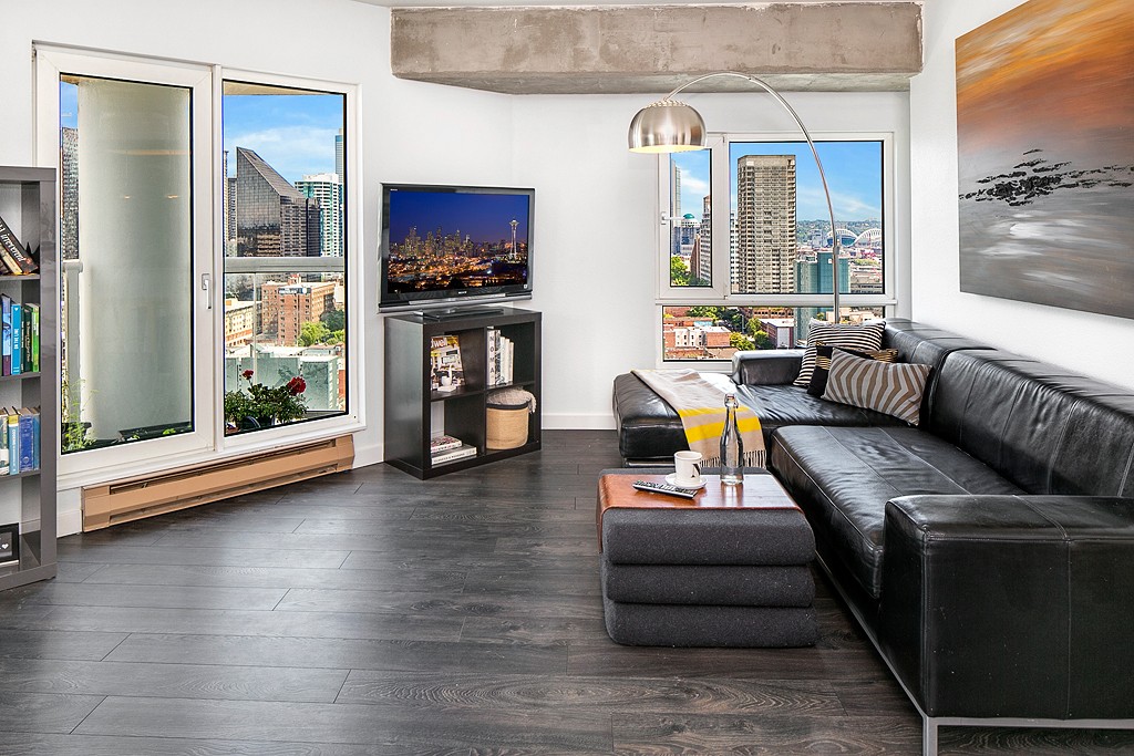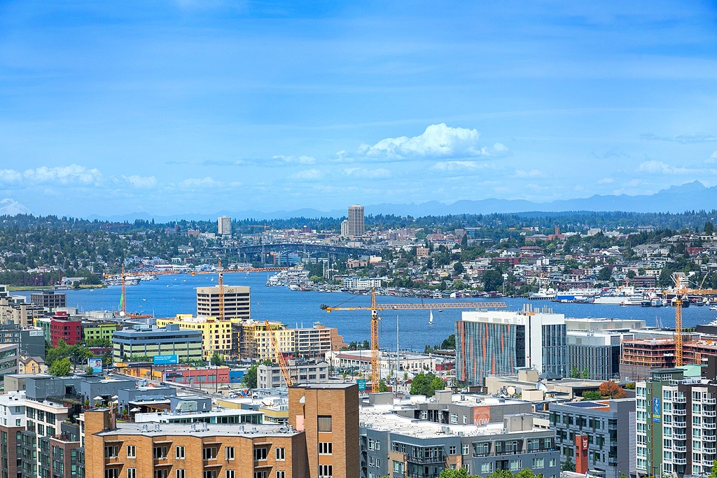 Elliott Bay, Mountain & City Views from this uniquely situated & private Penthouse condo at desirable residential Arbor Place! Only 2 PH share this quiet floor, flanked by Expansive View Terrace. Sophisticated palette of modern whites, Dove grey engineered flooring, Architectural exposed concrete columns. Newly installed Chefs kitchen & bath. Stylish rustic door detail artfully shields laundry. Lg Master, frosted glass front closet systems. Low HOA of $ 681.00 Walk to location, 24-7 Concierge