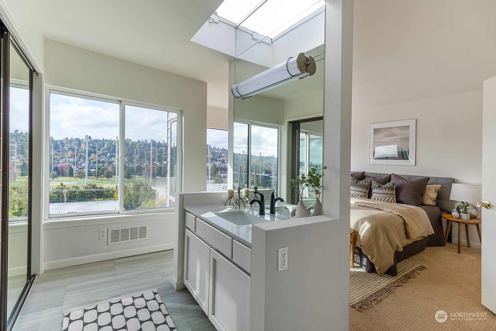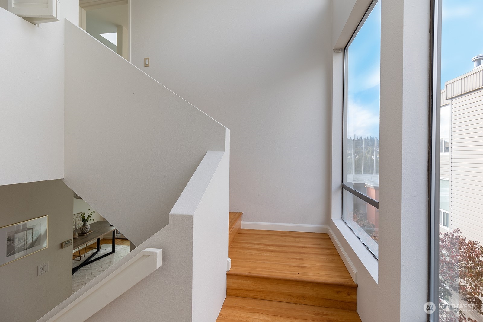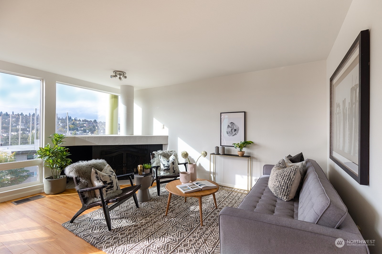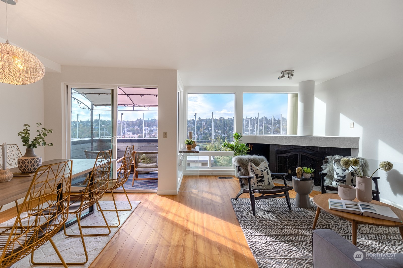 Step into the gallery-like two-level entry & be impressed at every turn! With 1,361 sf, this spacious home lives like a townhome with a welcoming living space, a sprawling primary suite + TWO more large bedrooms. Soak in the unobstructed VIEWS & natural light from this charming 3-bedroom Queen Anne top floor condo. Things to love: VIEW, gallery foyer, atrium stairwell, parking & lots of storage! Newer building exterior & roof. In the unit: new LED lights, newer kitchen, updated baths, fresh paint & more! RARE 3 designated parking spots (two covered & one tandem). Awesome location, just blocks to Upper Queen Anne and minutes to Magnolia, Ballard, Fremont, SLU & everything Seattle. Views are SPECTACULAR, see it in person & fall in love!