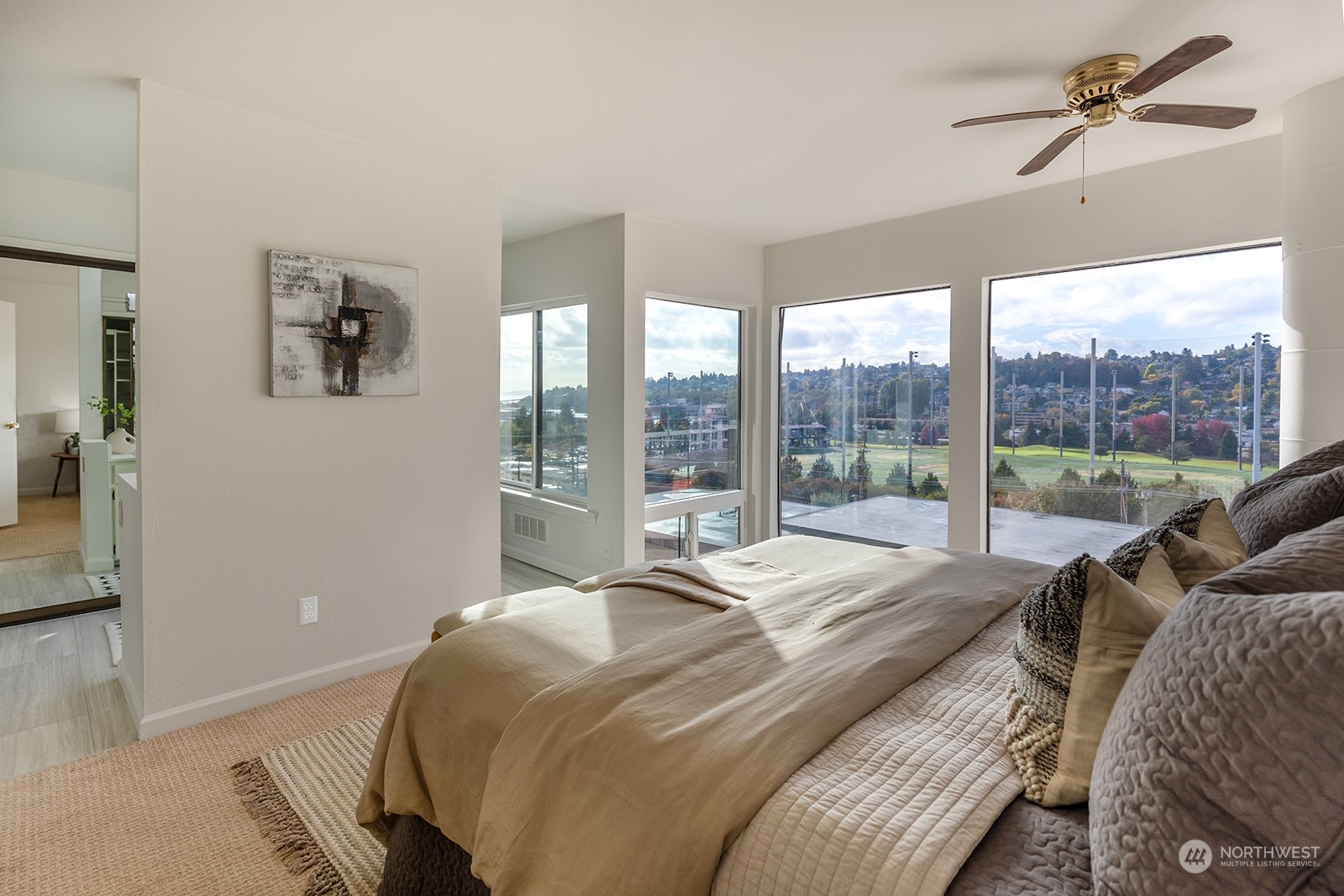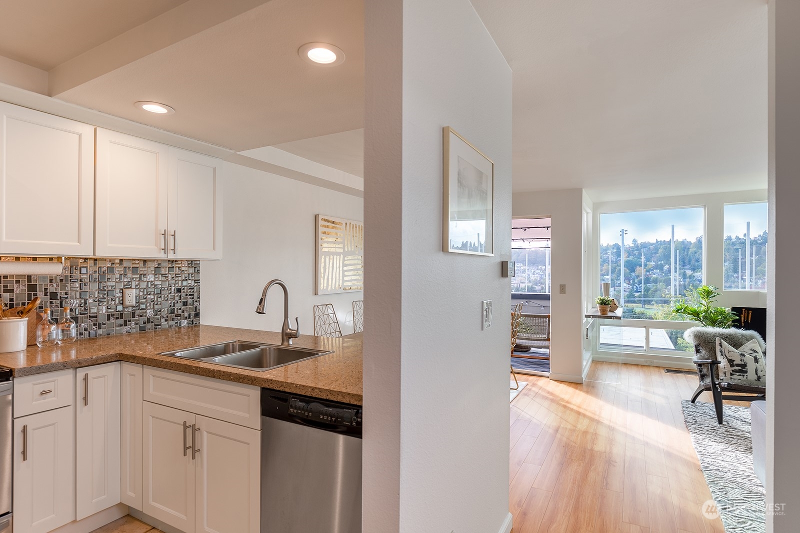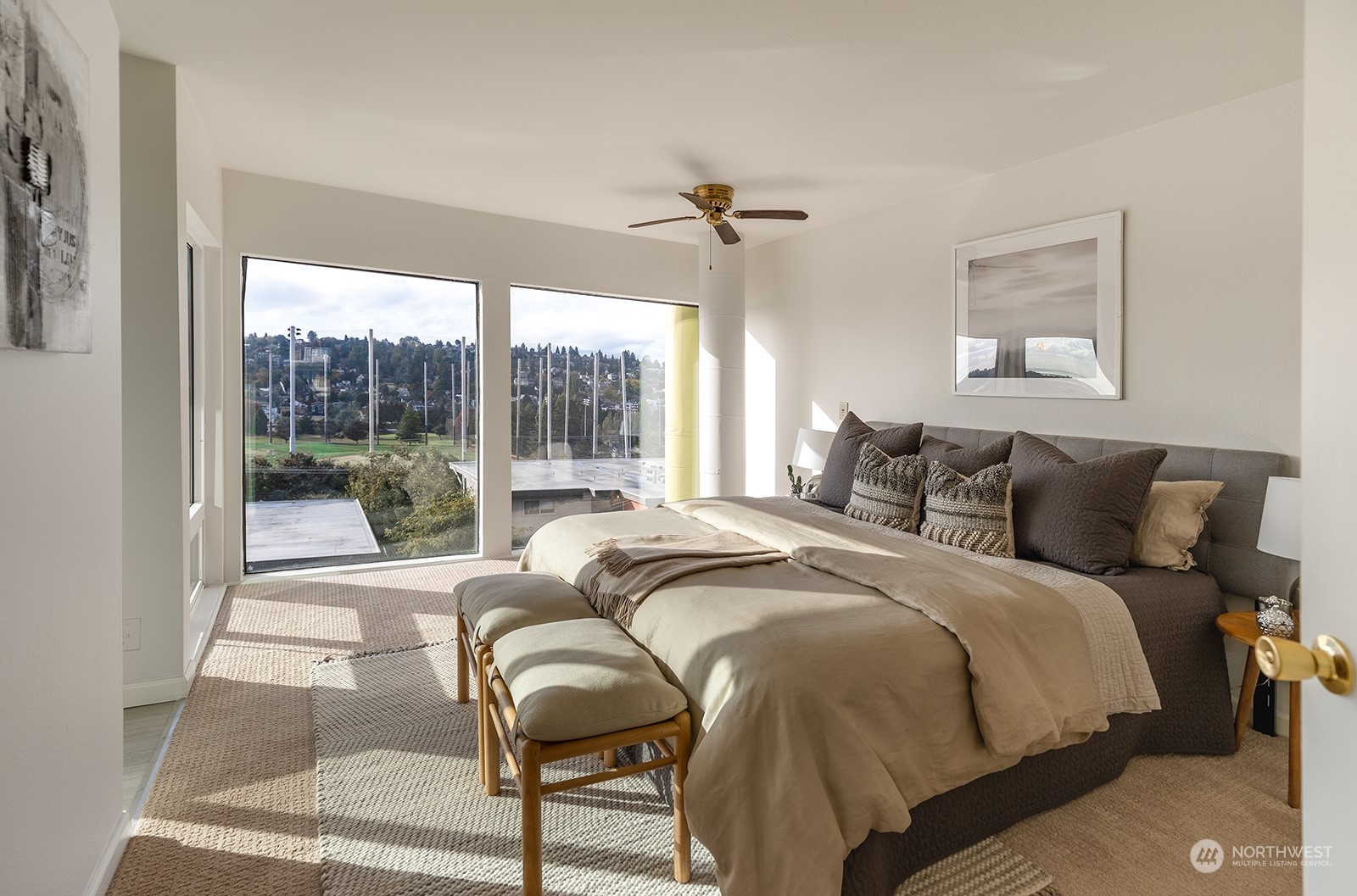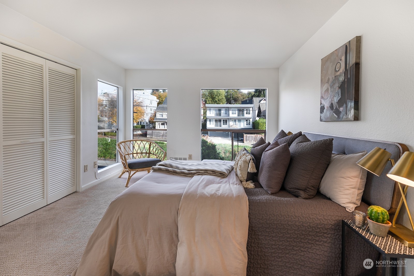 Step into the gallery-like two-level entry & be impressed at every turn! With 1,361 sf, this spacious home lives like a townhome with a welcoming living space, a sprawling primary suite + TWO more large bedrooms. Soak in the unobstructed VIEWS & natural light from this charming 3-bedroom Queen Anne top floor condo. Things to love: VIEW, gallery foyer, atrium stairwell, parking & lots of storage! Newer building exterior & roof. In the unit: new LED lights, newer kitchen, updated baths, fresh paint & more! RARE 3 designated parking spots (two covered & one tandem). Awesome location, just blocks to Upper Queen Anne and minutes to Magnolia, Ballard, Fremont, SLU & everything Seattle. Views are SPECTACULAR, see it in person & fall in love!