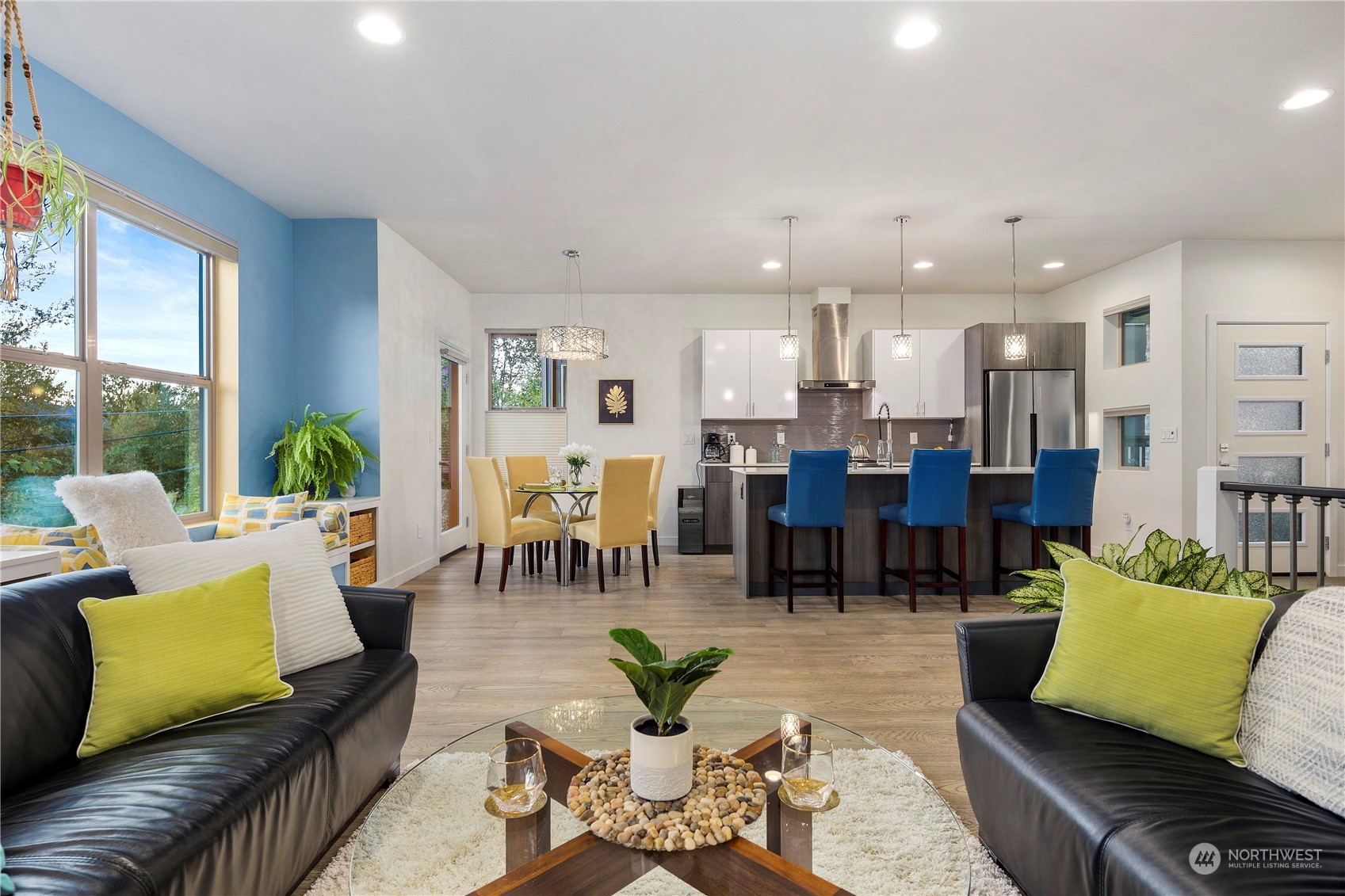 Beautiful, move-in ready home with high-end luxury finishes, feat. gorgeous views of the Snoqualmie River & sunsets! Open concept modern & spacious living with high ceilings, large windows, balcony off kitchen, Quartz countertops, S/S appliances, custom cabinets & deck. 32k+ in upgrades: top-down, bottom-up cellular shades, window seats w/ views & storage, upgraded luxury lighting & carpet, gas fireplace, landscaping & refinished garage floor. Large primary suite w/ 5-pc bath and walk-in closet, connected beds & bath upstairs, separate 4th bed & bath in the basement along w/ living & office area. Wired for generator. Mins to shops, dining, Snoq. Valley trail, dog park, community garden, park & ride, M. Connector & schools. NO RENTAL CAP!