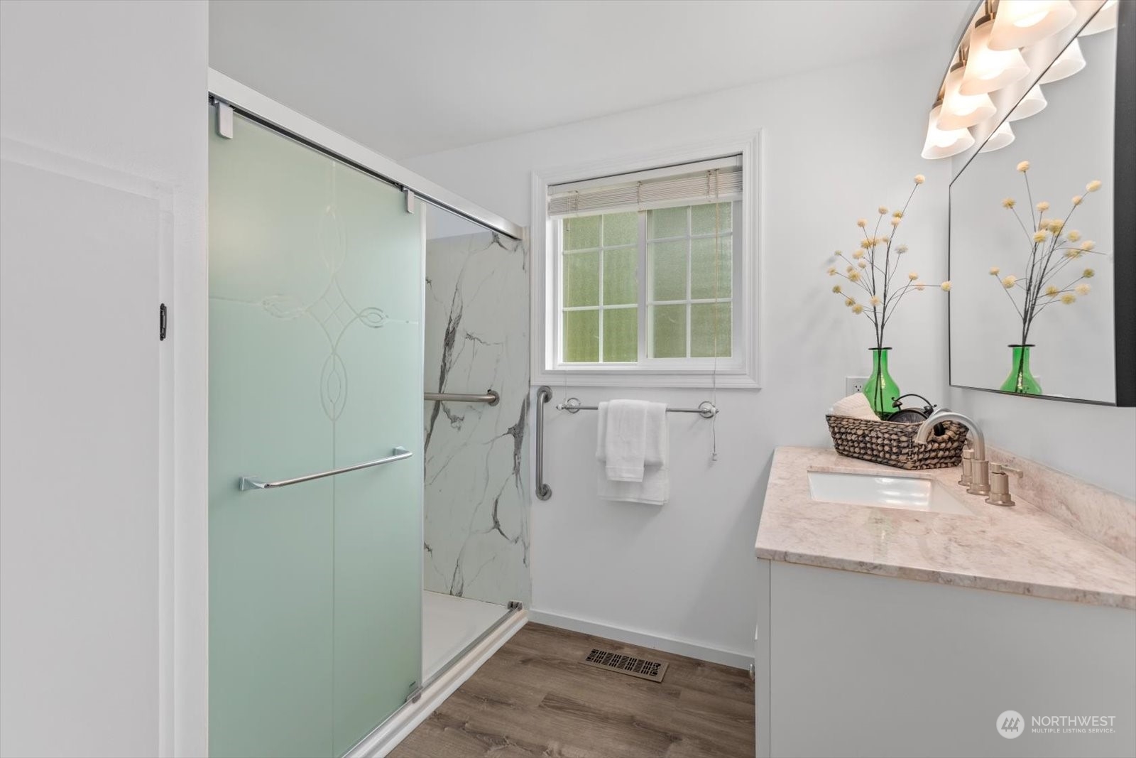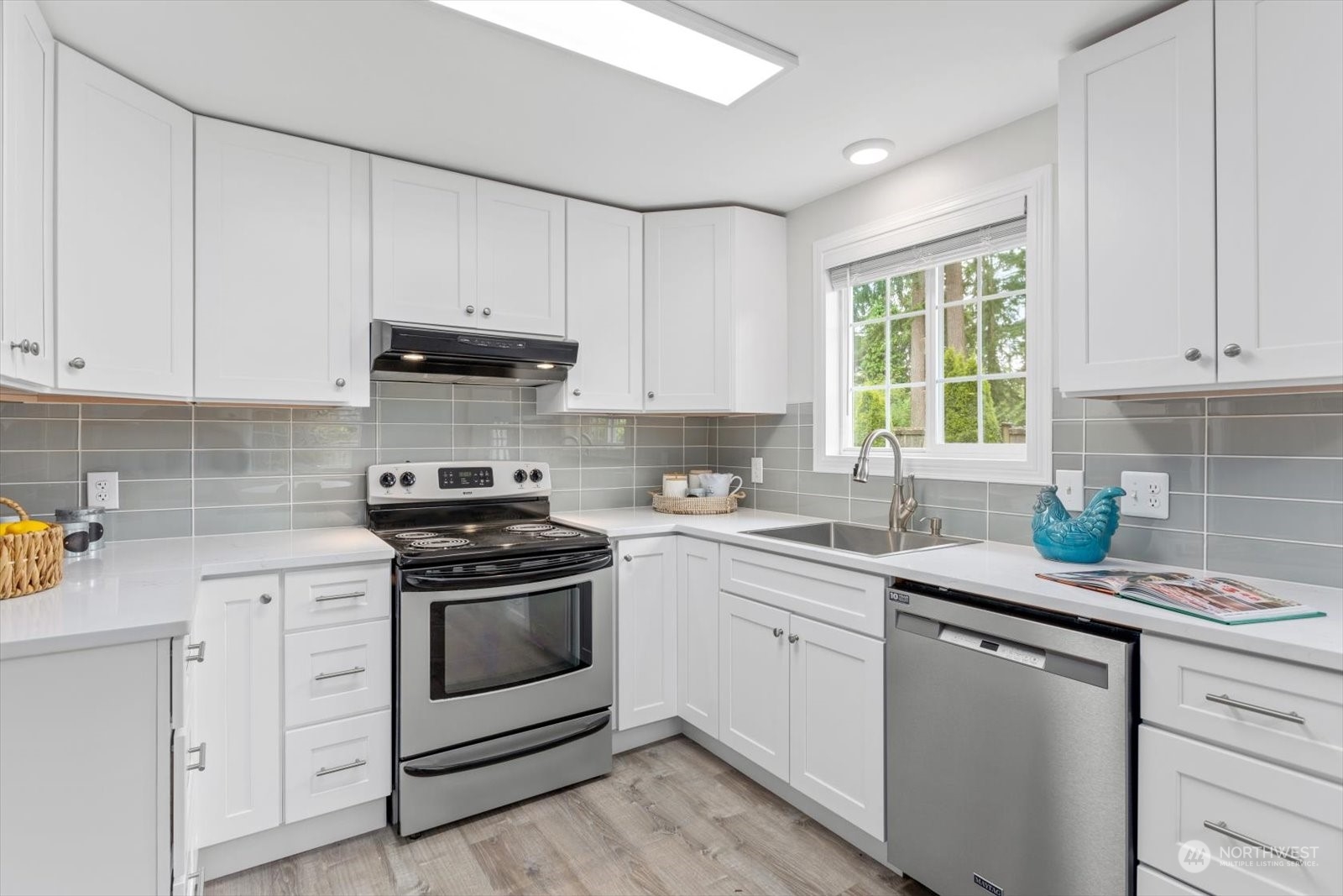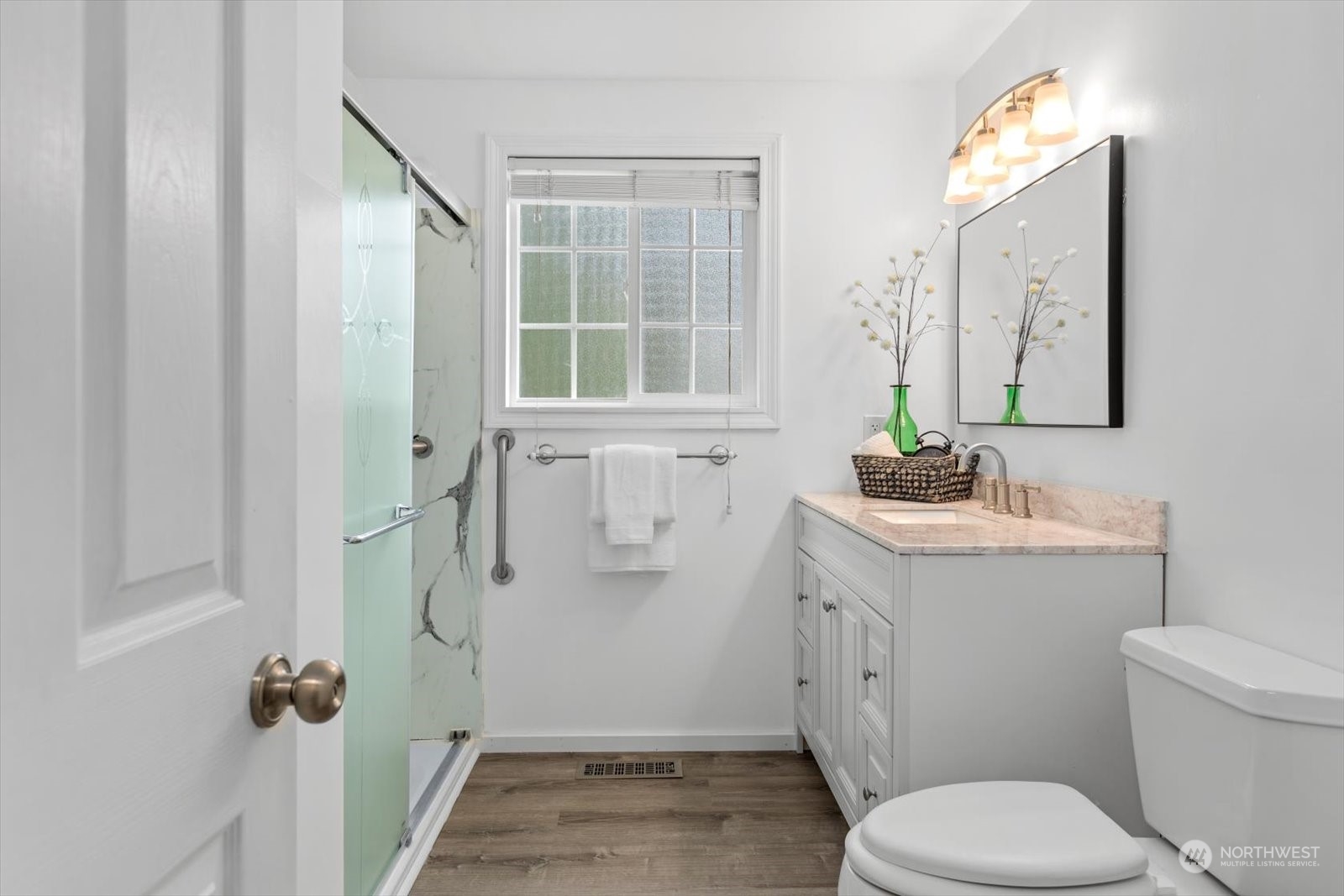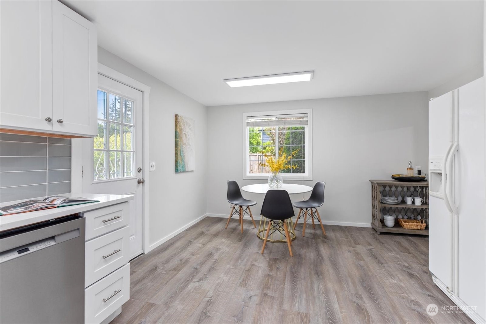 NEW PRICE. Great two story in desirable Westgate neighborhood. New hard plank flooring on the main, fresh designer exterior and interior paint. Large living room provides a great space for entertaining and nice access to the back yard and deck. New kitchen with white cabinets, quartz counters, tile backsplash and eating area or make this a flex space for comfy furniture with access to backyard and patio/garden areas. Dedicated dining room off kitchen, generous bedroom and 3/4 bath complete the main floor. Upstairs 3 bedrooms, and another 3/4 bath or make the large bedroom a great teen retreat or family room. Oversized laundry and storage complete the second floor. Private lot with mature landscape and single car garage.