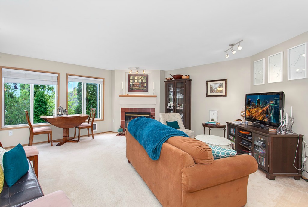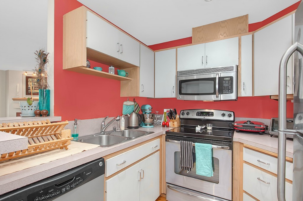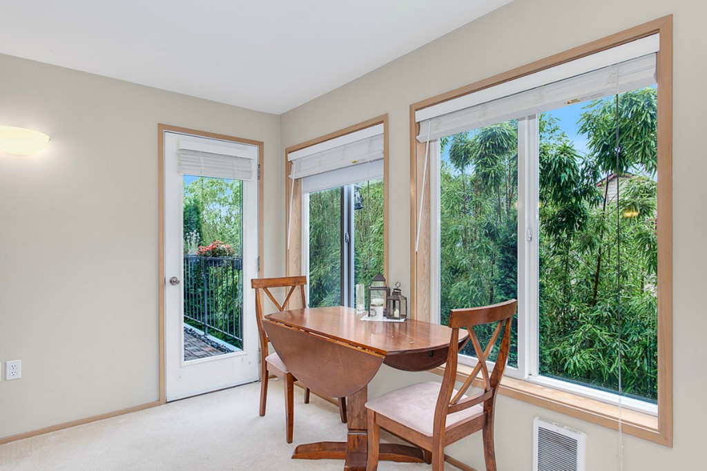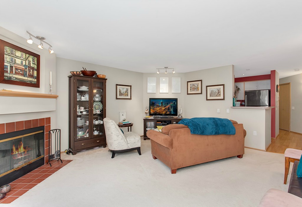 Light & bright 2 bed & 2 bath condo (in a pet friendly building) is ideally located between Green Lake & Greenwood. The home is located on the quiet back side of the building & has a beautiful private deck off the living room. Modern kitchen overlooks the living room which is large, open, & gets good light from the south facing windows. You will enjoy the unique wood burning fireplace! There is a washer & dryer in the home. There is one secured parking spot & additional storage. Elevator access.