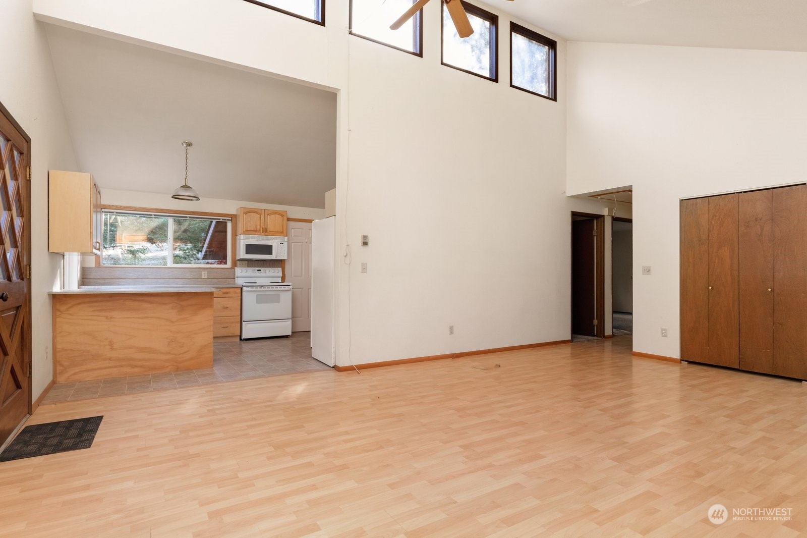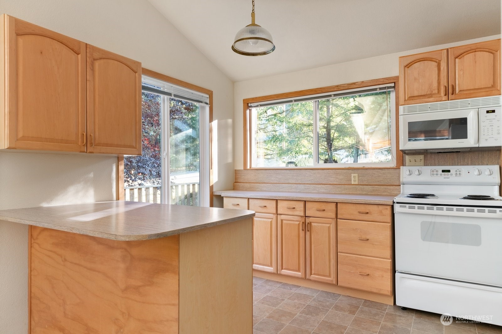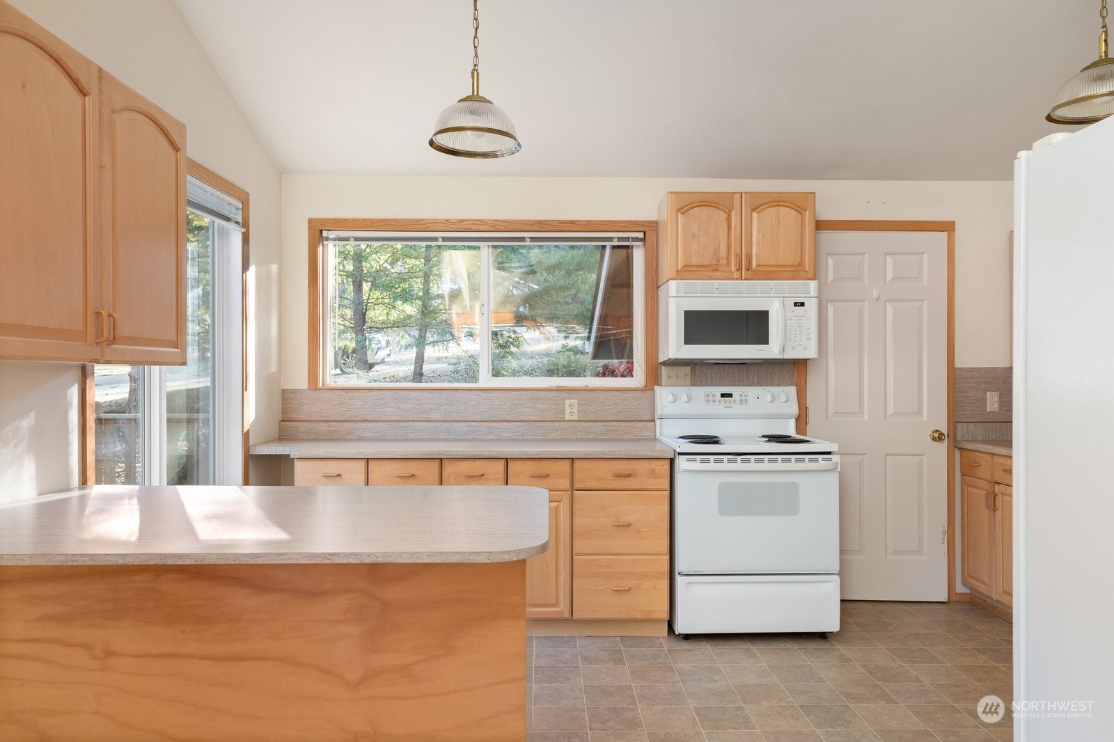 Location, Location, Location! Corner lot, with a peek view of the lake. 3bedroom 1.75 bath with detached garage and shop, huge unfinished room upstairs and giant unfinished storage under the home. Close to Lake, shopping and more. Seller just replaced roof and large deck will be stained. Home inspection completed and available to new buyers. Laundry room /pantry off kitchen. Come see your new home today!