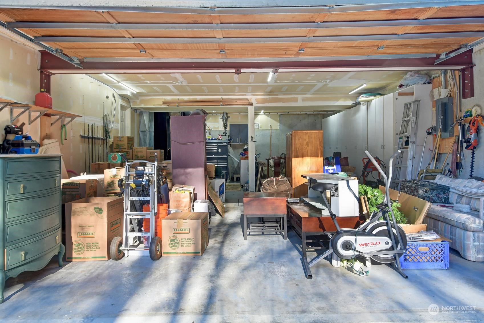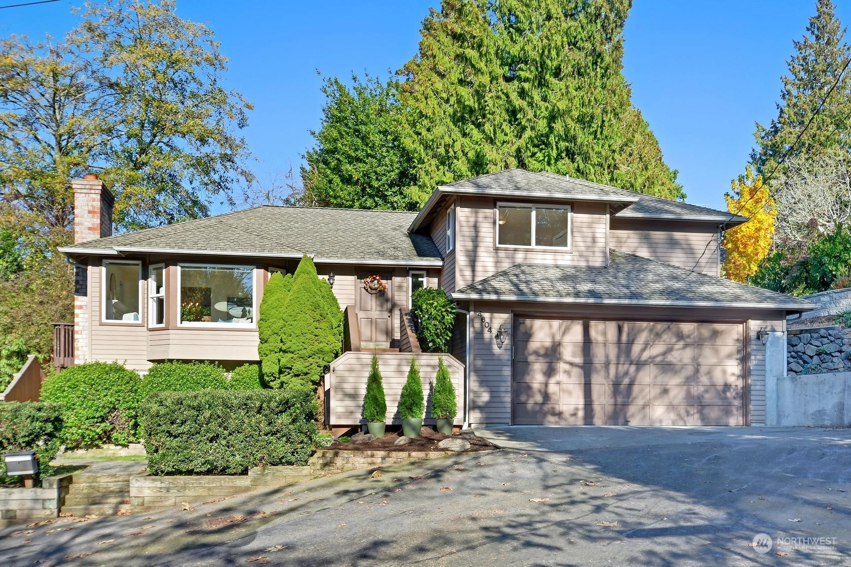 The home you've been waiting for is on a quiet lane, a short block from Lincoln Park, surrounded by mature landscape, offering peace, privacy & a rare 4 car garage. Formal entry with hardwoods leads to spacious, bright living room with big SW facing windows, new carpet & wood-burning fireplace, formal dining room & fully remodeled kitchen with soft close cabinets, stone counters, eating bar & SS appliances. Private back deck off kitchen is perfect for summer gatherings. Upper level offers generous primary bedroom with French doors to patio, huge primary bath, walk-in closet, 2nd large bedroom & full hall bath. Lower level 3rd bedroom or den, spacious family room, 3/4 bath & laundry. Garage fits a boat plus 2 cars, loads of driveway parking.