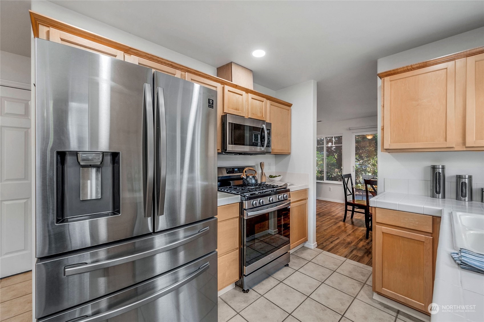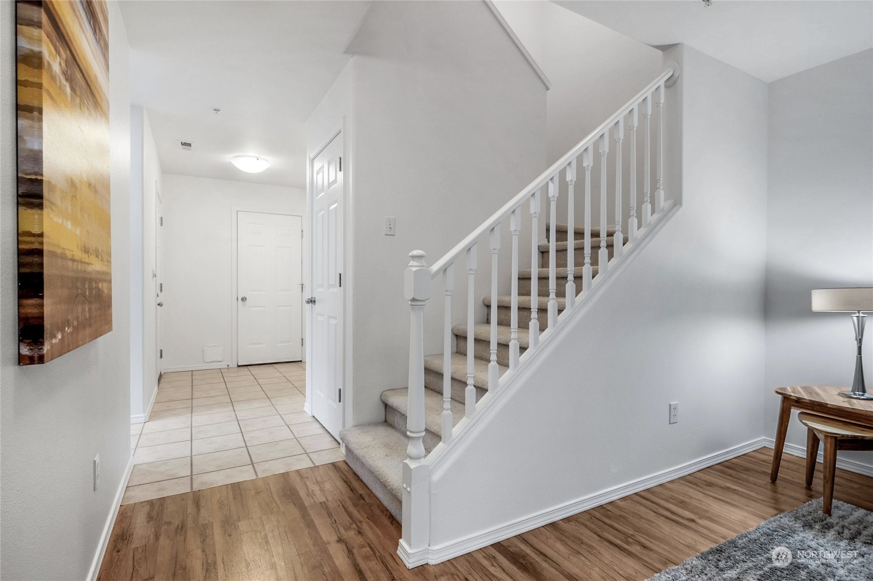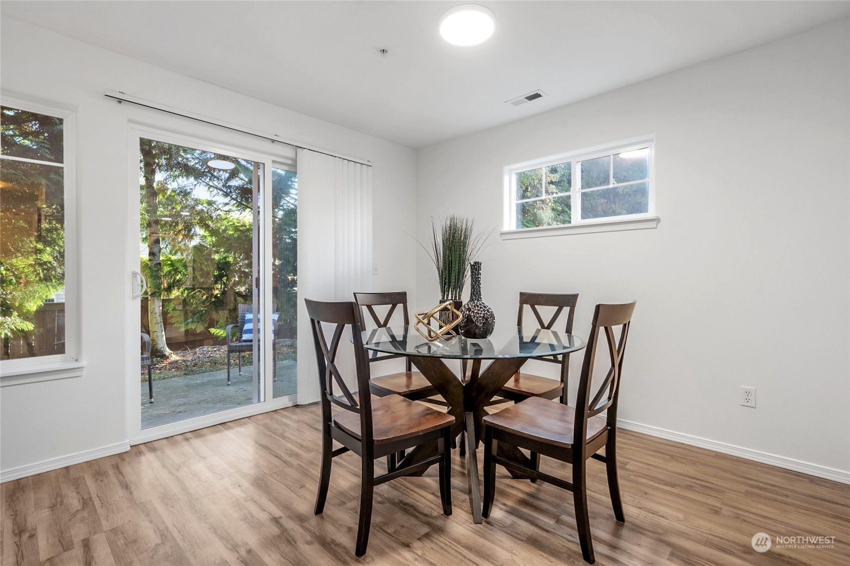 Well maintained townhome located in private Walnut Grove Community, at the end of a well manicured complex. Private and quiet with only one shared wall, truly lives like a detached house. Tons of light in the living room with a private back patio/yard. Gas fireplace highlights the living room with new beautiful floors. The light and bright Kitchen has tons of cabinet space and a Brand New Appliances. Half bath and laundry complete the main floor. Upstairs you will find 3 spacious bedrooms, including primary suite with walk in closet, full bath and vaulted ceilings. Two car garage w/ gas furnace and water heater. Fantastic Mountlake Terrace, less than a mile to light rail, lots of shopping options and easy access to Seattle and Eastside.