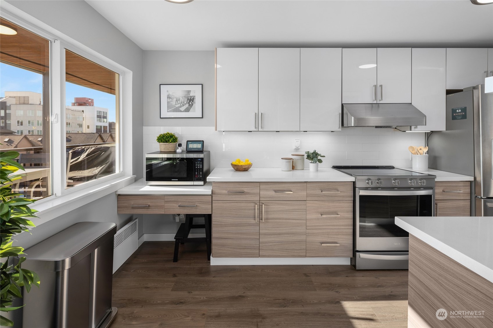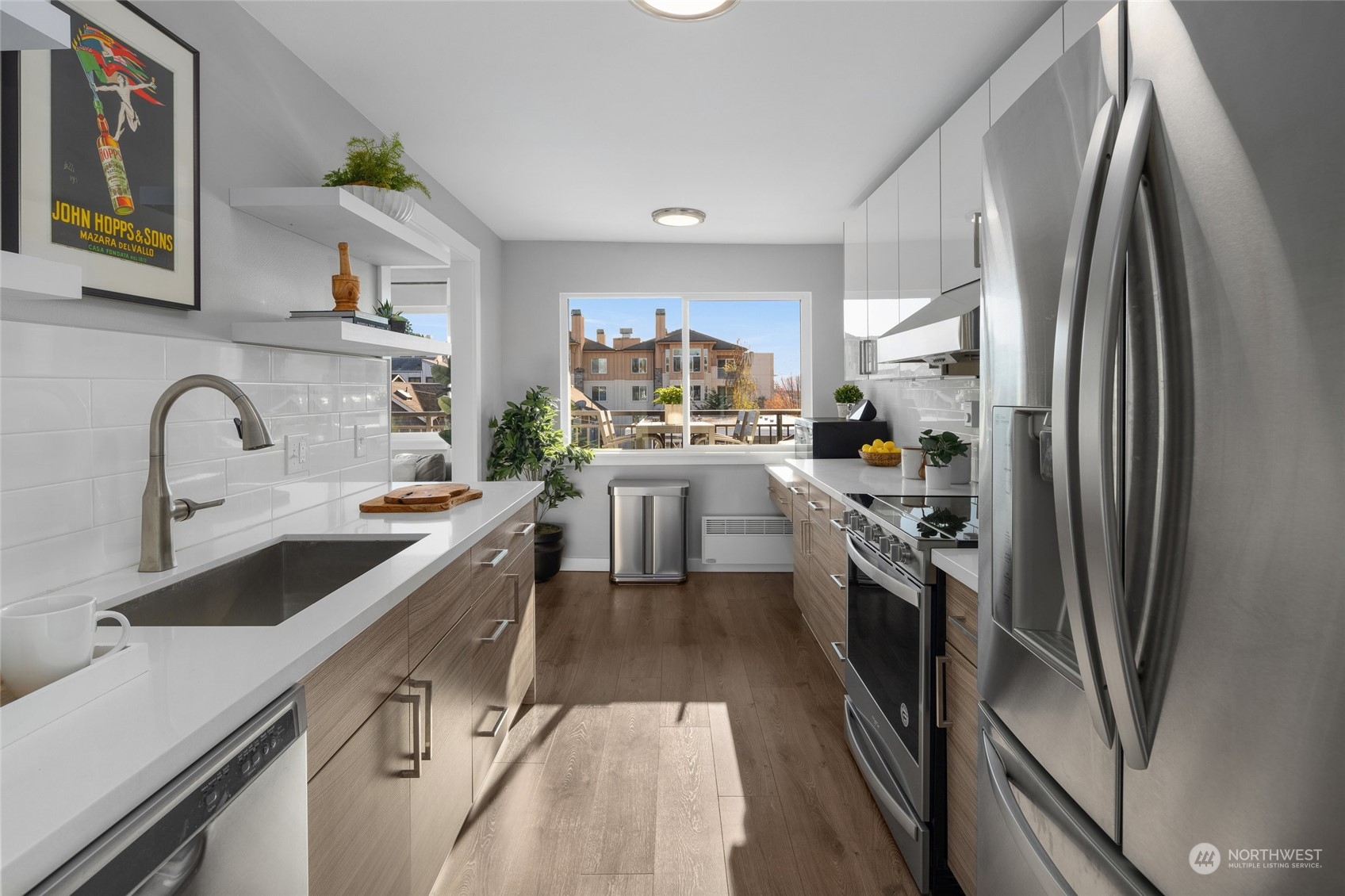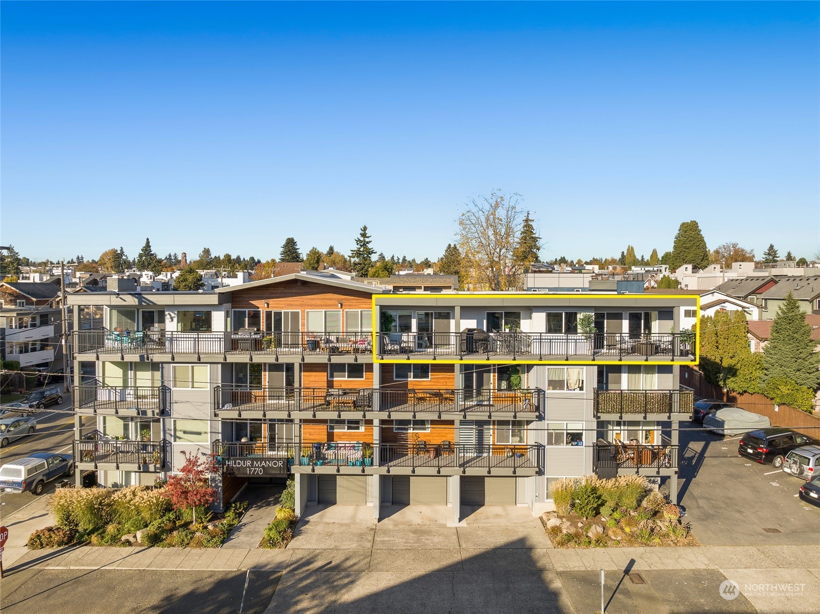This Southern-facing, sun drenched Ballard condo beckons. Boasting a 96 walk score its close to everything Ballard has to offer. If this isn't incentive to sell your car, the unit includes a secure garage and a designated parking stall. In building bike room, storage room, workout room, and sauna. Take the elevator to this top floor 1600+ ft spacious condominium unit; 3 bedrooms with large custom closets, 2 bathrooms, and 2 linen closets. In unit laundry and pantry, wood burning fireplace, remote electric window blinds. SS appliances. Unit completely updated inside and out, two years new exterior and roof, completely redone via Special assessment (paid). Enjoy sunny morning coffee or a sunset happy hour on your private 40 foot balcony!