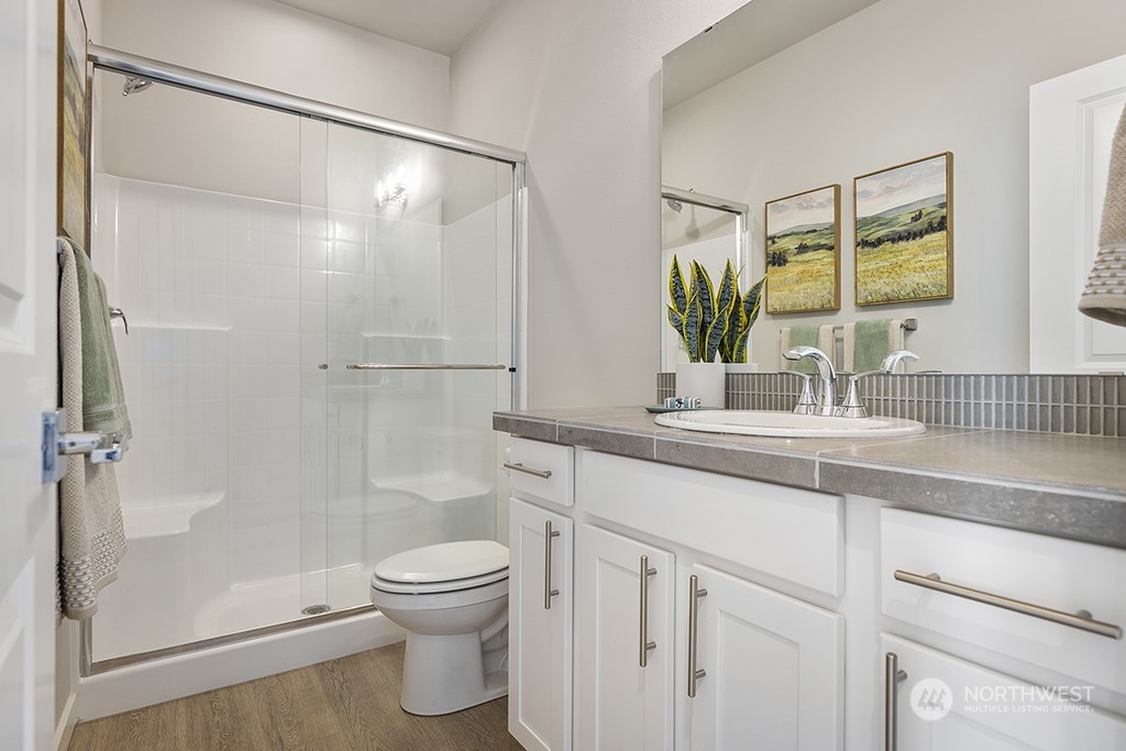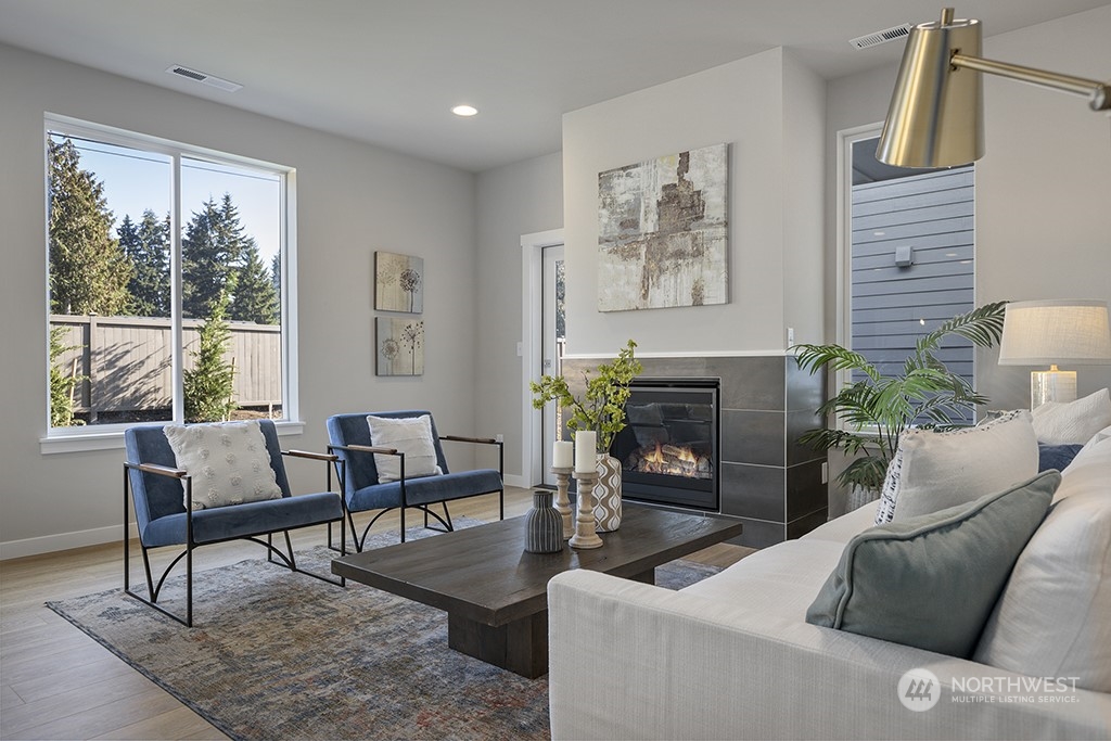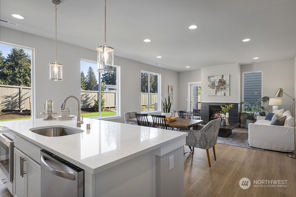Liberty Park Lot 10 features the new 2600B plan giving you 3bds, den, bonus room (poss 4th bd), loft & 2.75ba. Interior standards include laminate LVP & tile flooring, subway tile b/splash, white cabinets, modern lighting/hardware. Kitchen: SS appls incl gas range, walk-in pantry, single-basin SS sink & large island that opens to dining & great room w/ gas FP. Primary ensuite has freestanding soaker tub, sep tile/glass shower & dual sinks at vanity. Heatpump provides heating/cooling 24/7. Oversized laundry room, 2 car garage w/ EV charging outlet, front landscaping plus covered patio has plenty of room for seating/BBQ! Borders Open Space on 2 sides. Highly desired Donald Eismann Elementary. Mountain view from back of home. Move in ready.