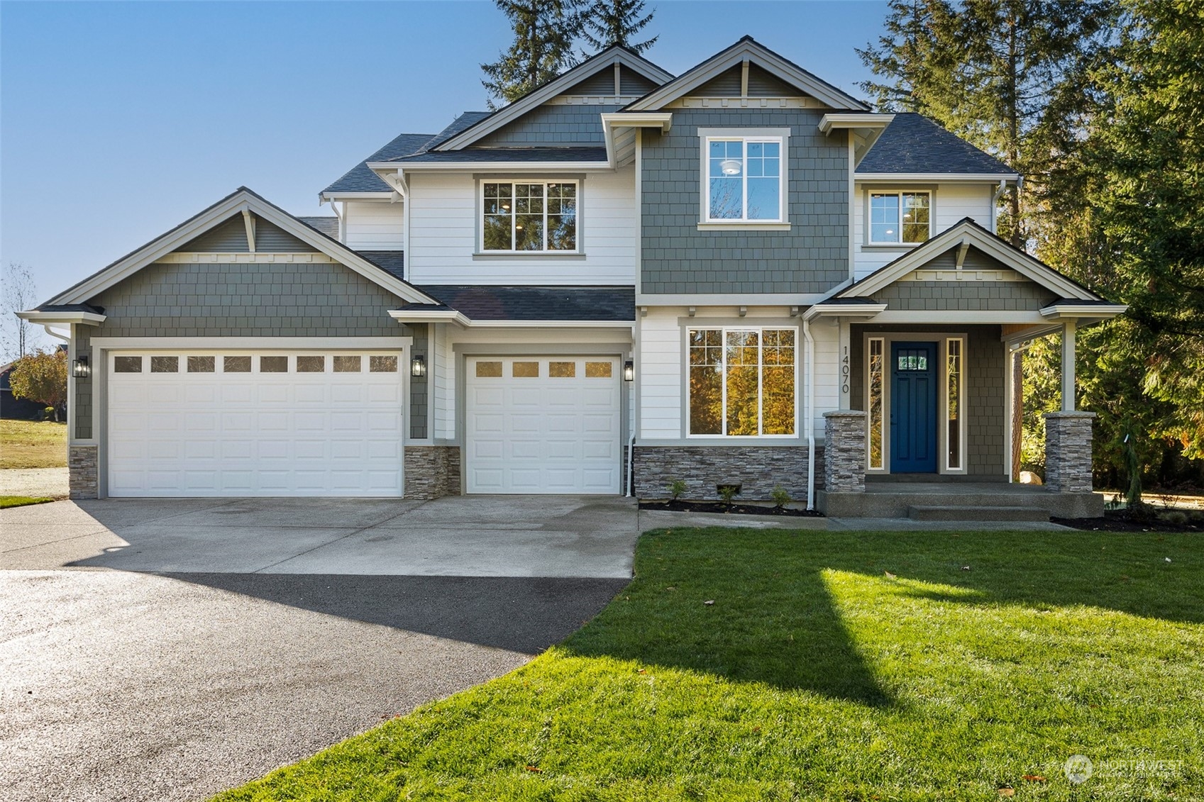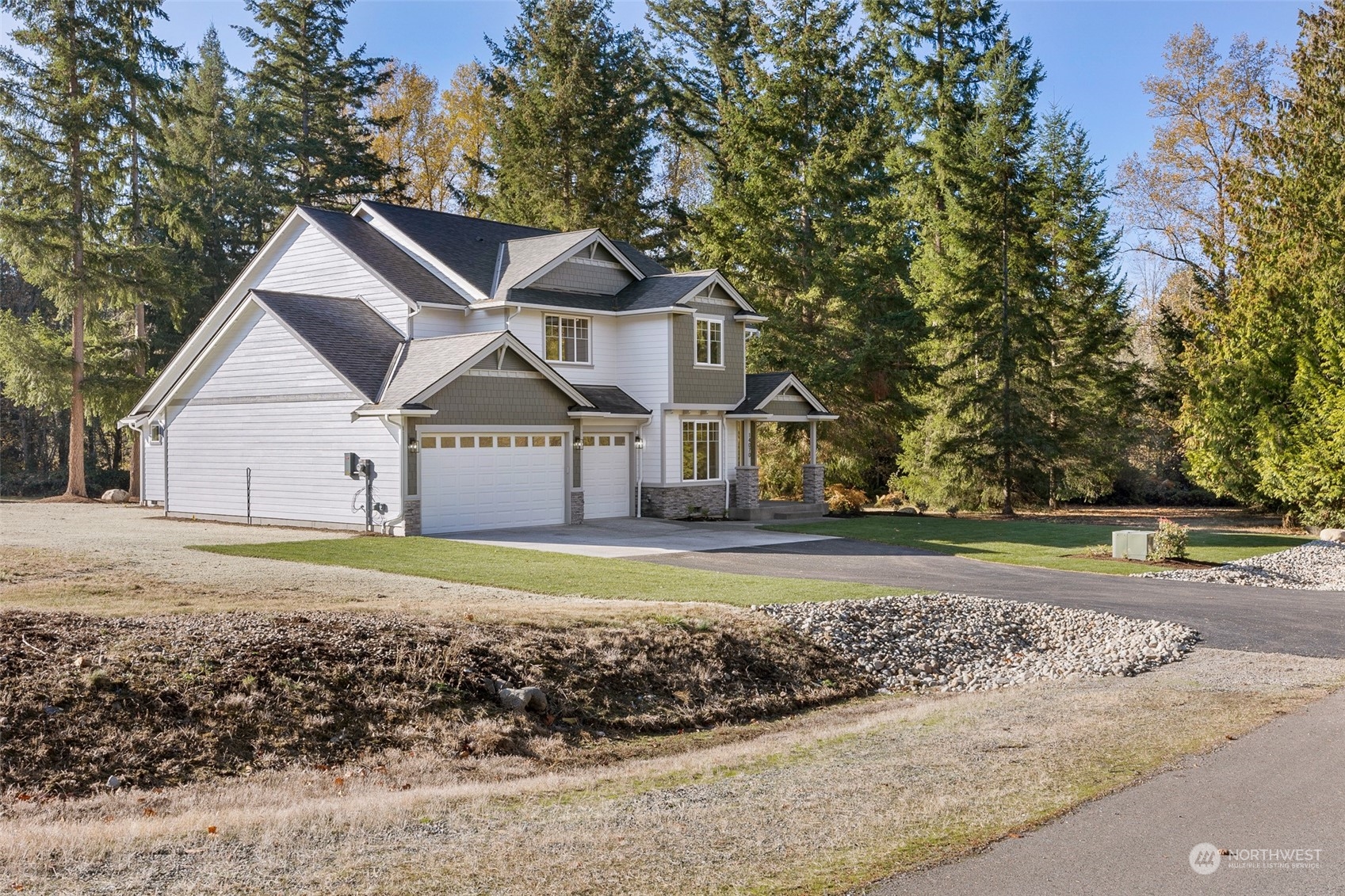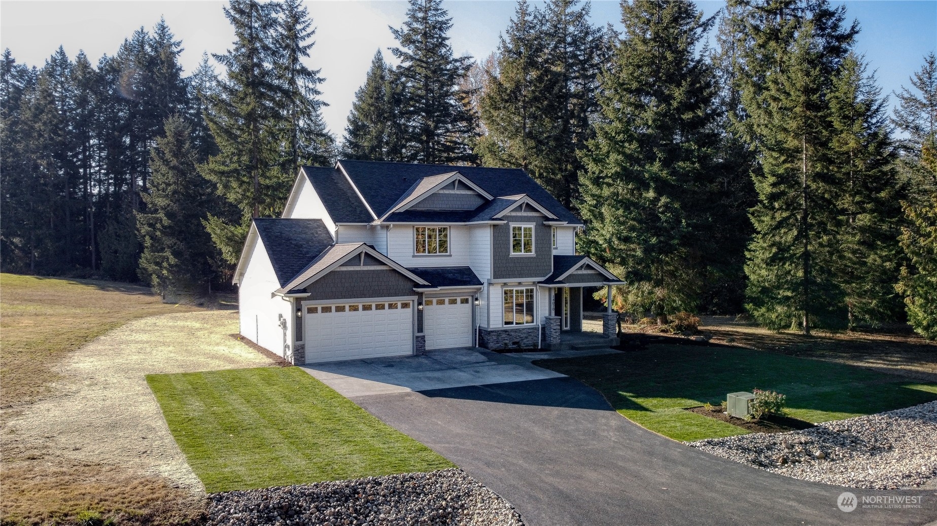 Enjoy quiet country living in the gated community of Equine Estates. This new construction craftsman is tucked away on a level 1.582 acres. Enjoy the serenity & sounds of nature from the warmth of the back patio fireplace. This home features 3,174 sq ft, 4 bedrooms (w/primary on main), 2.5 baths, office & bonus room. Includes quartz countertops w/under mount sinks & subway tile in kitchen, tile floors in baths/utility, stainless GE/LG appliances, combo microwave/oven, 5 burner gas cooktop, & a ledger-stone wrapped gas fireplaces in the living room flanked by custom book shelves. Includes specialty 40 year roof. Centrally located: 10 mins from Bonney Lake Costco & 15 minutes from downtown Enumclaw.Propane tank leased annually for $70.
