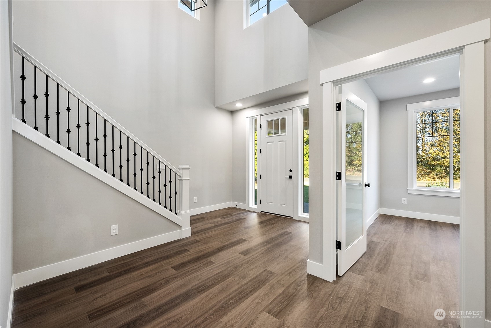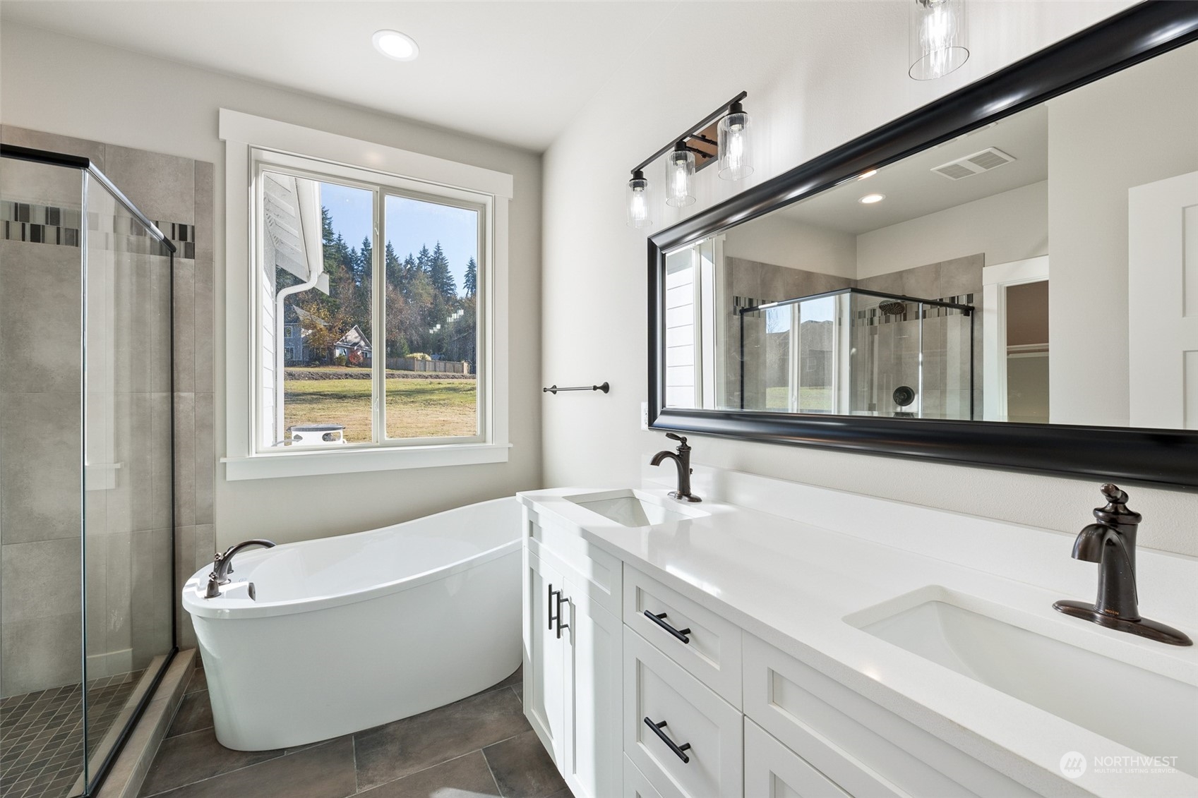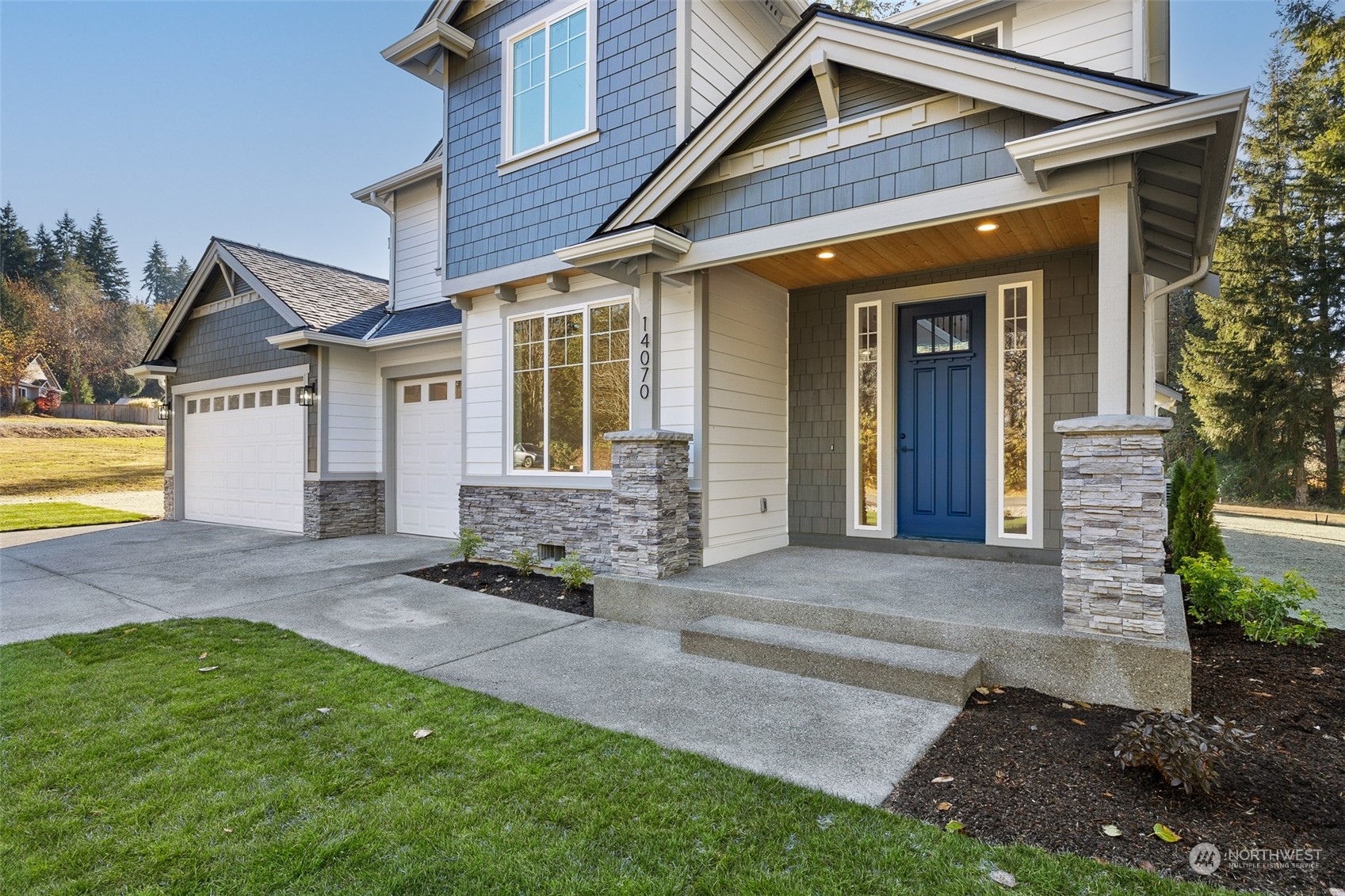 Enjoy quiet country living in the gated community of Equine Estates. This new construction craftsman is tucked away on a level 1.582 acres. Enjoy the serenity & sounds of nature from the warmth of the back patio fireplace. This home features 3,174 sq ft, 4 bedrooms (w/primary on main), 2.5 baths, office & bonus room. Includes quartz countertops w/under mount sinks & subway tile in kitchen, tile floors in baths/utility, stainless GE/LG appliances, combo microwave/oven, 5 burner gas cooktop, & a ledger-stone wrapped gas fireplaces in the living room flanked by custom book shelves. Includes specialty 40 year roof. Centrally located: 10 mins from Bonney Lake Costco & 15 minutes from downtown Enumclaw.Propane tank leased annually for $70.