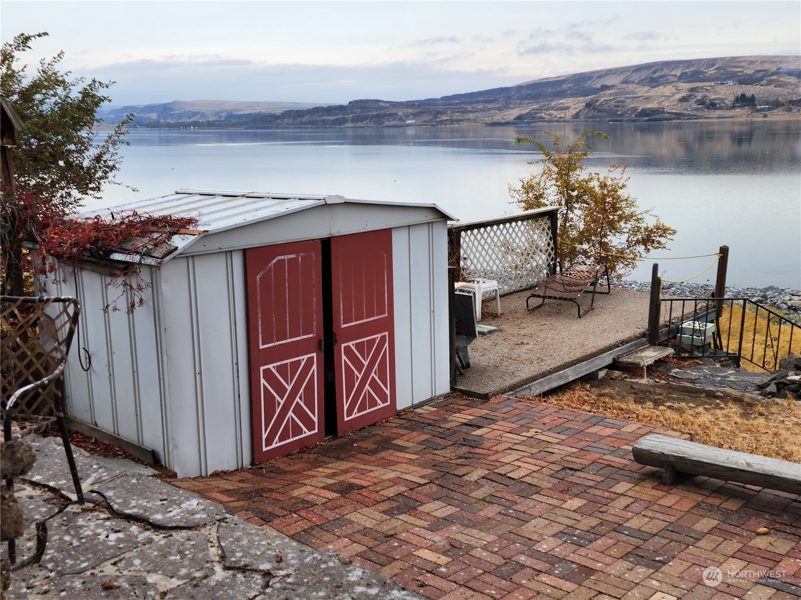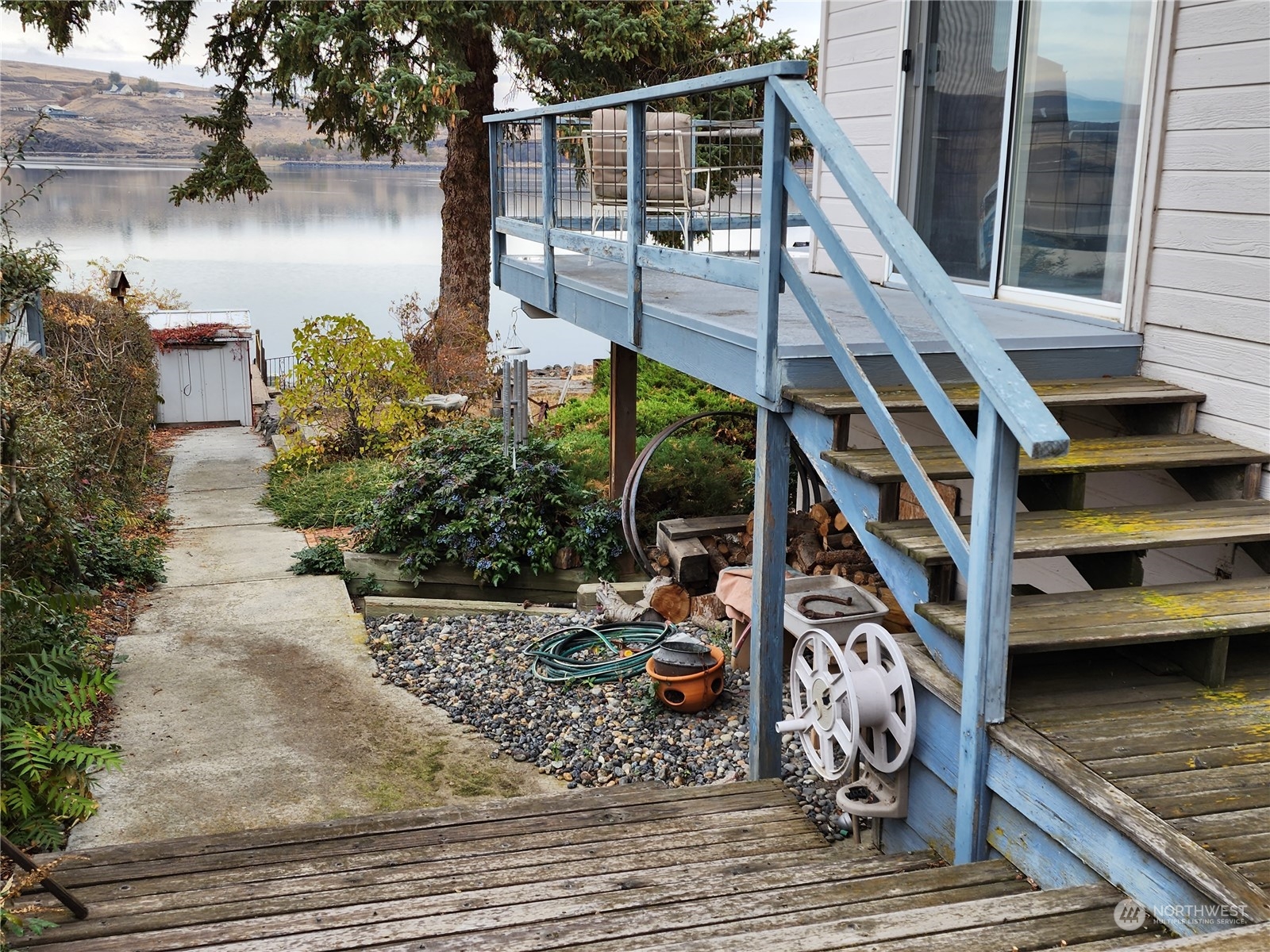 Rare opportunity, a house on the healing waters of Soap Lake. This home is one of only 14 homes on the lake. The 2 bd, 2 ba has expansive views of lake and surrounding cliffs. Enjoy your morning coffee sitting on the multi-level deck or waterfront dock. Large picture windows thru-out provide year round beautiful views and sunshine. Just off dinning rm is a spacious, fully enclosed outdoor kitchen perfect for entertaining. Built in the 50's, with an addition in the 90's to include utility room, office, craft room and shop in basement. Lakeside yard is very private with hedges and fencing. Primary bdm has walk thru dressing room to bath, tub and separate shower. Enjoy as a vacation home or live year-round. A must see for lakefront property.