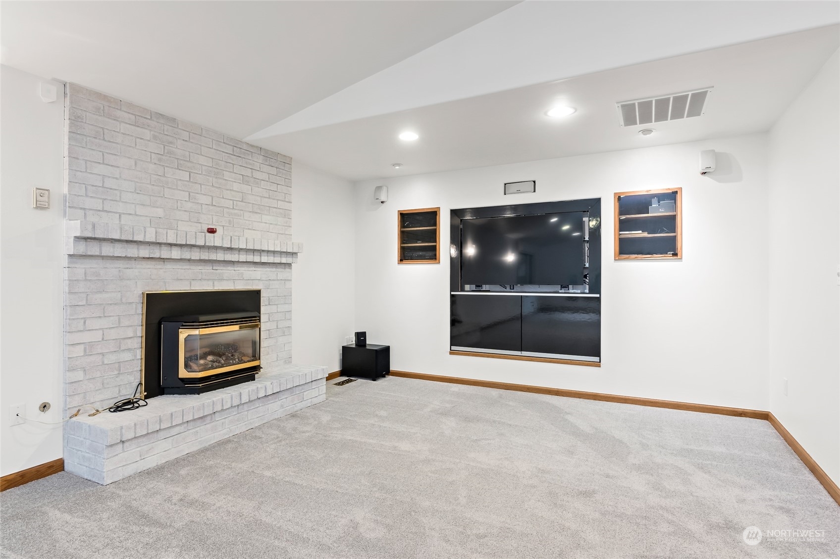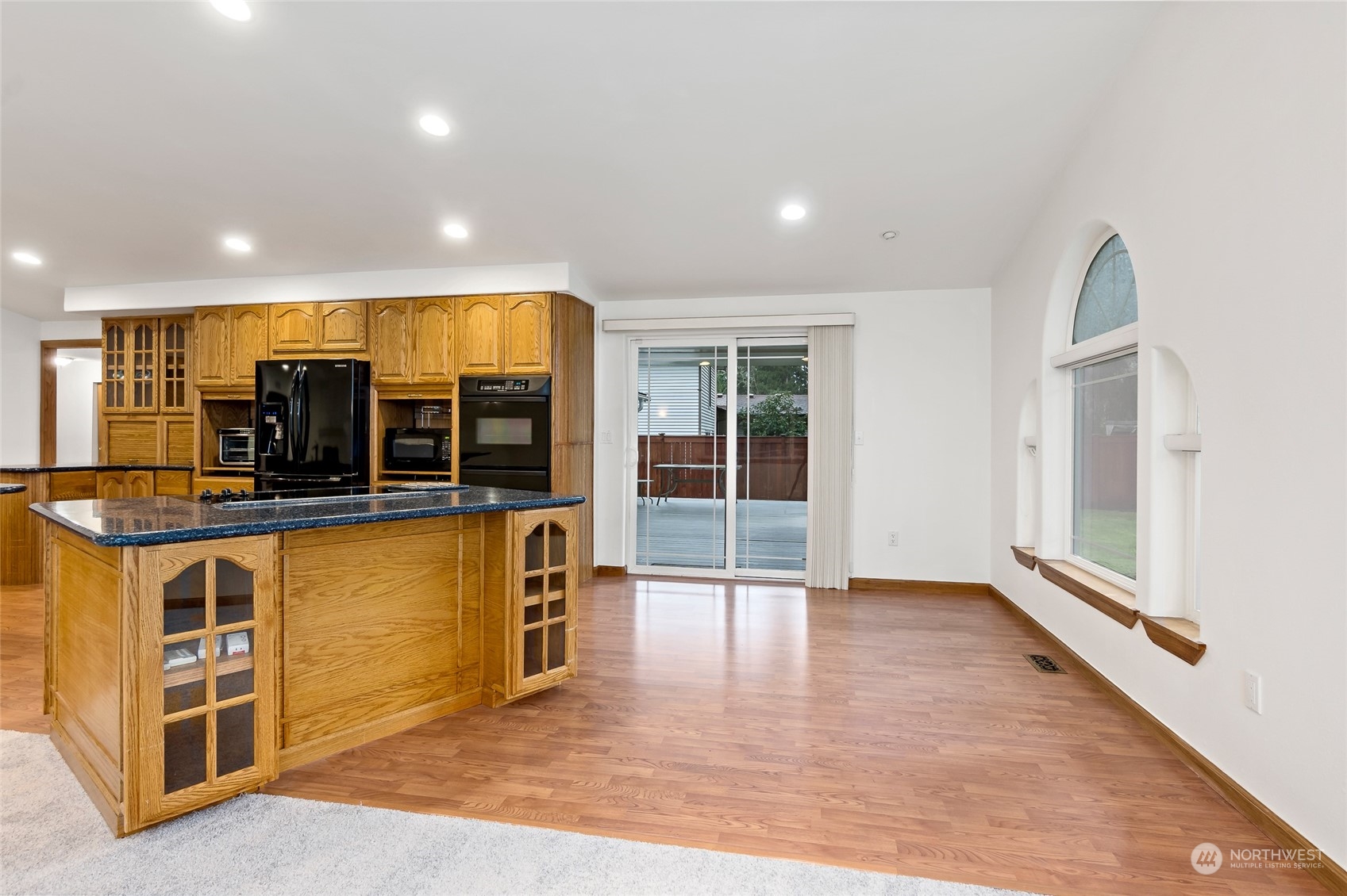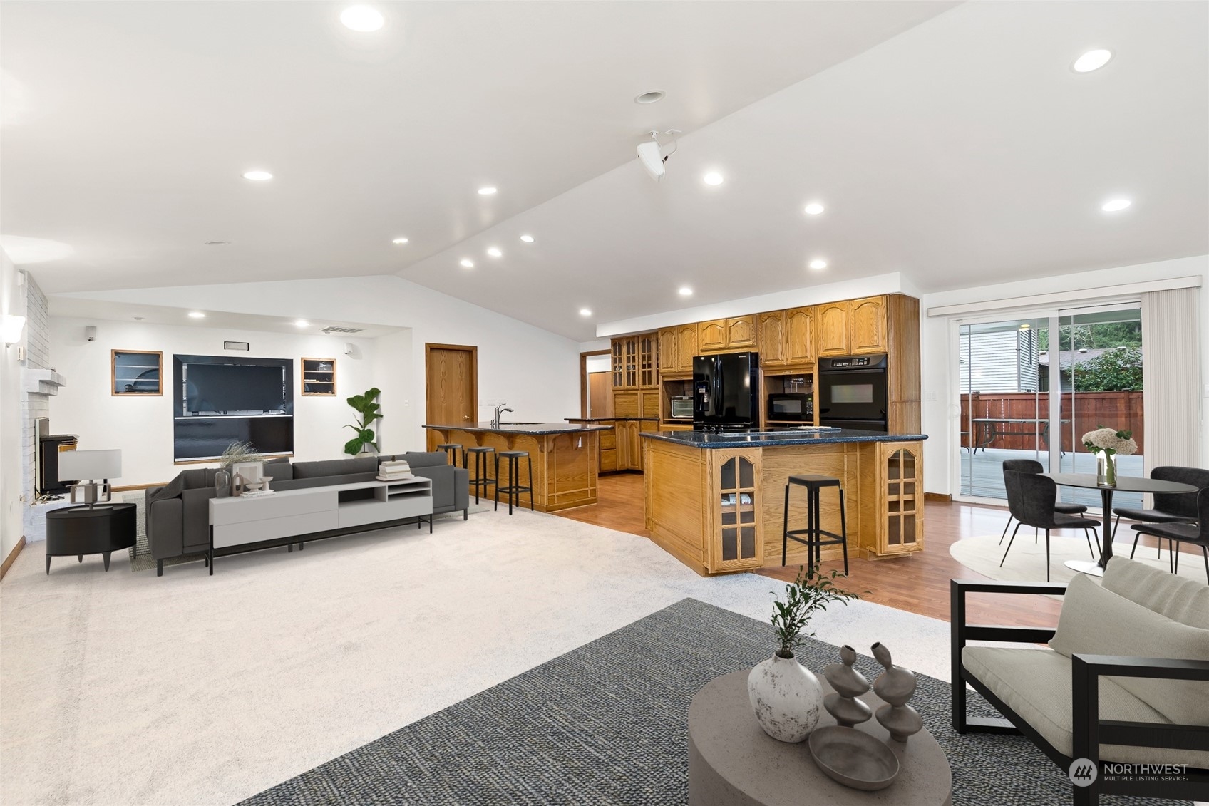 BEAUTIFUL 1876 sqft spacious rambler w/open concept in small quiet friendly neighborhood that features 3 bdrms 2 bthrm w/primary suite w/ext dr to back deck, new carpet throughout, cathedral ceilings,heat pump & a/c,Surround sound system,flat screen TV,custom oak cabinetry w/lots of storage which includes dble ovens,2 islands w/eating space,cook top range w/dn draft ventilation, kitchen sink,dishwasher,trash compactor & garbge disposal,Central vac system. Snuggle up to a warm cozy propane fire insert-also includes formal dinning & living rm. Outside features include,newer roof,leafGuard gutters,covered deck w/outdr spkrs,covrd carport,custom blt 14x14 shed w/loft & cabinetry, fully fenced backyard, hm wired for gen,gen included. RV parking.