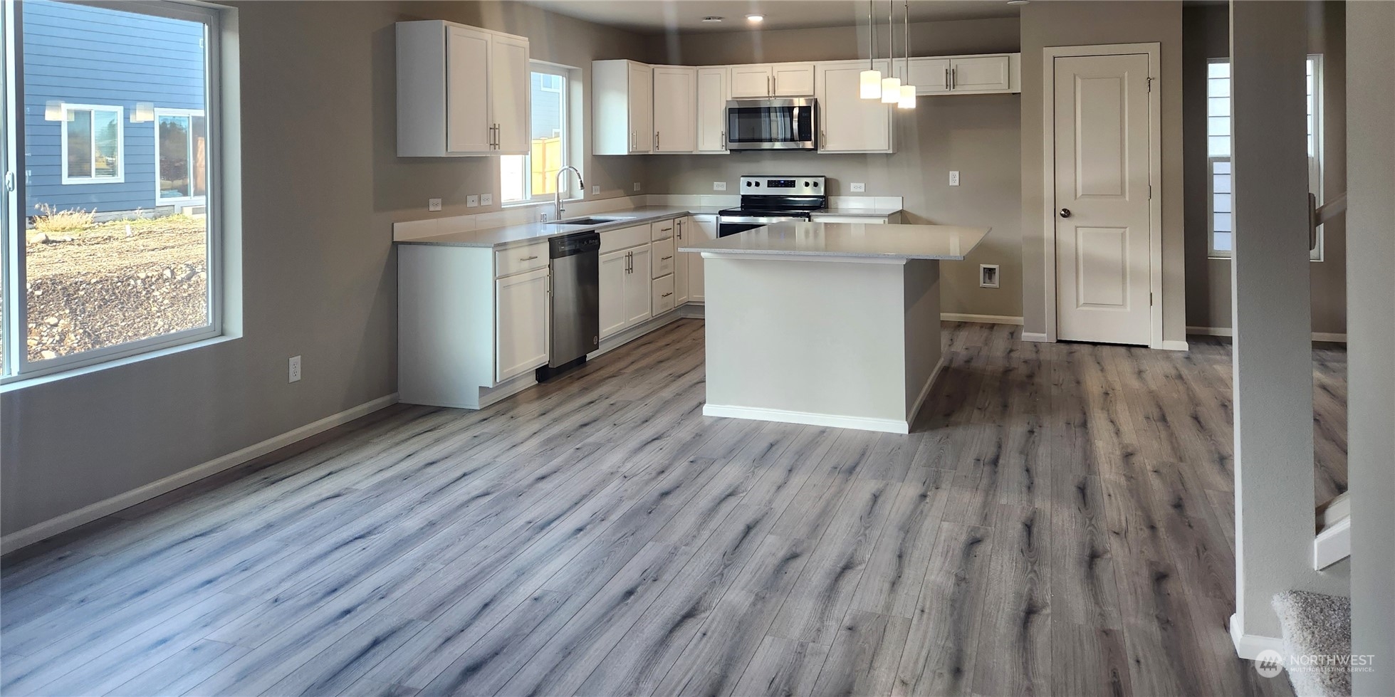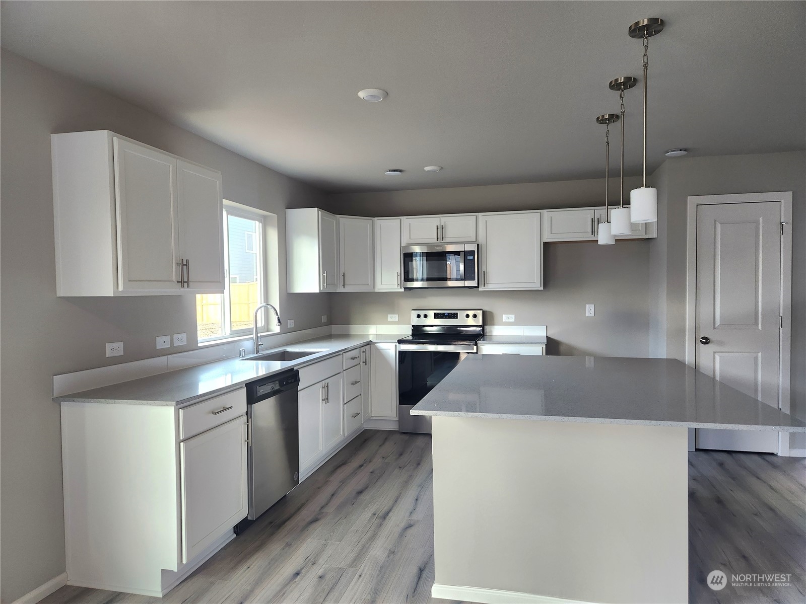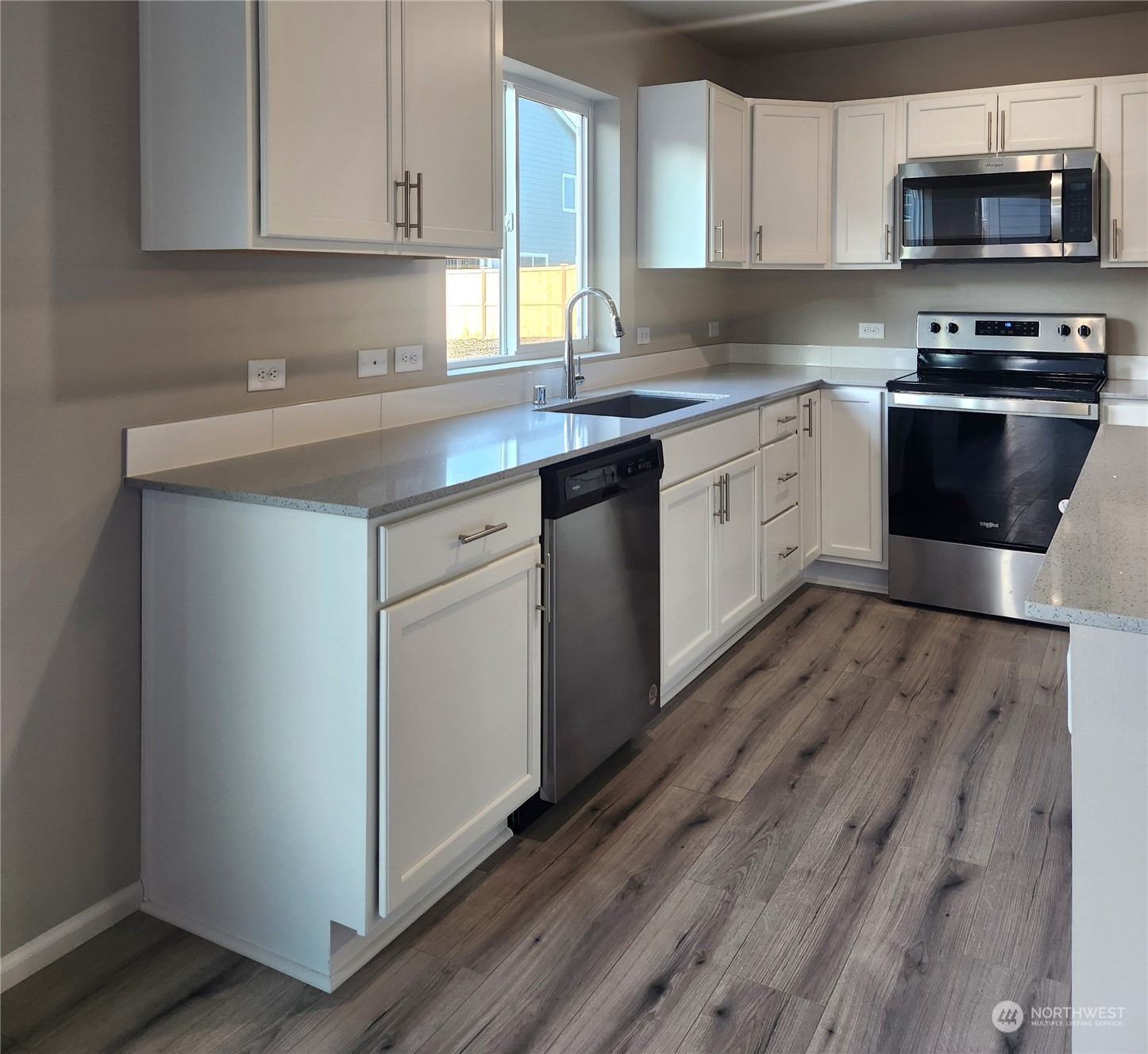 Our Home of the Week! The Warren on *Homesite 58 sits near one of the future community parks & is a spacious 2,448 sq/ft, 4bd, 2.25 bath home + main floor den. Expansive laminate floors on main, quartz slab kitchen counter tops & island w/plenty of room for extra seating, lots of room for cooking & entertaining w/additional dining space. Included appliances: Whirlpool range/oven, microwave & dishwasher. Mudroom & powder room off garage entry. Covered back patio for year round outdoor living! Primary suite w/large WIC + linen closet, double sinks, wall to wall counter space! Upstairs laundry room w/utility sink & cabinets, full-bath, beds 2, 3 & 4 & bonus room/loft! Heat pump/AC! Nearby schools, restaurants, recreation & JBLM. Move in Ready!