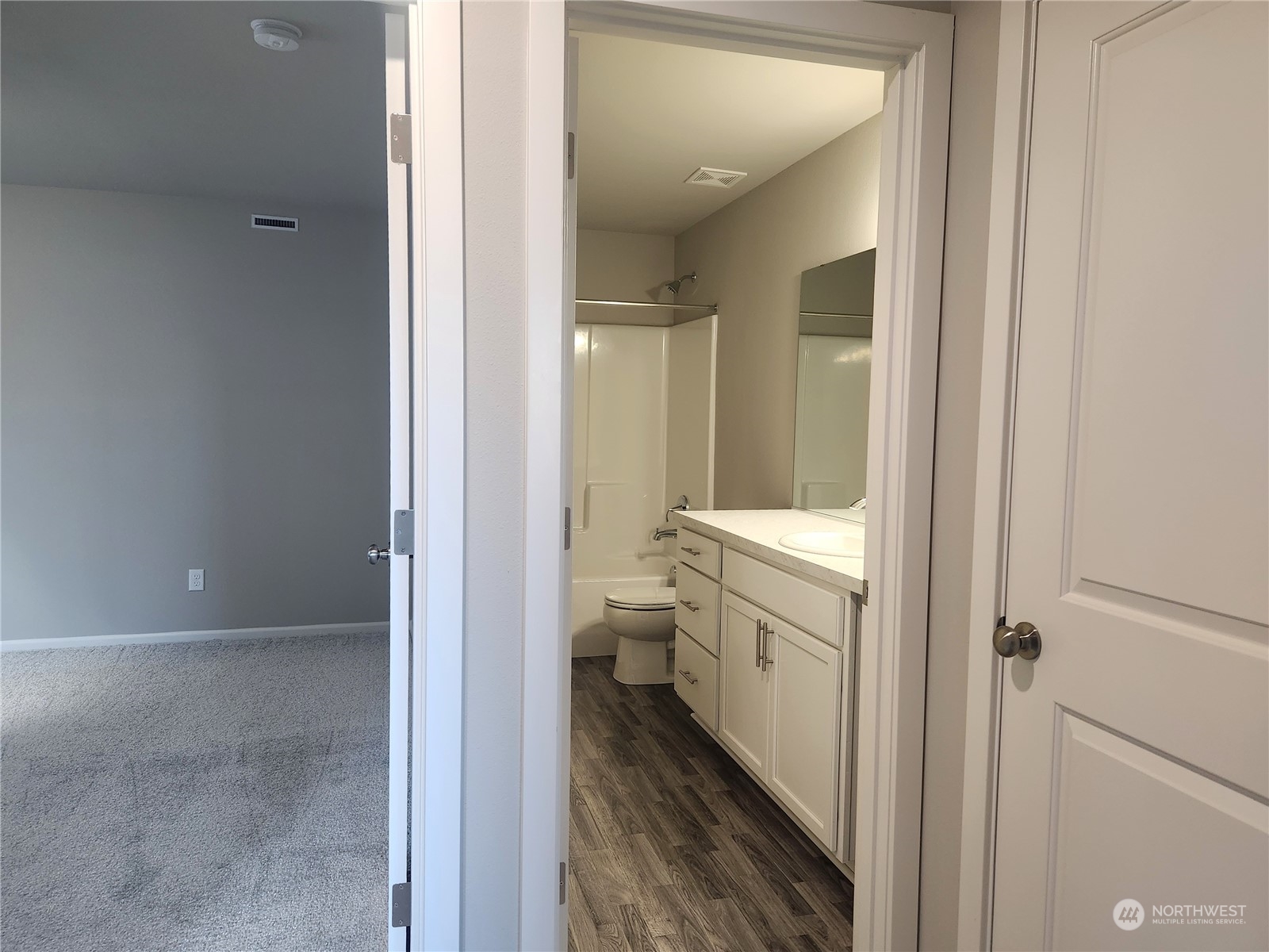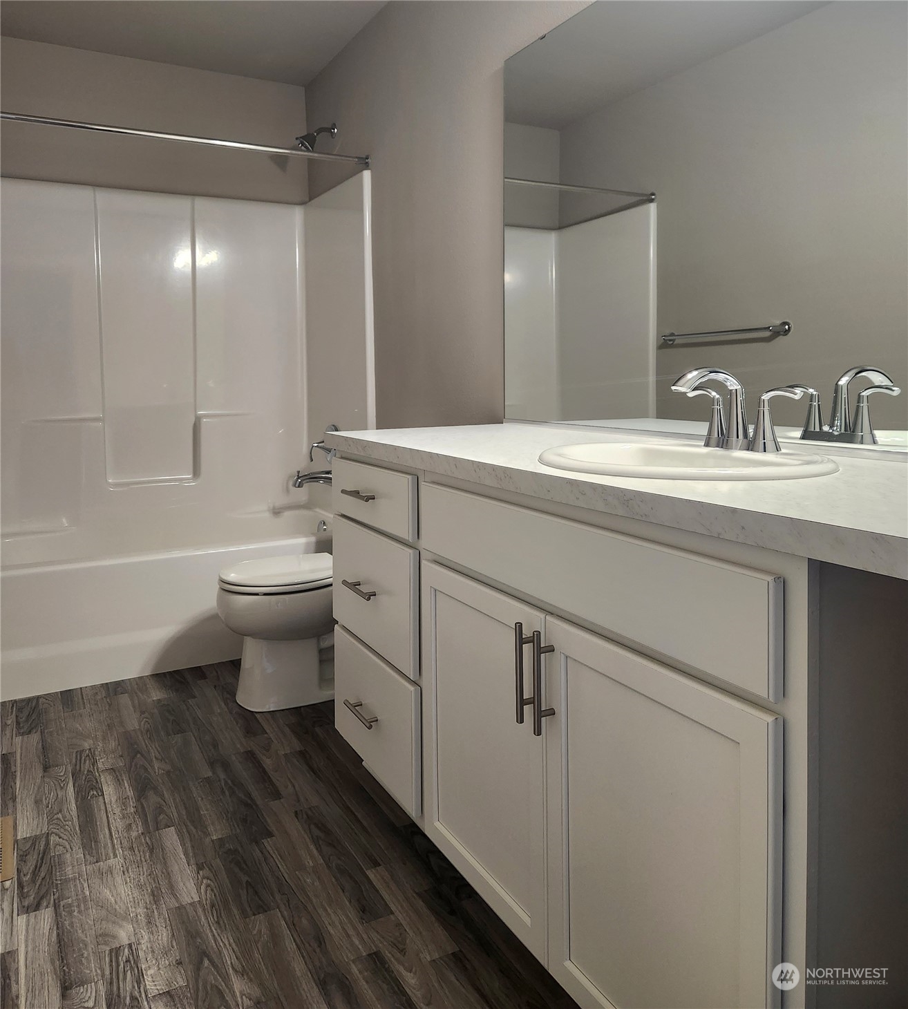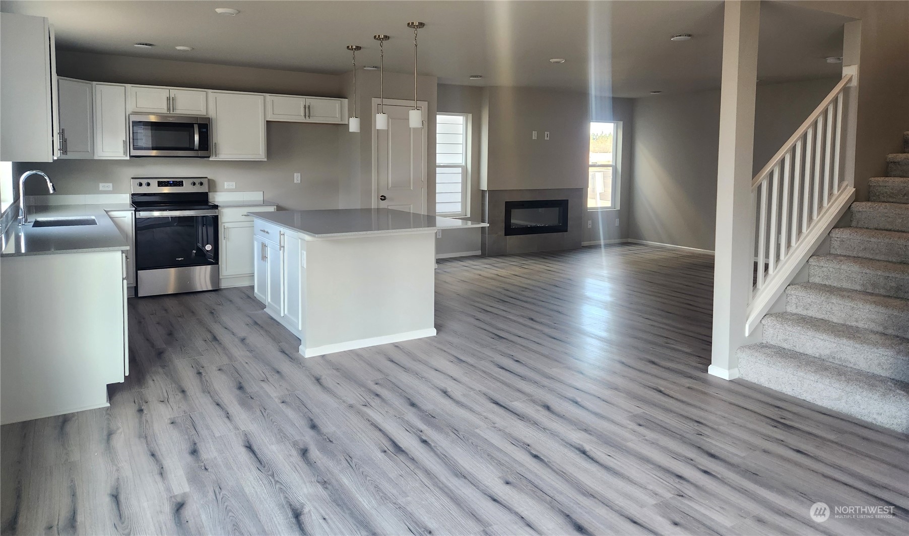Our Home of the Week! The Warren on *Homesite 58 sits near one of the future community parks & is a spacious 2,448 sq/ft, 4bd, 2.25 bath home + main floor den. Expansive laminate floors on main, quartz slab kitchen counter tops & island w/plenty of room for extra seating, lots of room for cooking & entertaining w/additional dining space. Included appliances: Whirlpool range/oven, microwave & dishwasher. Mudroom & powder room off garage entry. Covered back patio for year round outdoor living! Primary suite w/large WIC + linen closet, double sinks, wall to wall counter space! Upstairs laundry room w/utility sink & cabinets, full-bath, beds 2, 3 & 4 & bonus room/loft! Heat pump/AC! Nearby schools, restaurants, recreation & JBLM. Move in Ready!