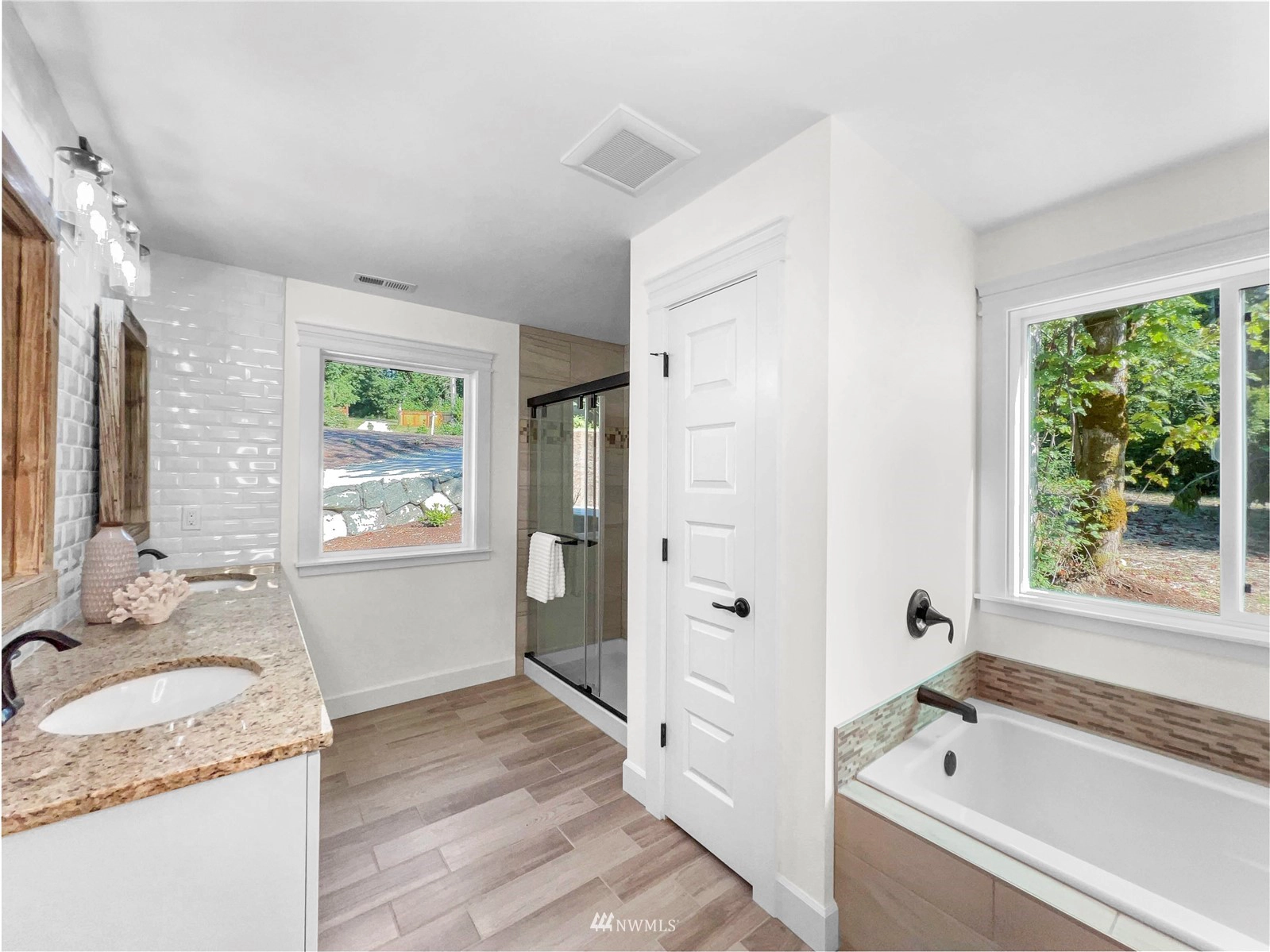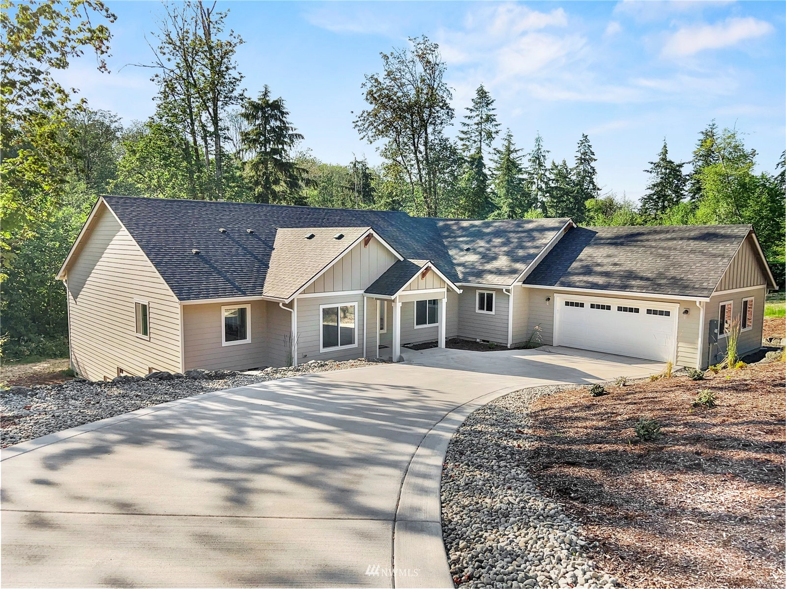 Glam & sophistication welcome you like a breath of fresh air in this newly built, single level on 5 peaceful, idyllic acres! Tucked 10 minutes from the Seattle fast ferry you will appreciate the attention to detail in every corner. Guaranteed to impress, this dazzling kitchen is the heart of the home. Gorgeous granite island, chef inspired appliances, ample walk-in pantry, craftsman finish work, built-ins, hardwood & gleaming subway tile, combine to complete luxury open living. Unwind in front of the custom design fireplace or lounge on the covered deck overlooking a private sanctuary. Formal & informal dining, separate office & generously sized bedrooms with roomy walk-ins & lavish laundry. Don't miss extra storage access under deck!
