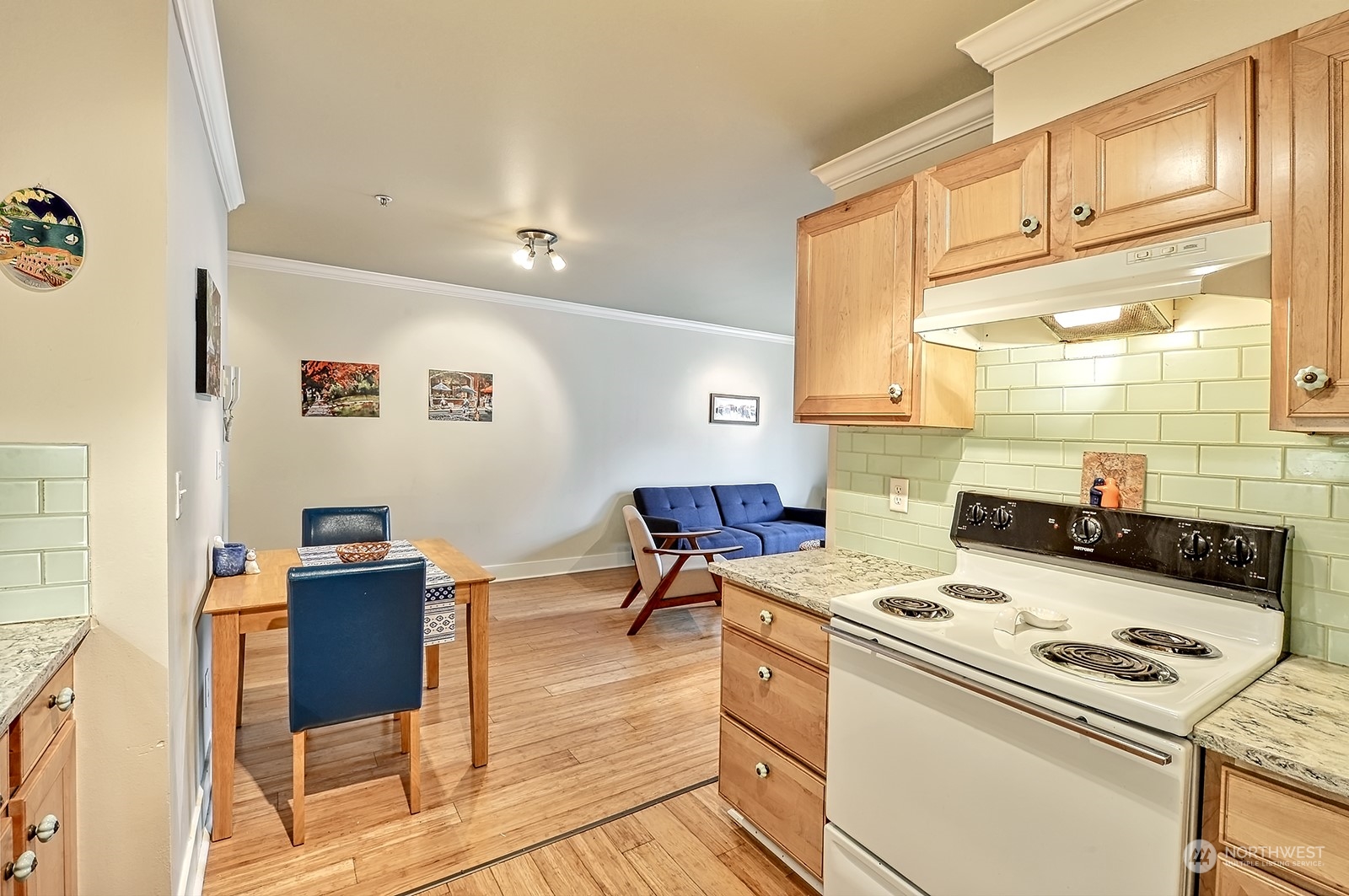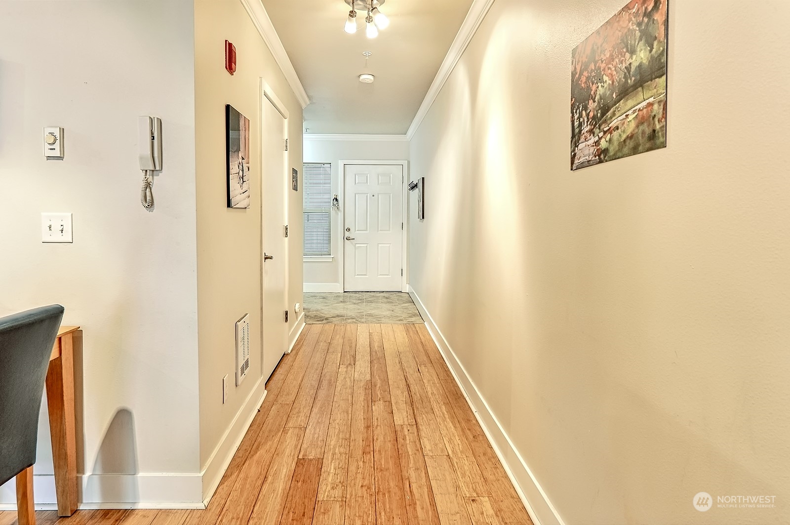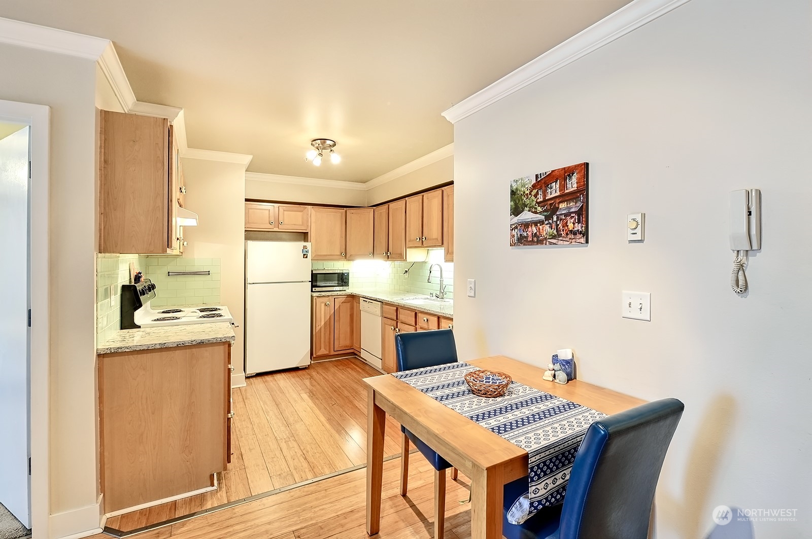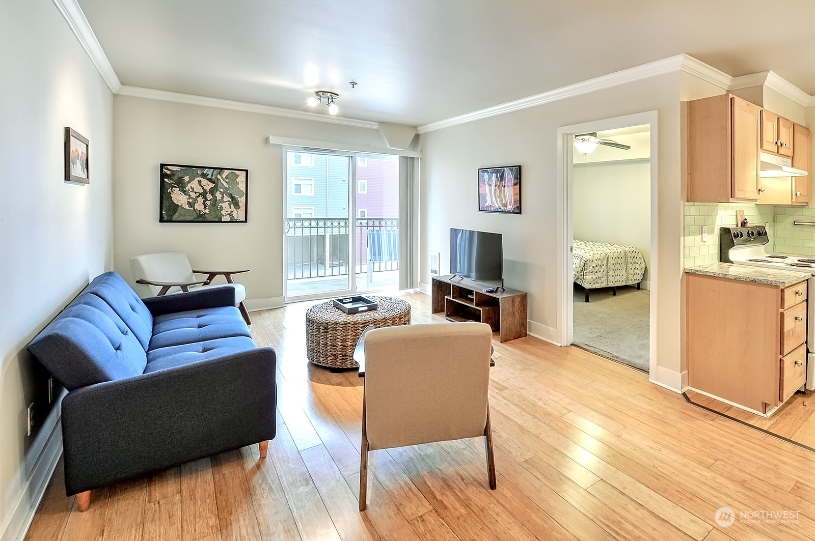 This bright and open condo is updated and ready for you! Located in the heart of Downtown Bellingham just steps away from Resturaunts, shops, trails and MORE. Sit on your private balcony and enjoy the sunsets or take a stroll to the South Bay Trail that connects to Boulevard Park. Featuring quartz countertops, bamboo flooring, Washer & Dryer in unit. Secure front entrance with zero steps to the elevator and into the unit and a secure parking garage with one reserved spot. This is a perfect opportunity for low maintenance living and or to add to your investment portfolio!