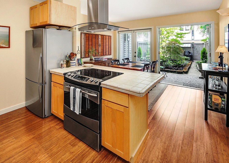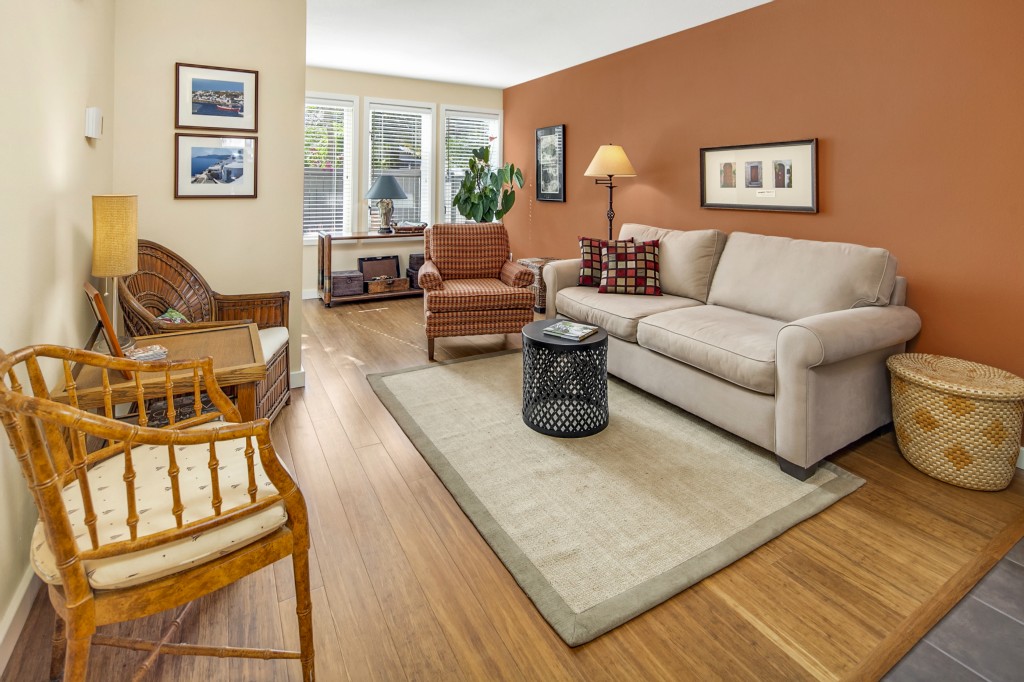 Easy flow spaces for indoor & outdoor living, entertaining & gardening. The level 1st floor boasts updated bamboo floors, designer paint, fireplace tile, millwork, ss appliances. New carpet & paint enhance stairway & 2nd flr. Both bdrms have vaulted ceilings & insulated windows. Also up, a full bath, small office + storage rm. Enjoy private front deck & back garden courtyard. 2 blocks to Madison Park shops, eateries & amenities. Close proximity to Downtown, universities, hospitals, and Eastside