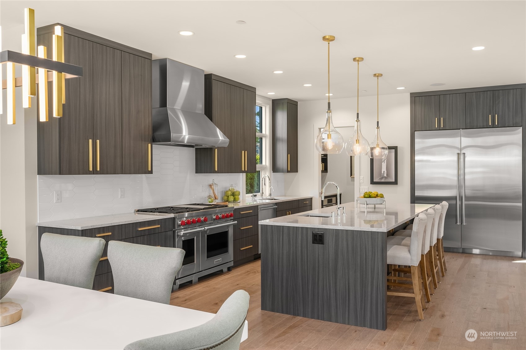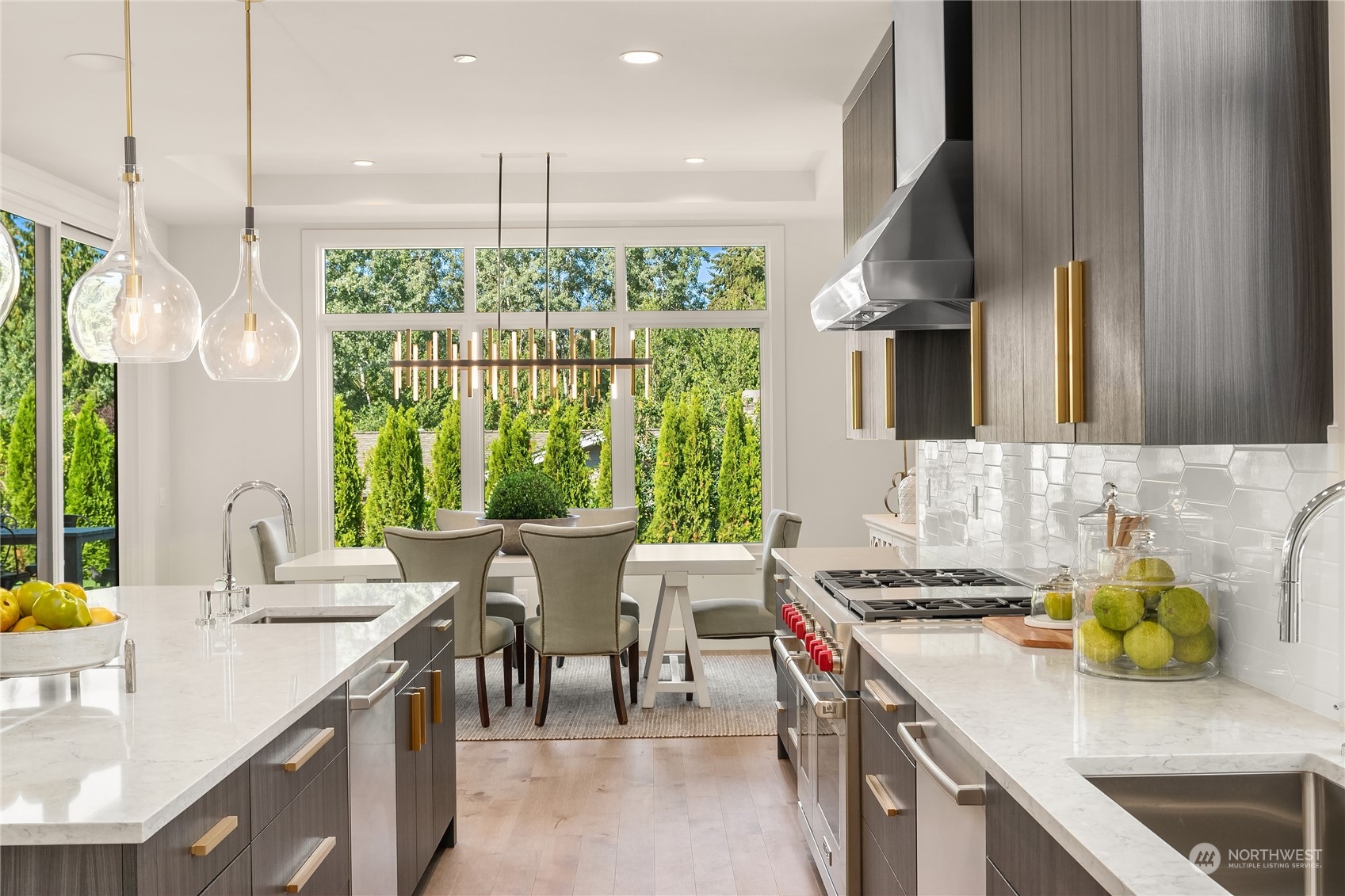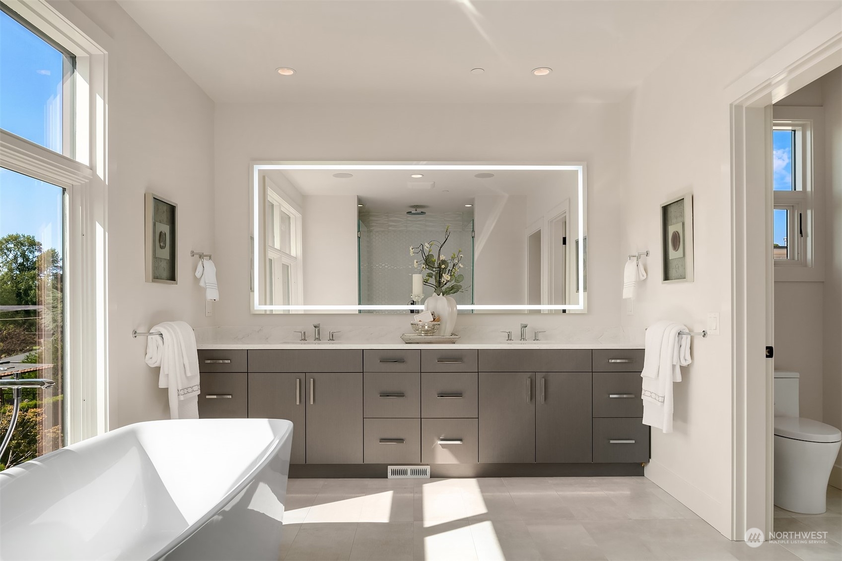 Newly refreshed price! Bordner Construction offers perfect balance of minimalism & luxury. Great street appeal & dramatic entry w/custom staircase sets a sophisticated, welcoming tone. An ideal floor plan w/great room out to the covered patio & flat yard. Custom cabinetry, Mirage floors, gorgeous stone & tile nestle high-end appliances making the kitchen artful & hardworking. Enjoy alfresco entertaining all year! Upstairs hosts bonus area & 4 ensuite bedrooms. The owner's suite is a dream w/fireplace, balcony, 2 closets, laundry & spa bath. The lower entertainment level is all about fun w/wine cellar, media, exercise & guest suite. Live in magical Medina, close to Seattle,Bellevue, parks & schools-an incredible value that lasts a lifetime!