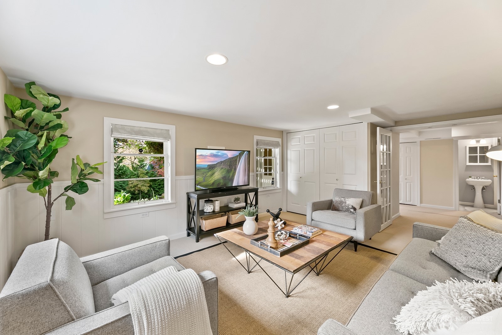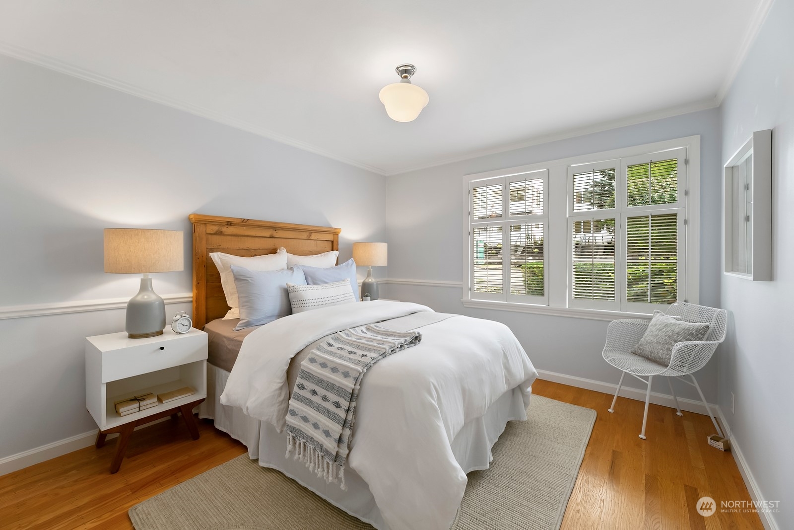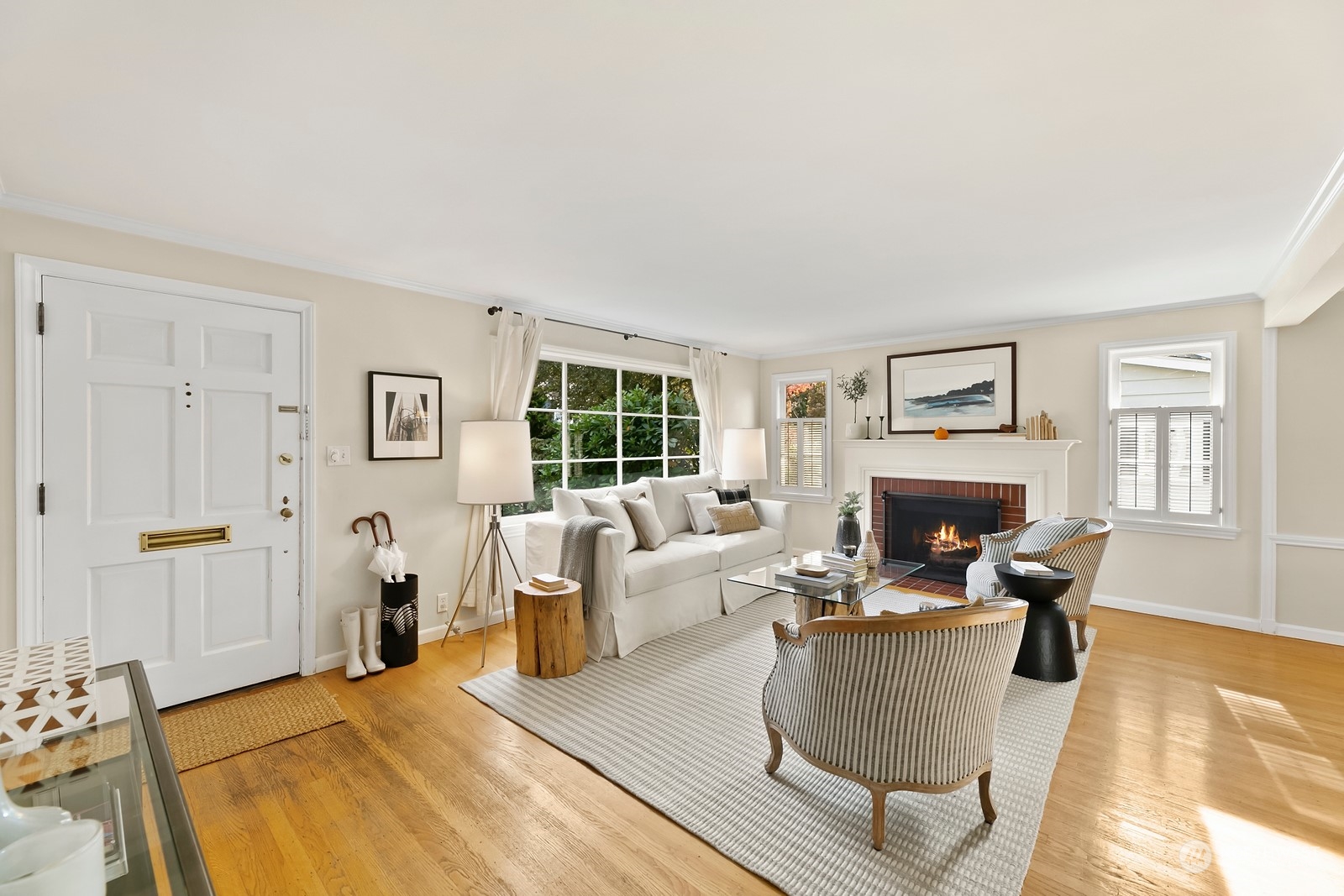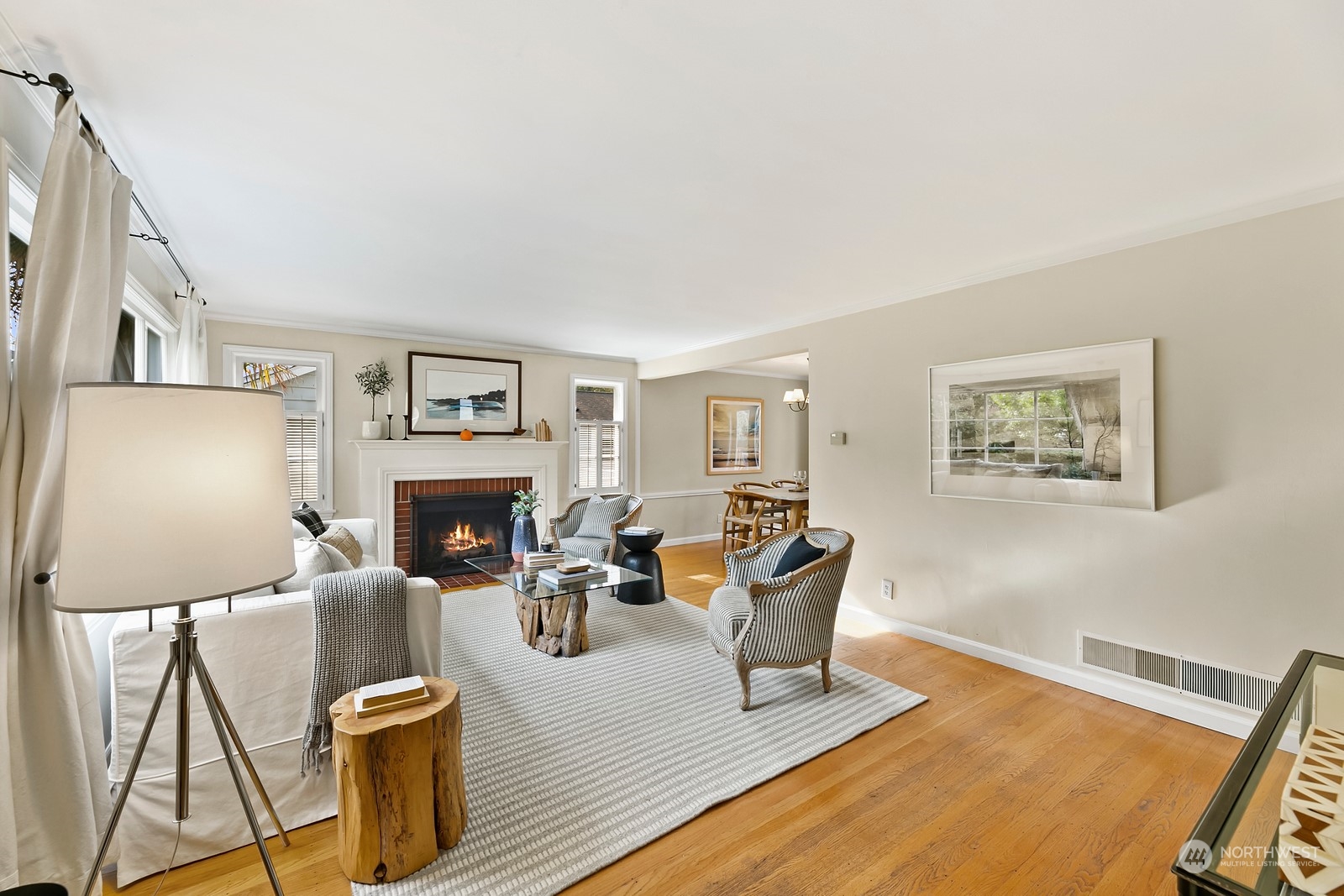 Charming, picturesque Cape Cod in sought-after Hawthorne Hills. Tons of natural light from oversized windows fills this meticulously maintained home. Entertaining circular main floor plan, living rm w/cozy wood burning fireplace, kitchen & dining rm opens to a large deck overlooking your magnificent park-like backyard complete with sprinkler system. Gleaming hardwoods, crown moldings, 2 bedrooms and 1 full bath on main floor, with an additional bedroom and bath on the lower level. Tons of storage including wall of built-in cabinets in the lower level. Freshly painted exterior and New Roof Fall '22. A perfect location w/easy access to UW, Burke Gilman Trail, U-Village, Children's Hospital, Met Market, Parks and top-rated schools.