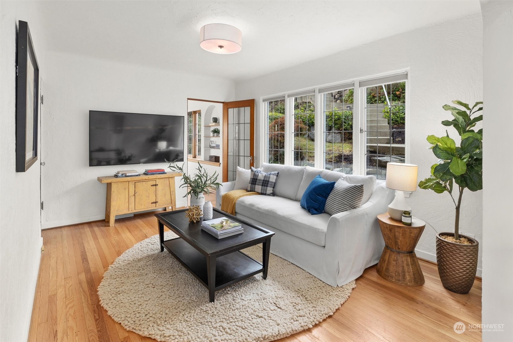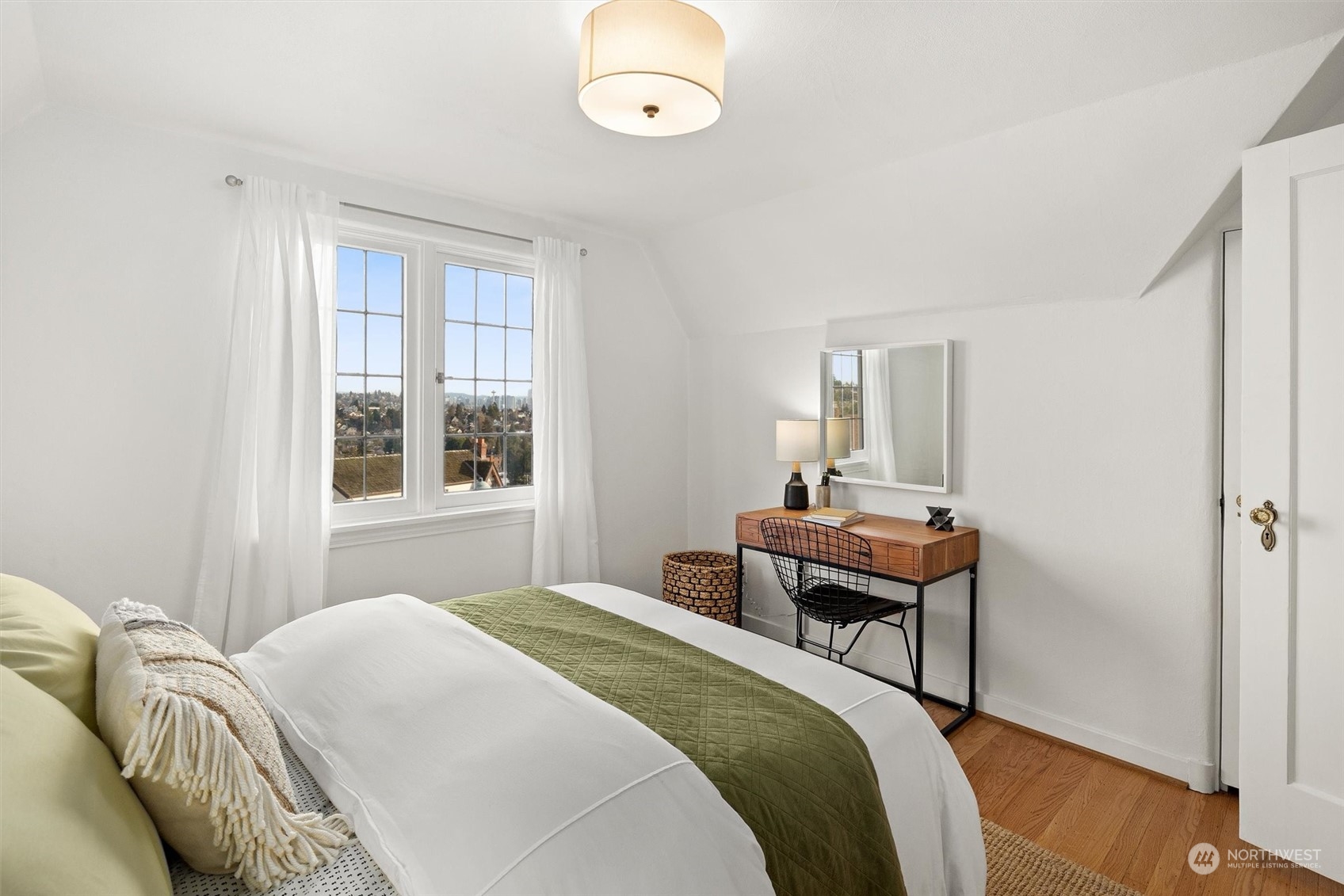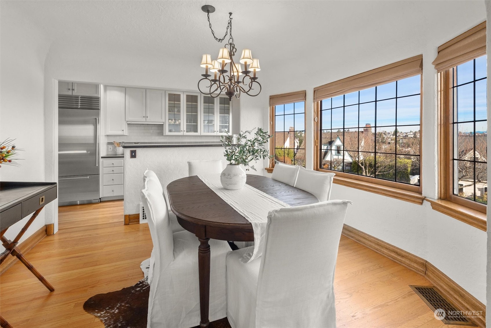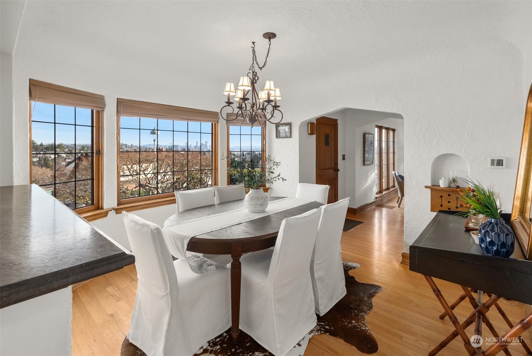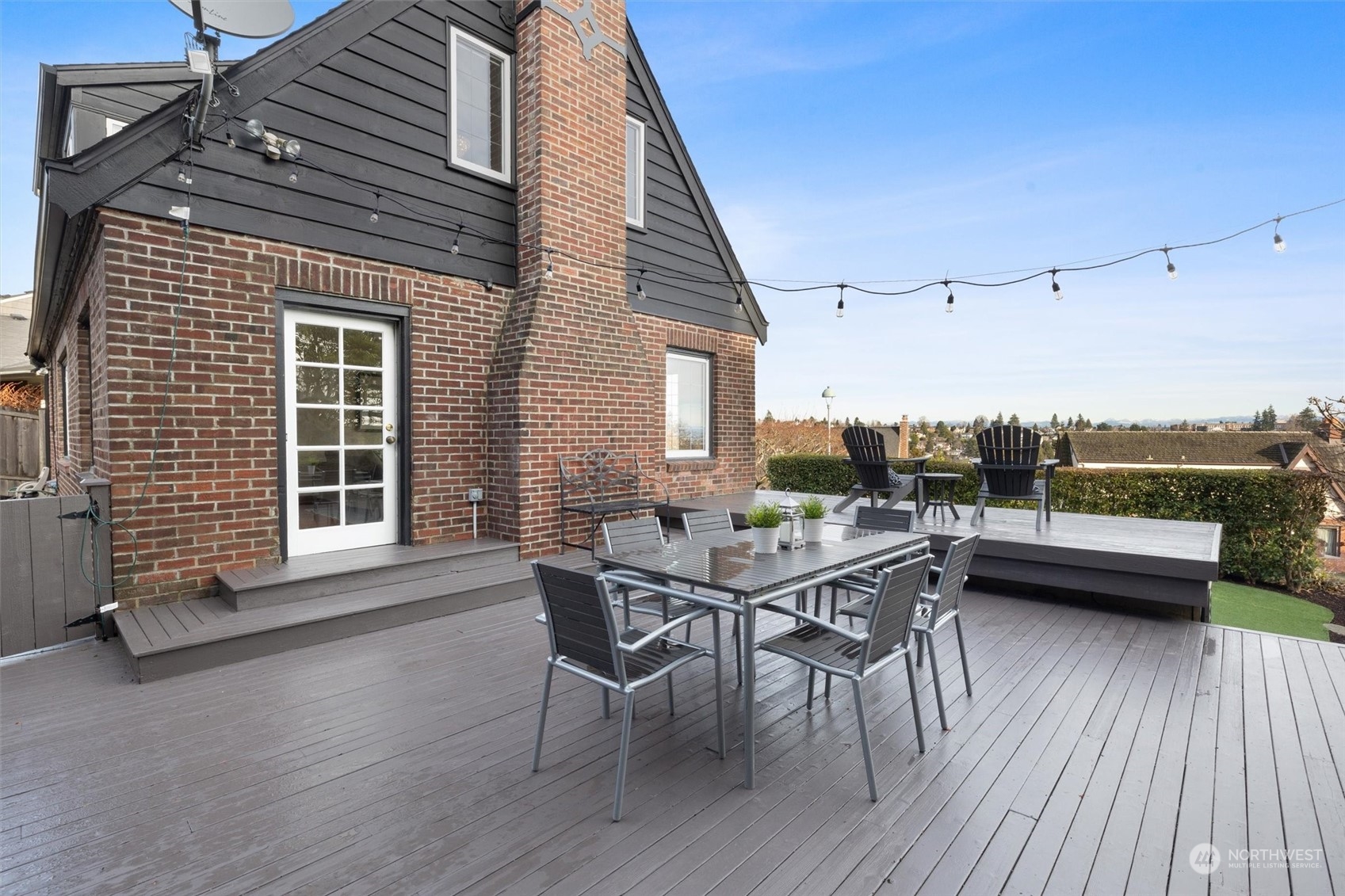 Perched on the crest of Magnolia's desirable west hill, this updated and charming tudor presents Seattle's finest views from almost every window. From the sunrise over the Cascades to the twinkling nighttime downtown lights, all four seasons offer a stunning backdrop. Coveted three bedrooms on the top floor with a large five-piece bath. Open kitchen with adjacent sitting room and generous living and dining room with period details in tact. Huge street to alley lot with potential for parking pad, sports court or separate view DADU. Rare large garage-fits an SUV! Carleton Park offers underground wires to take advantage of the stunning views in this area. Few short blocks to the village and minutes to downtown and SLU. Welcome home!
