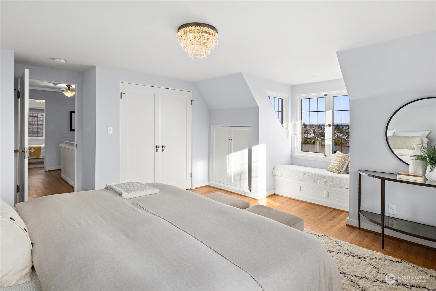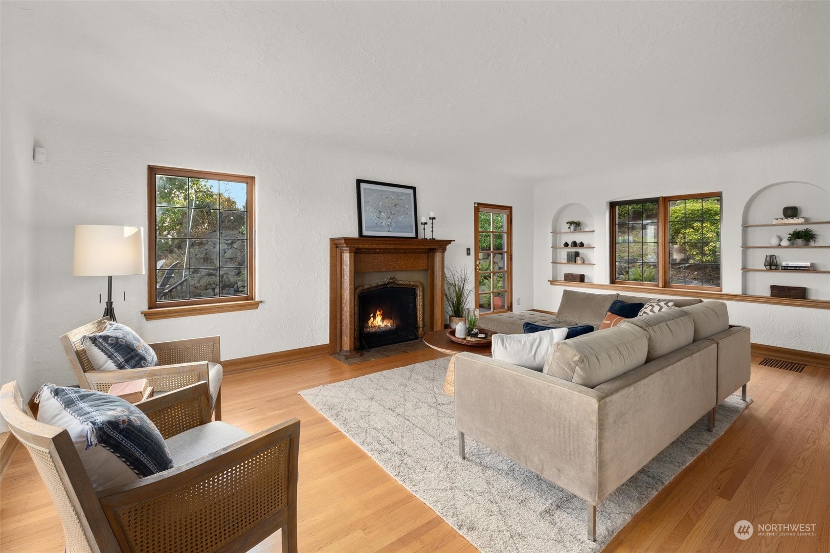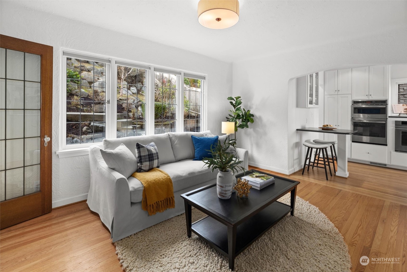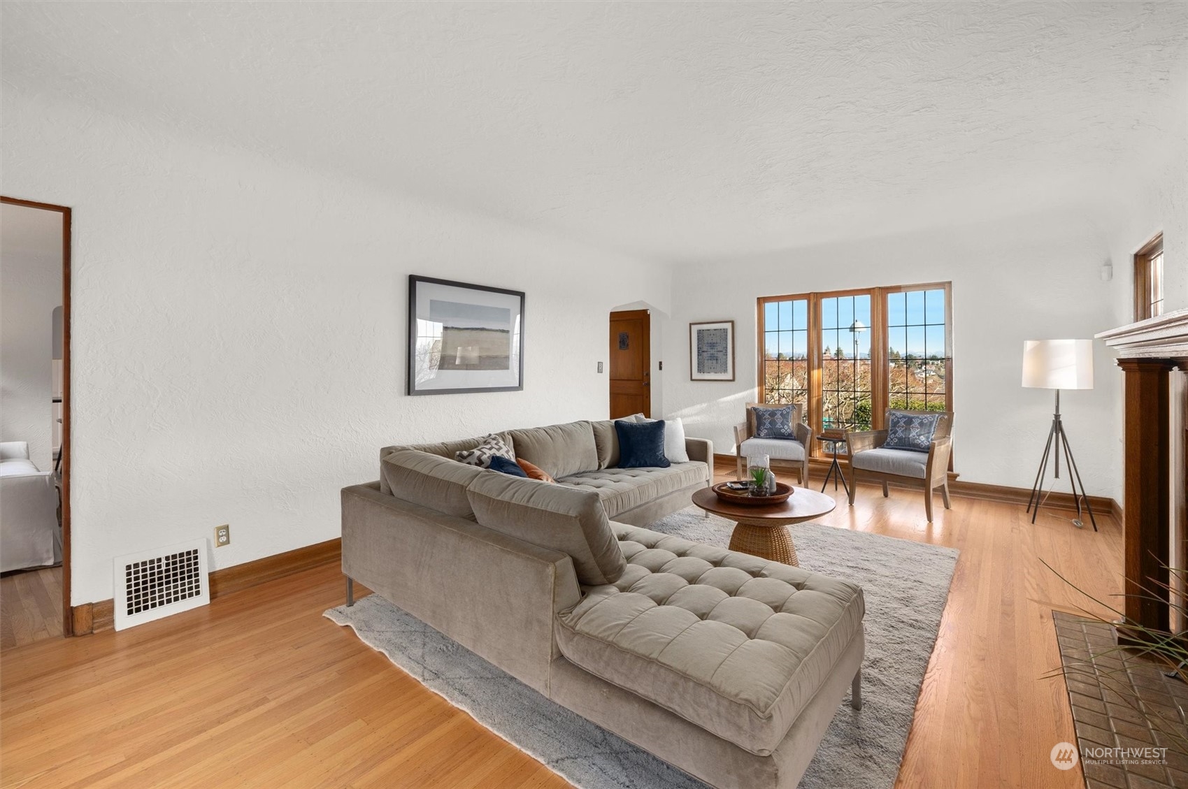 Perched on the crest of Magnolia's desirable west hill, this updated and charming tudor presents Seattle's finest views from almost every window. From the sunrise over the Cascades to the twinkling nighttime downtown lights, all four seasons offer a stunning backdrop. Coveted three bedrooms on the top floor with a large five-piece bath. Open kitchen with adjacent sitting room and generous living and dining room with period details in tact. Huge street to alley lot with potential for parking pad, sports court or separate view DADU. Rare large garage-fits an SUV! Carleton Park offers underground wires to take advantage of the stunning views in this area. Few short blocks to the village and minutes to downtown and SLU. Welcome home!