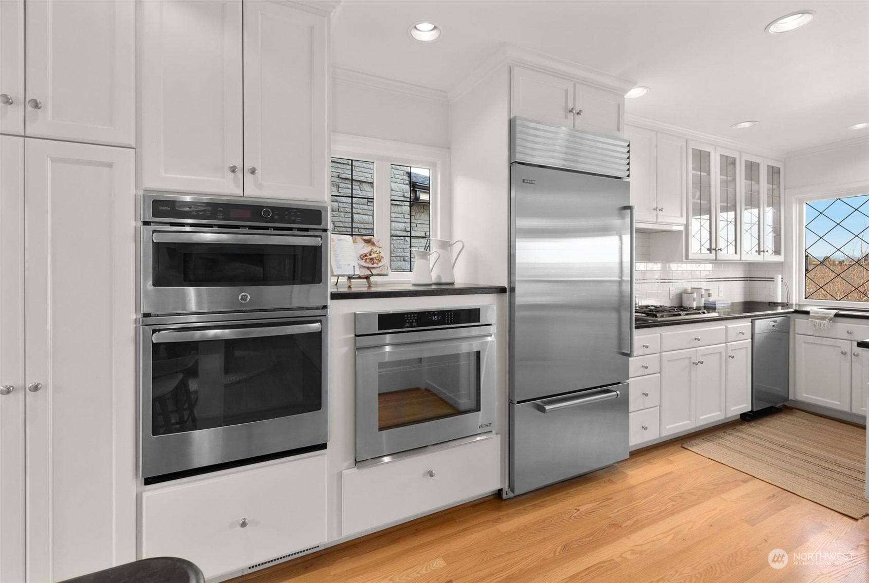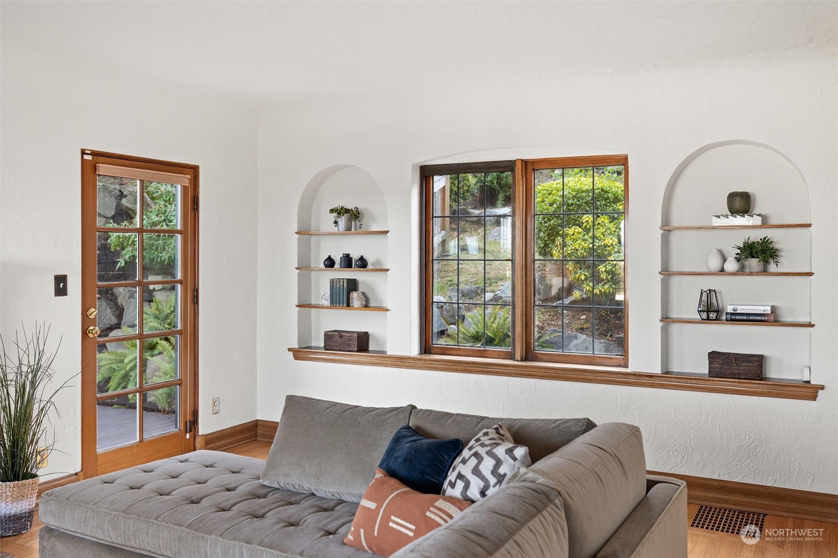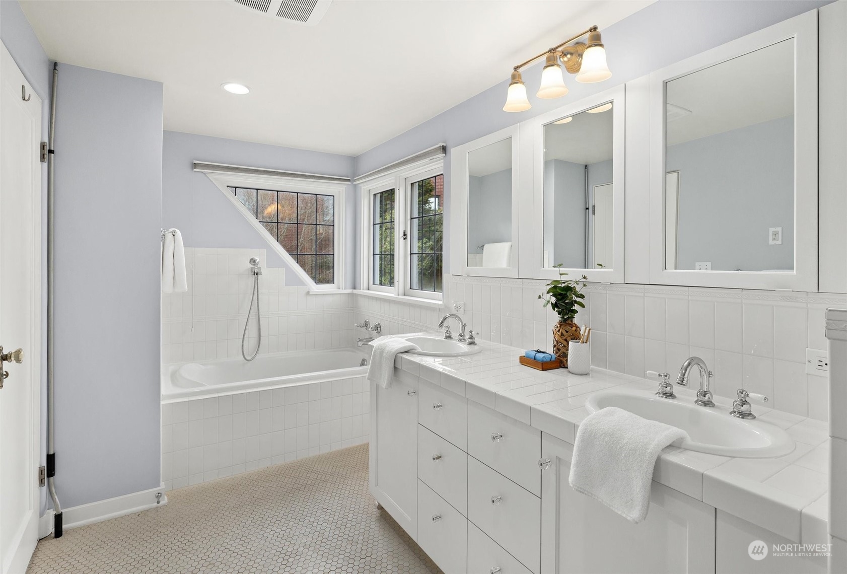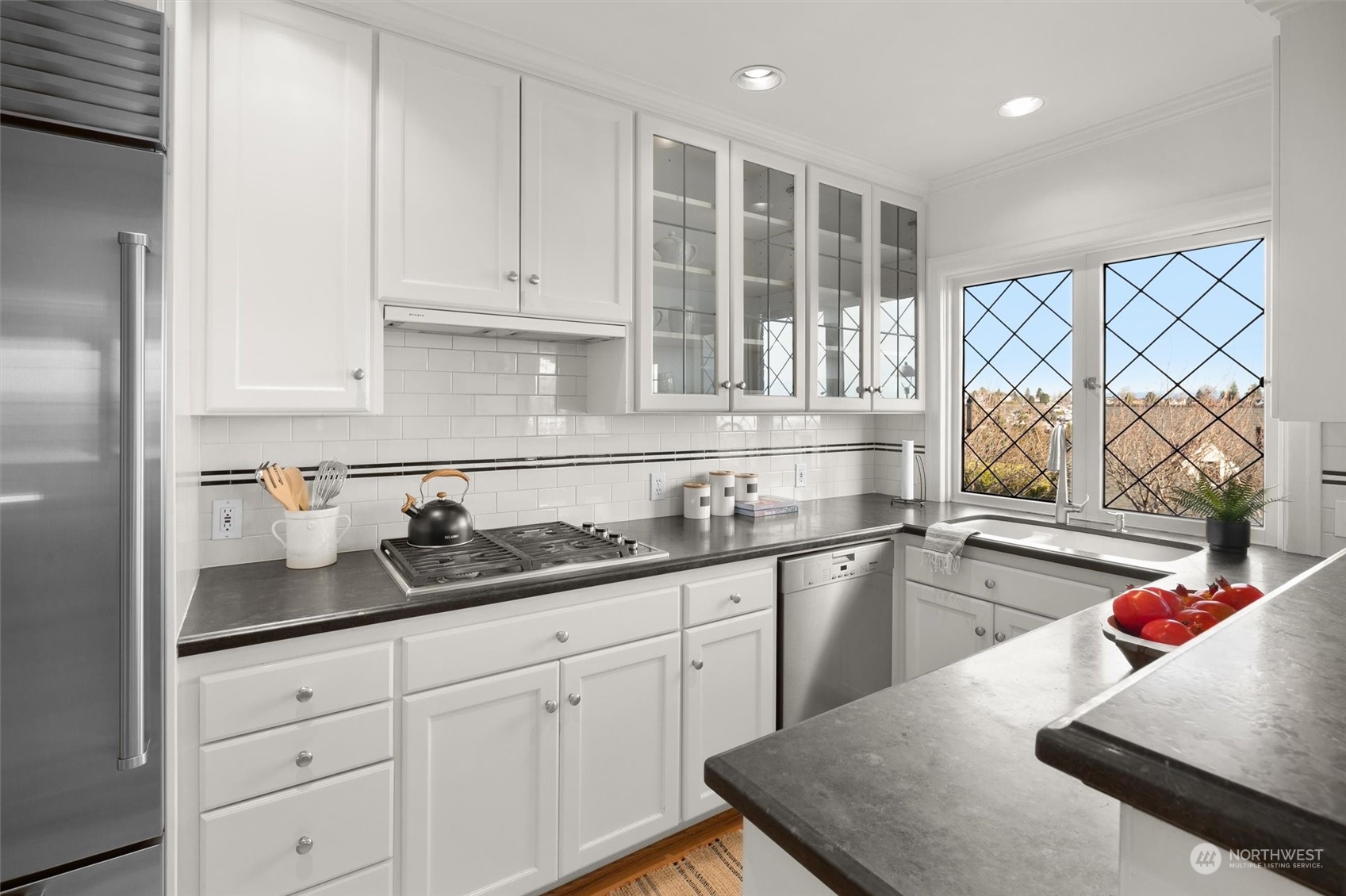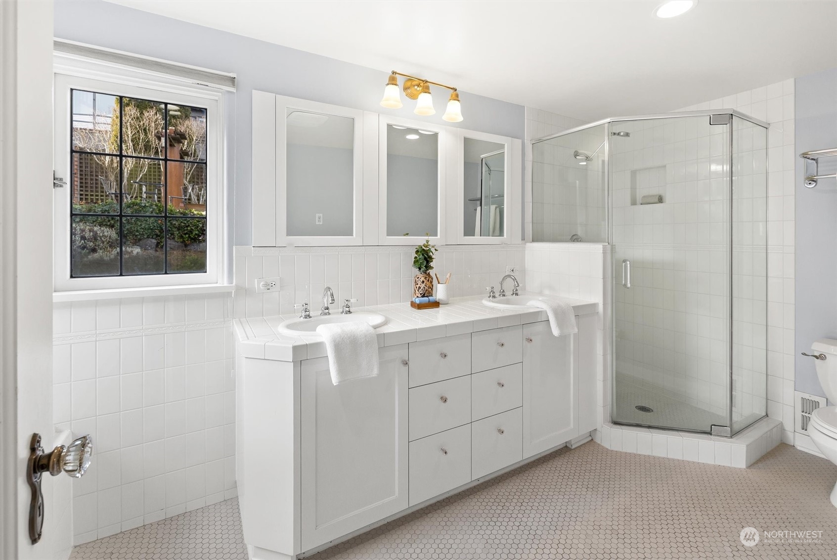 Perched on the crest of Magnolia's desirable west hill, this updated and charming tudor presents Seattle's finest views from almost every window. From the sunrise over the Cascades to the twinkling nighttime downtown lights, all four seasons offer a stunning backdrop. Coveted three bedrooms on the top floor with a large five-piece bath. Open kitchen with adjacent sitting room and generous living and dining room with period details in tact. Huge street to alley lot with potential for parking pad, sports court or separate view DADU. Rare large garage-fits an SUV! Carleton Park offers underground wires to take advantage of the stunning views in this area. Few short blocks to the village and minutes to downtown and SLU. Welcome home!