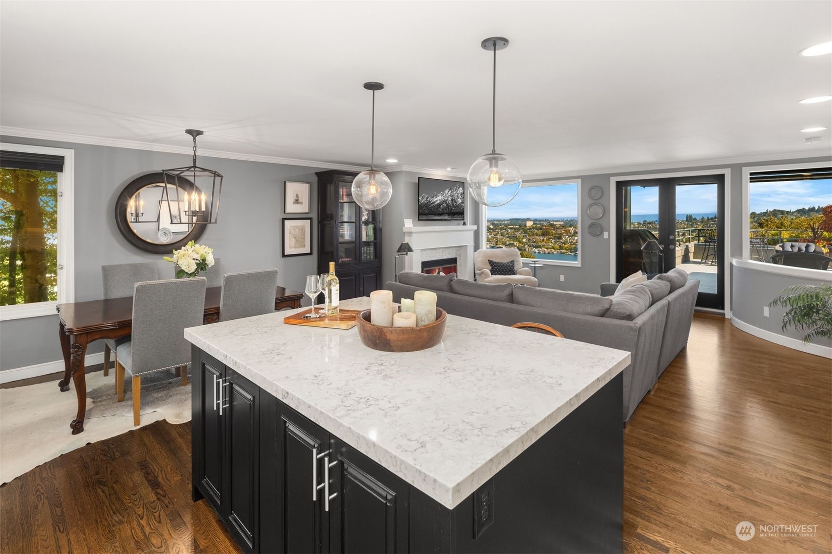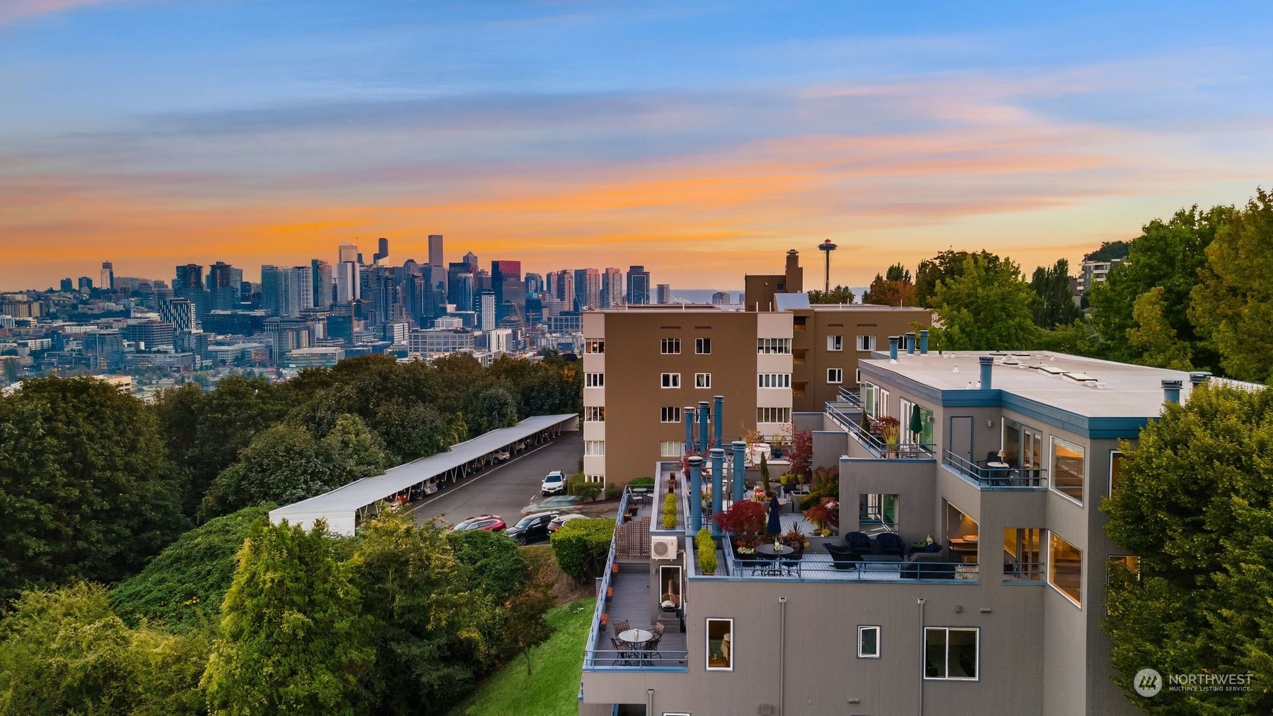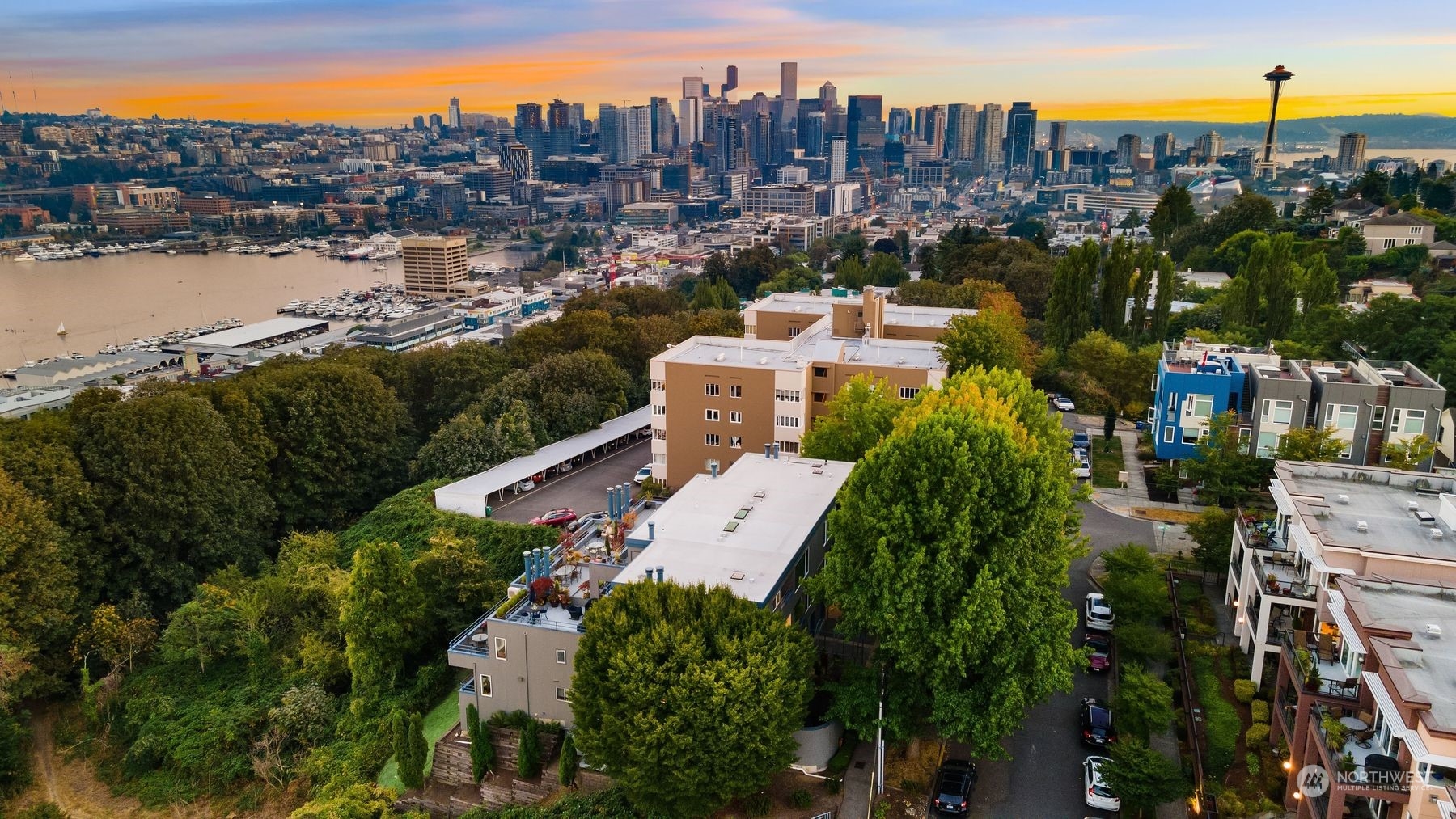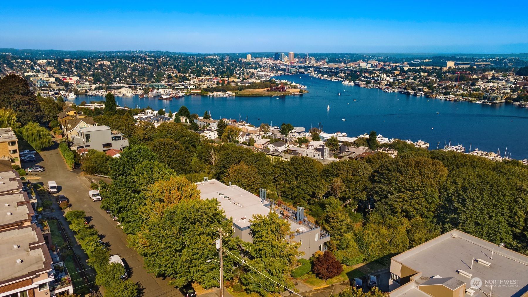 Actual panoramic city, mountain & water views frame this Queen Anne stunner! The perfect pied-à -terre! Sited atop the hill,3 levels unfold w/ inspired indoor/outdoor living spaces. Living,dining & kitchen intermingle on the main w/ a generous view deck—watch sailboats bob in the distance as seaplanes gently glide across the lake. Kitchen: designer appliances, quartz counters & sparkling subway tile recently remodeled. 3rd level is dedicated as the primary suite+office nook & built-in's.Multiple balconies welcome a fresh breeze in. Lower level:bedroom+private lanai, full bath, laundry & the main entry. City life unfolds+the best of QA & South Lake Union at your doorstep! 1 car garage+1 secured underground parking/storage.