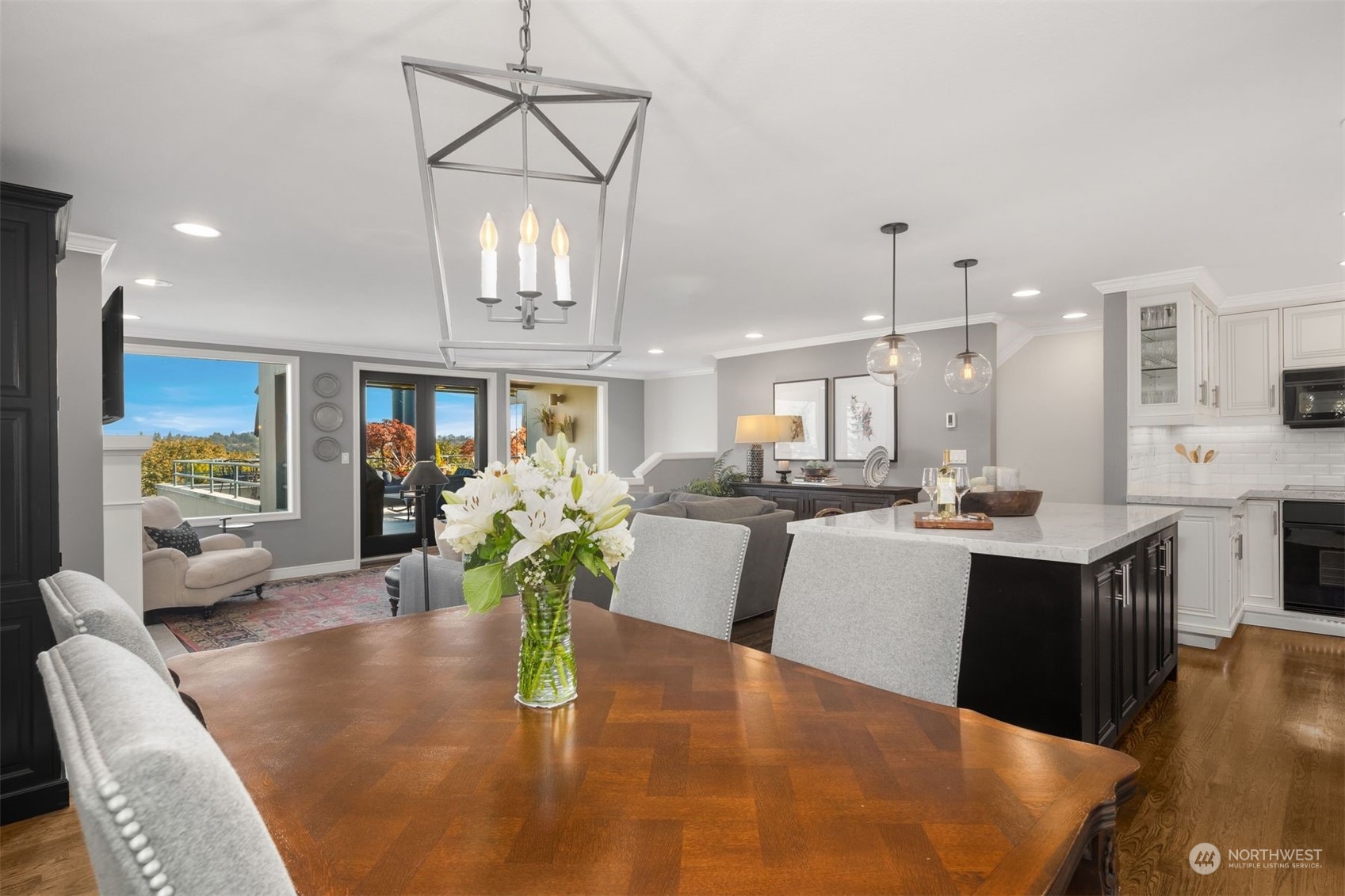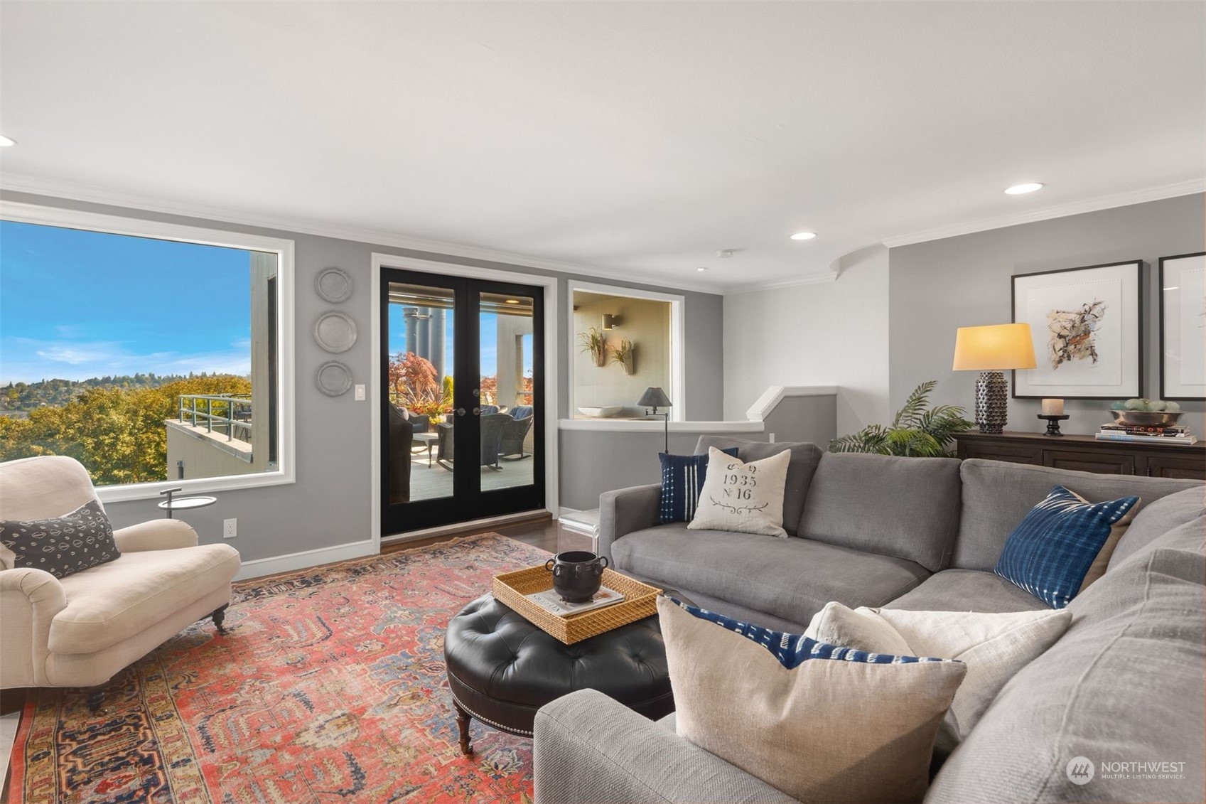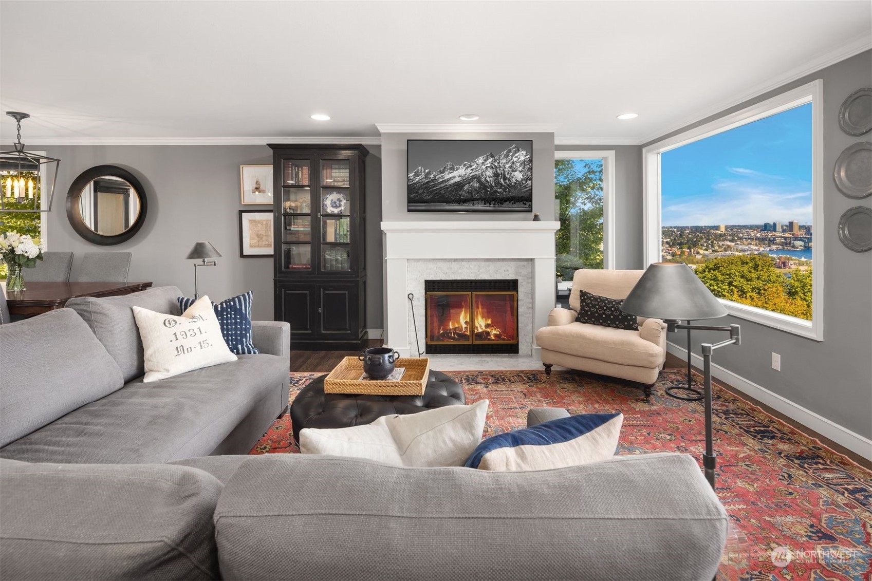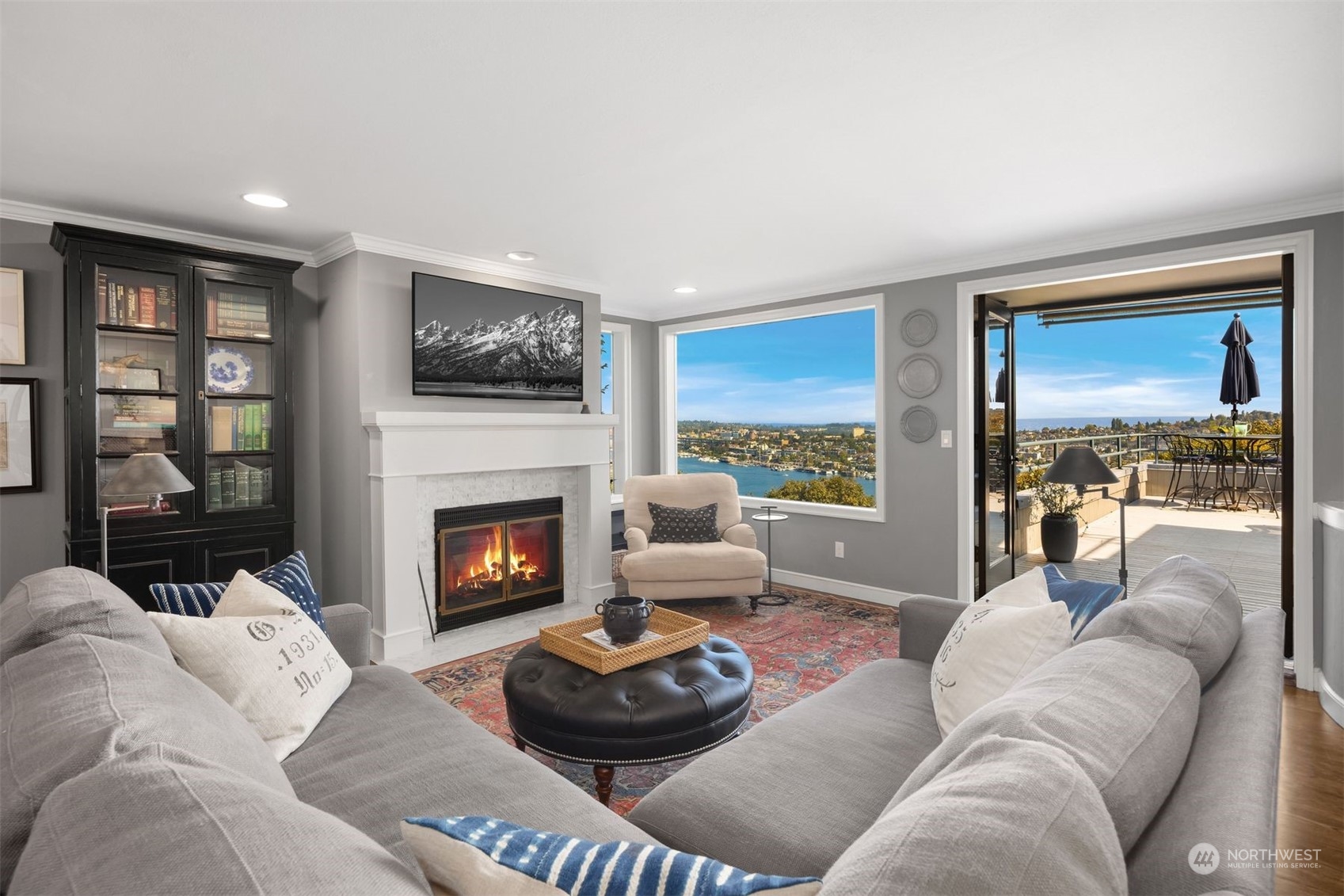 Actual panoramic city, mountain & water views frame this Queen Anne stunner! The perfect pied-à -terre! Sited atop the hill,3 levels unfold w/ inspired indoor/outdoor living spaces. Living,dining & kitchen intermingle on the main w/ a generous view deck—watch sailboats bob in the distance as seaplanes gently glide across the lake. Kitchen: designer appliances, quartz counters & sparkling subway tile recently remodeled. 3rd level is dedicated as the primary suite+office nook & built-in's.Multiple balconies welcome a fresh breeze in. Lower level:bedroom+private lanai, full bath, laundry & the main entry. City life unfolds+the best of QA & South Lake Union at your doorstep! 1 car garage+1 secured underground parking/storage.