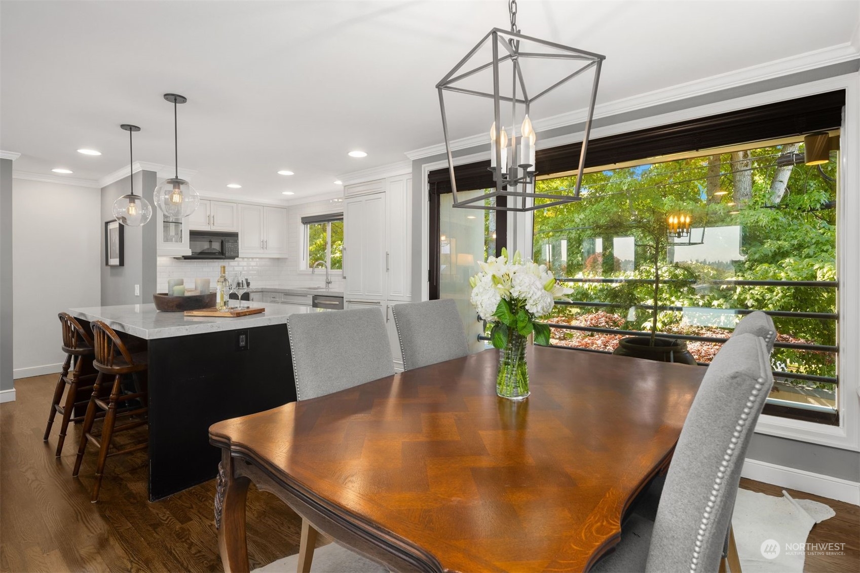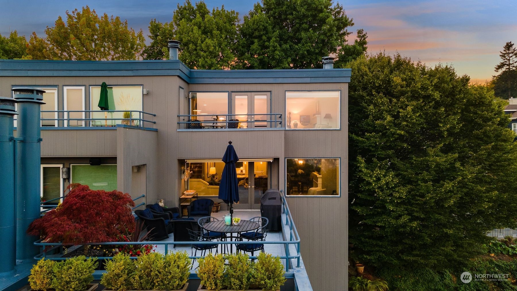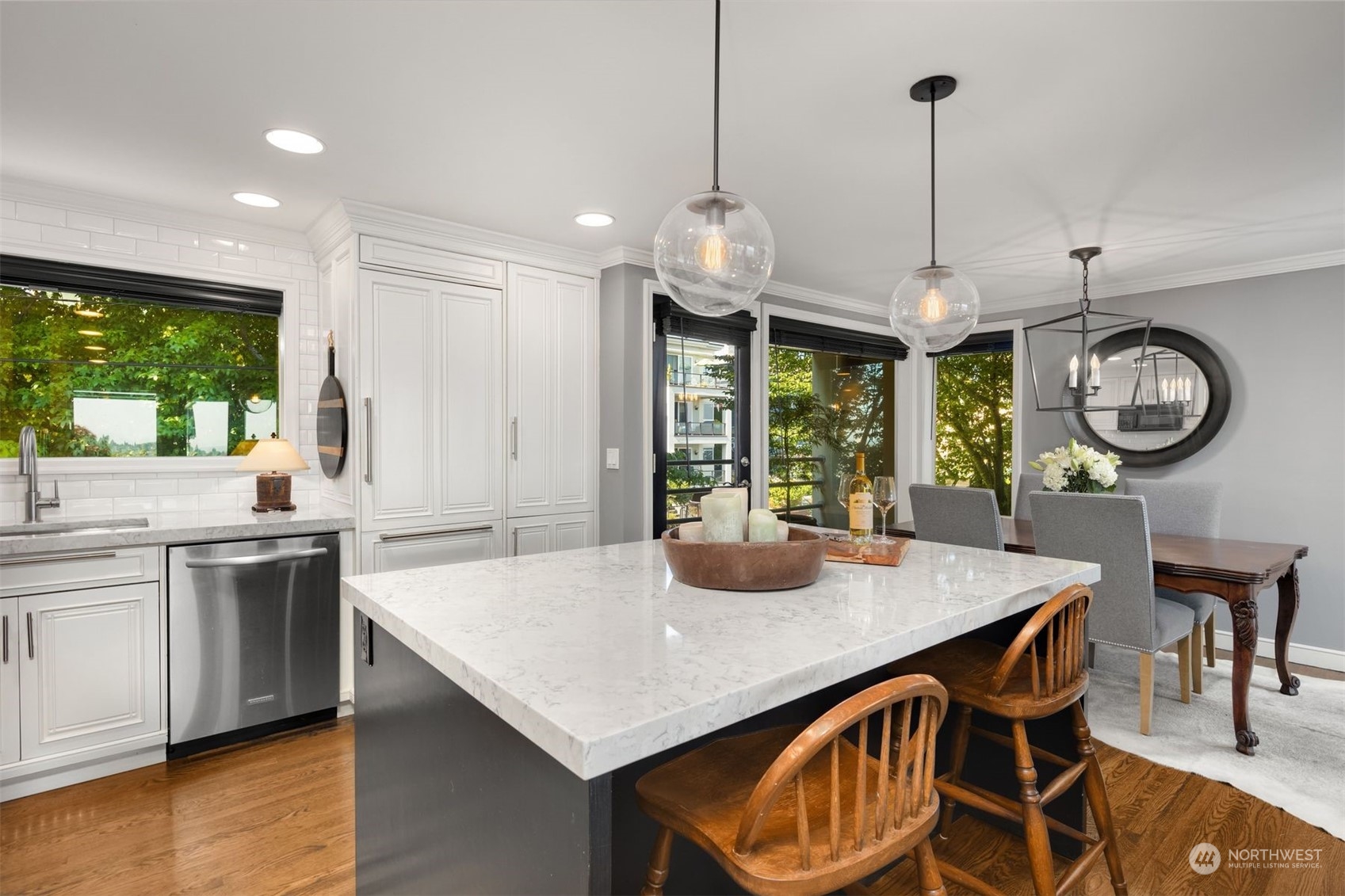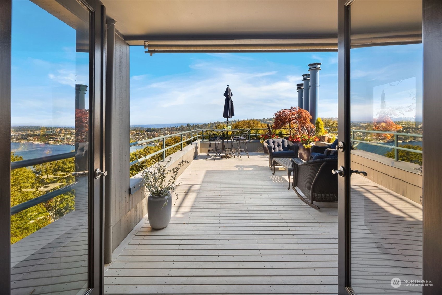 Actual panoramic city, mountain & water views frame this Queen Anne stunner! The perfect pied-à -terre! Sited atop the hill,3 levels unfold w/ inspired indoor/outdoor living spaces. Living,dining & kitchen intermingle on the main w/ a generous view deck—watch sailboats bob in the distance as seaplanes gently glide across the lake. Kitchen: designer appliances, quartz counters & sparkling subway tile recently remodeled. 3rd level is dedicated as the primary suite+office nook & built-in's.Multiple balconies welcome a fresh breeze in. Lower level:bedroom+private lanai, full bath, laundry & the main entry. City life unfolds+the best of QA & South Lake Union at your doorstep! 1 car garage+1 secured underground parking/storage.