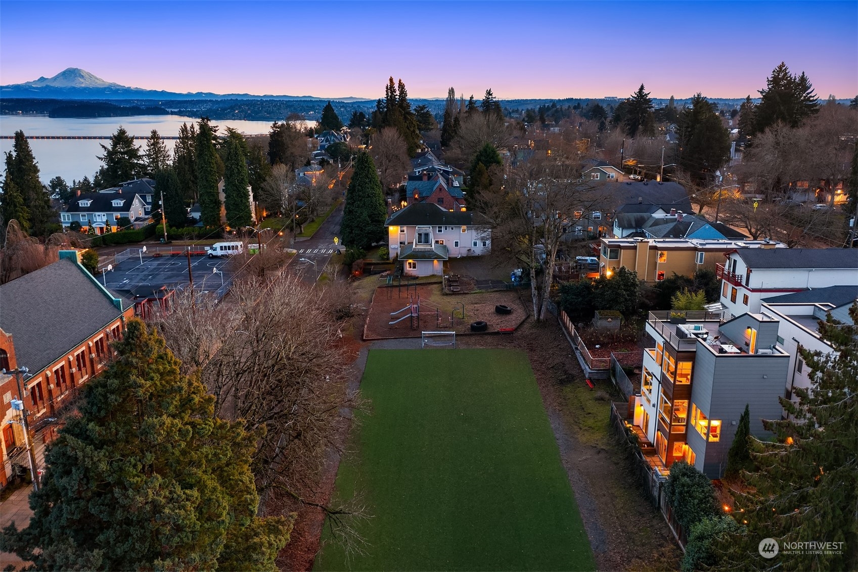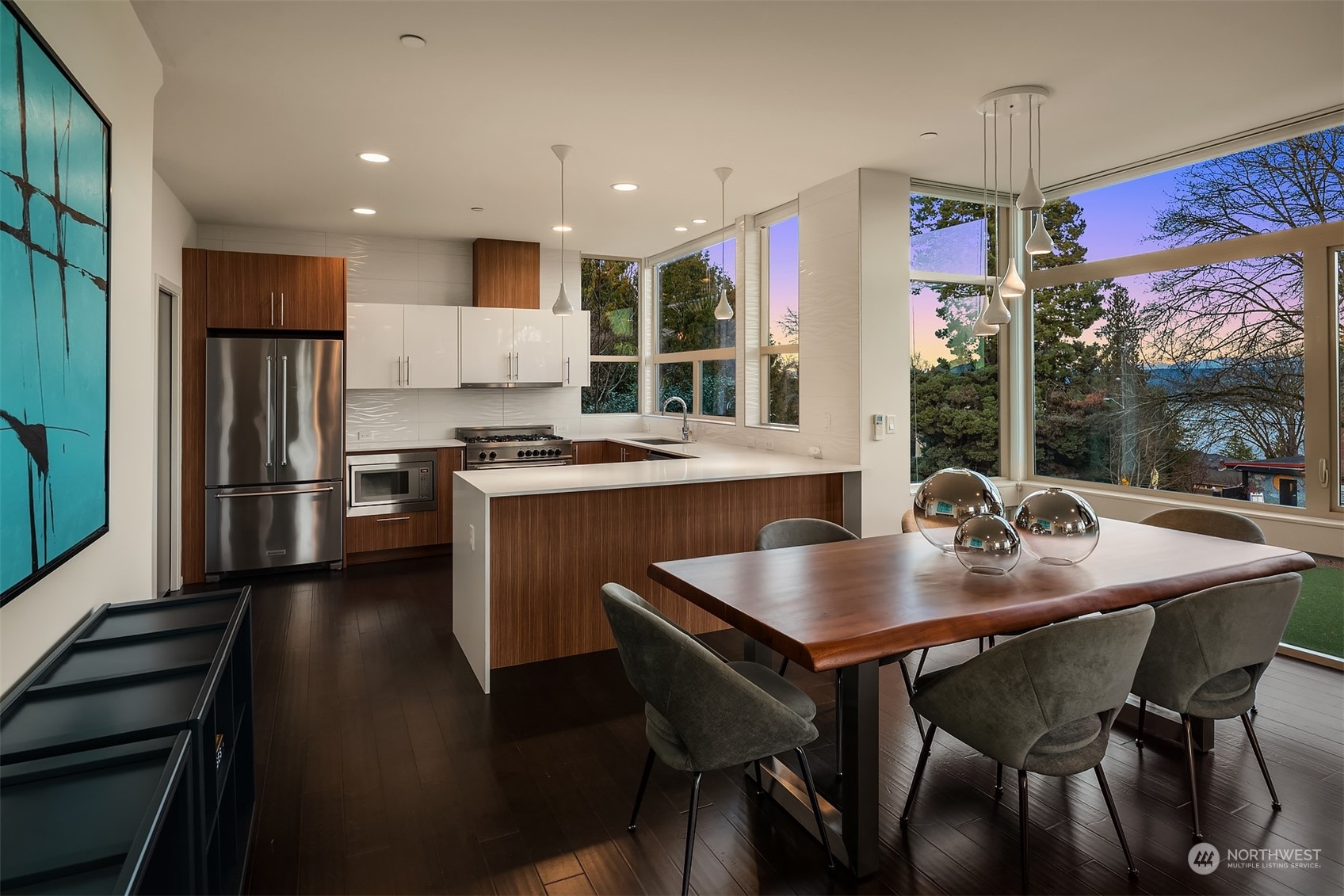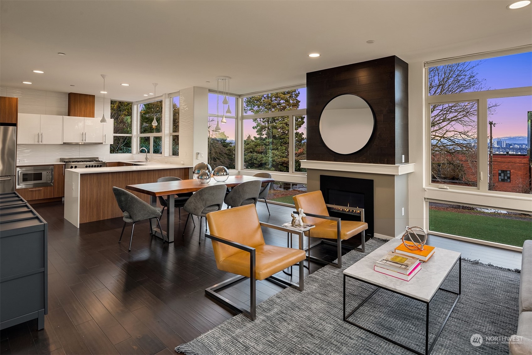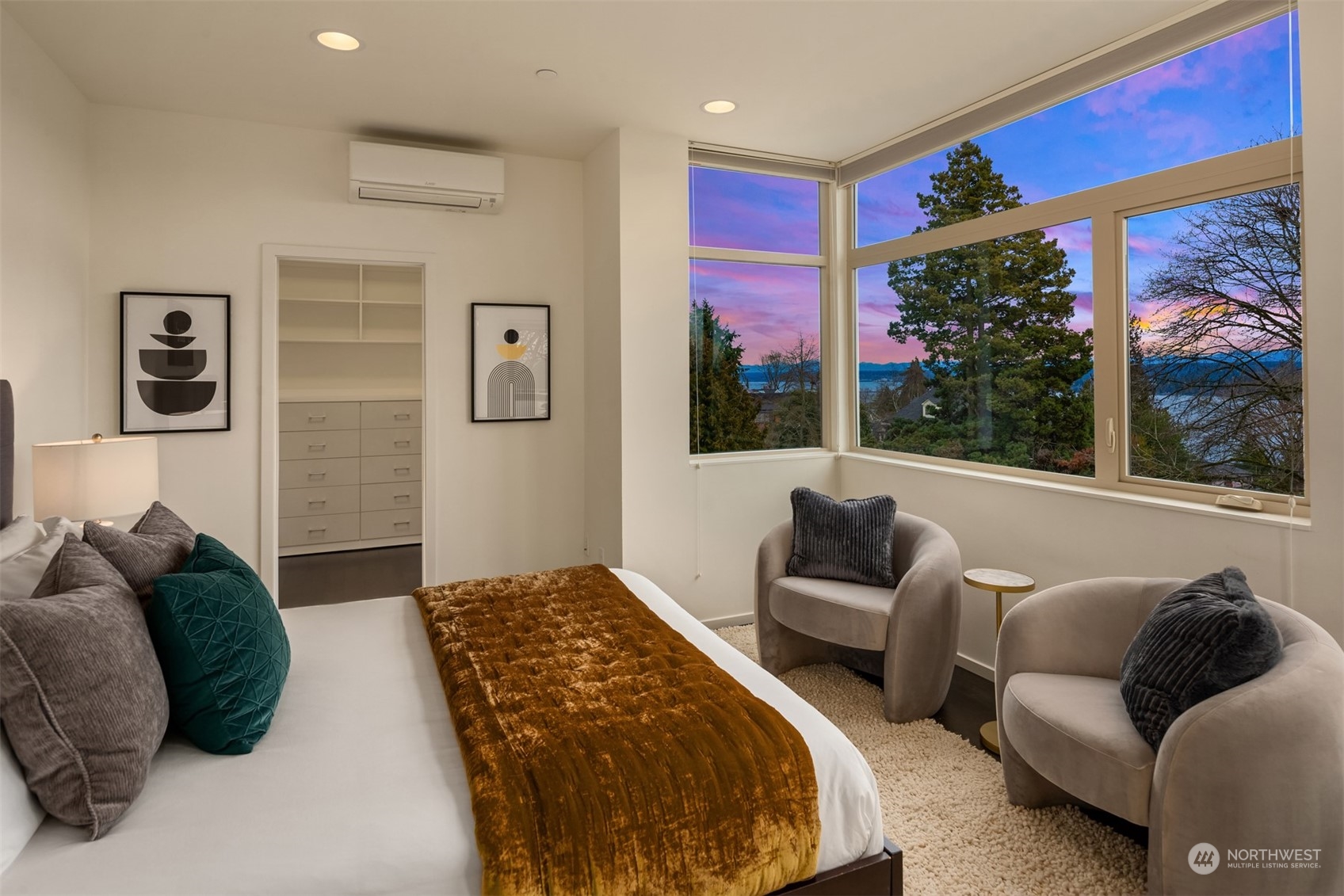Stunning Madrona home showcases modern architecture spreading over four levels of indoor/outdoor living space. Open-concept main living level boasts richly hued flooring, custom metalwork, soaring ceilings + fireplace. Beautiful euro-style cabinets highlight sleek chef’s kitchen with high-end appliances, pantry + large island. Two bedrooms, bonus room, bath are found on lower level. Great set-up for home office w/ access to patio. Retreat in luxury to the primary suite on third level with its spa-like bath, private balcony + oversized walk-in closet. A rooftop deck with lake + mountain views make this home an entertainer’s paradise. Tree-lined neighborhood with adjacent park land. Dedicated parking space + close to refined dining, shopping.