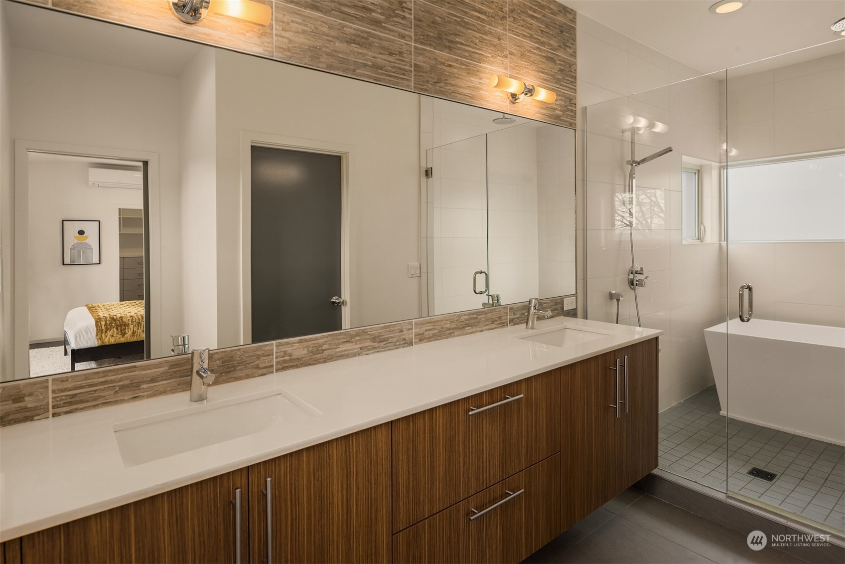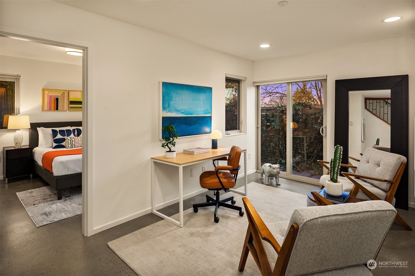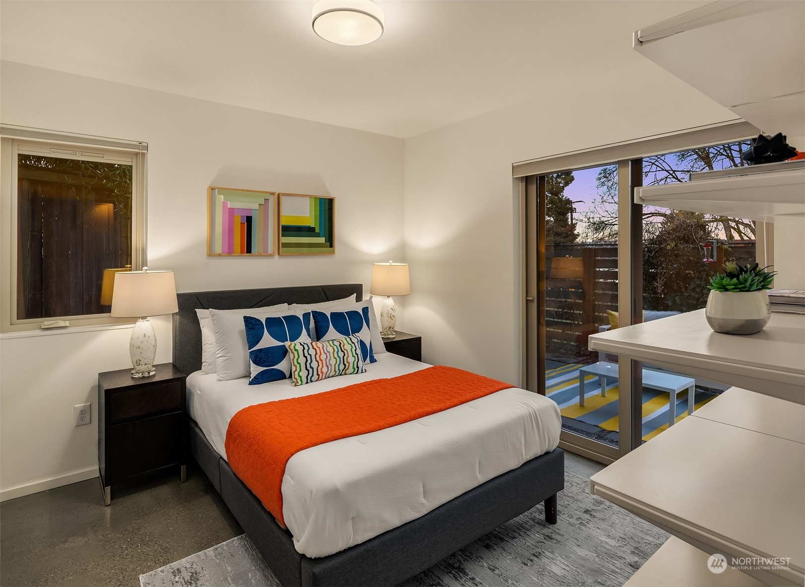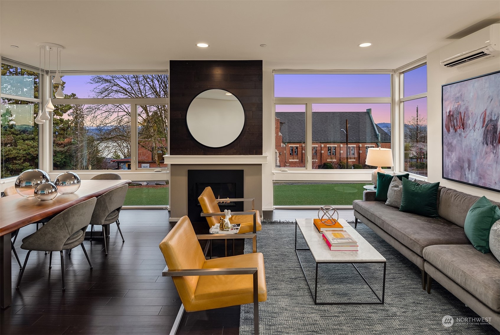 Stunning Madrona home showcases modern architecture spreading over four levels of indoor/outdoor living space. Open-concept main living level boasts richly hued flooring, custom metalwork, soaring ceilings + fireplace. Beautiful euro-style cabinets highlight sleek chef’s kitchen with high-end appliances, pantry + large island. Two bedrooms, bonus room, bath are found on lower level. Great set-up for home office w/ access to patio. Retreat in luxury to the primary suite on third level with its spa-like bath, private balcony + oversized walk-in closet. A rooftop deck with lake + mountain views make this home an entertainer’s paradise. Tree-lined neighborhood with adjacent park land. Dedicated parking space + close to refined dining, shopping.