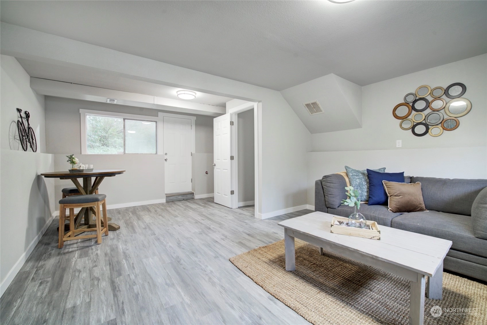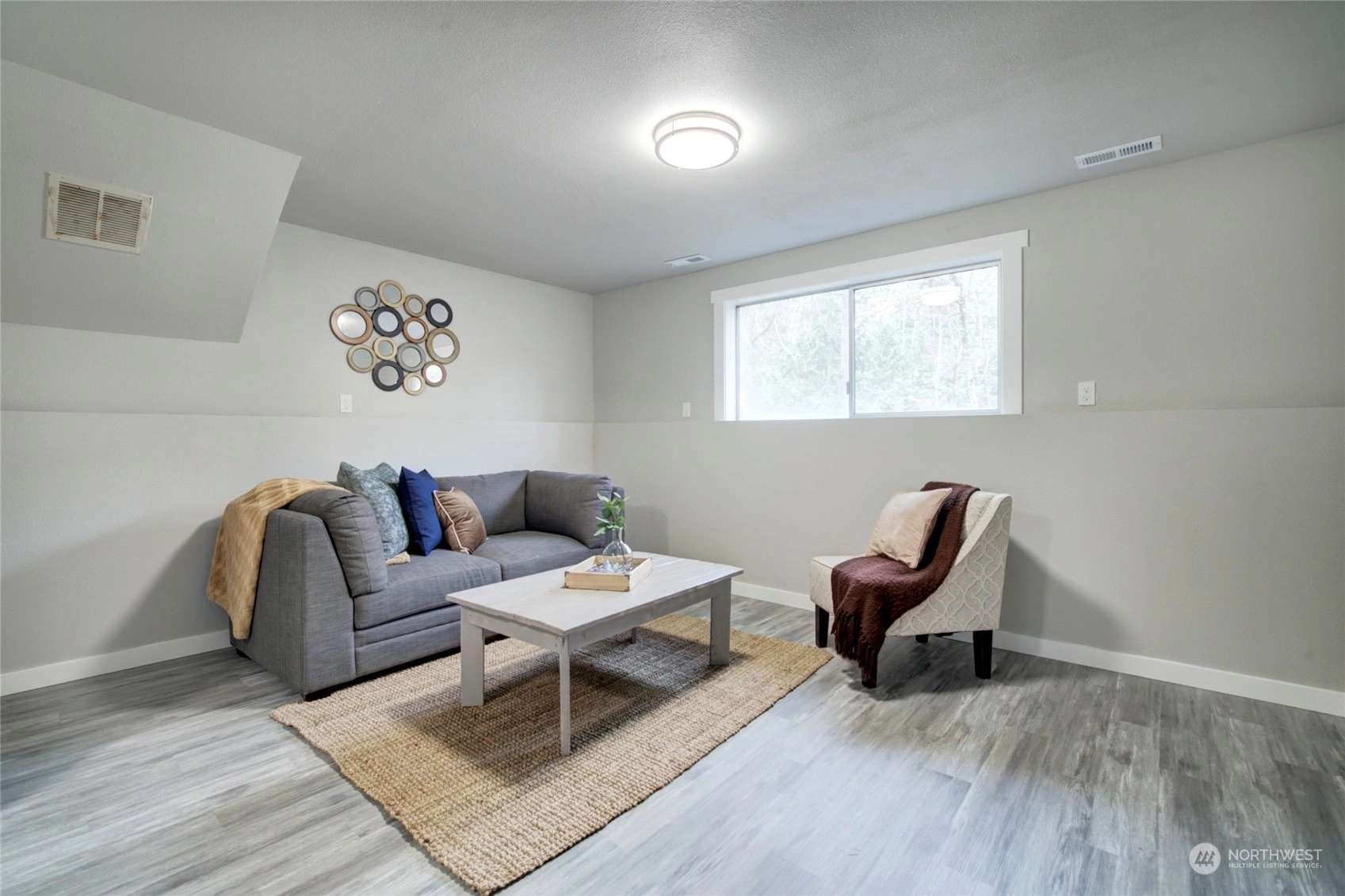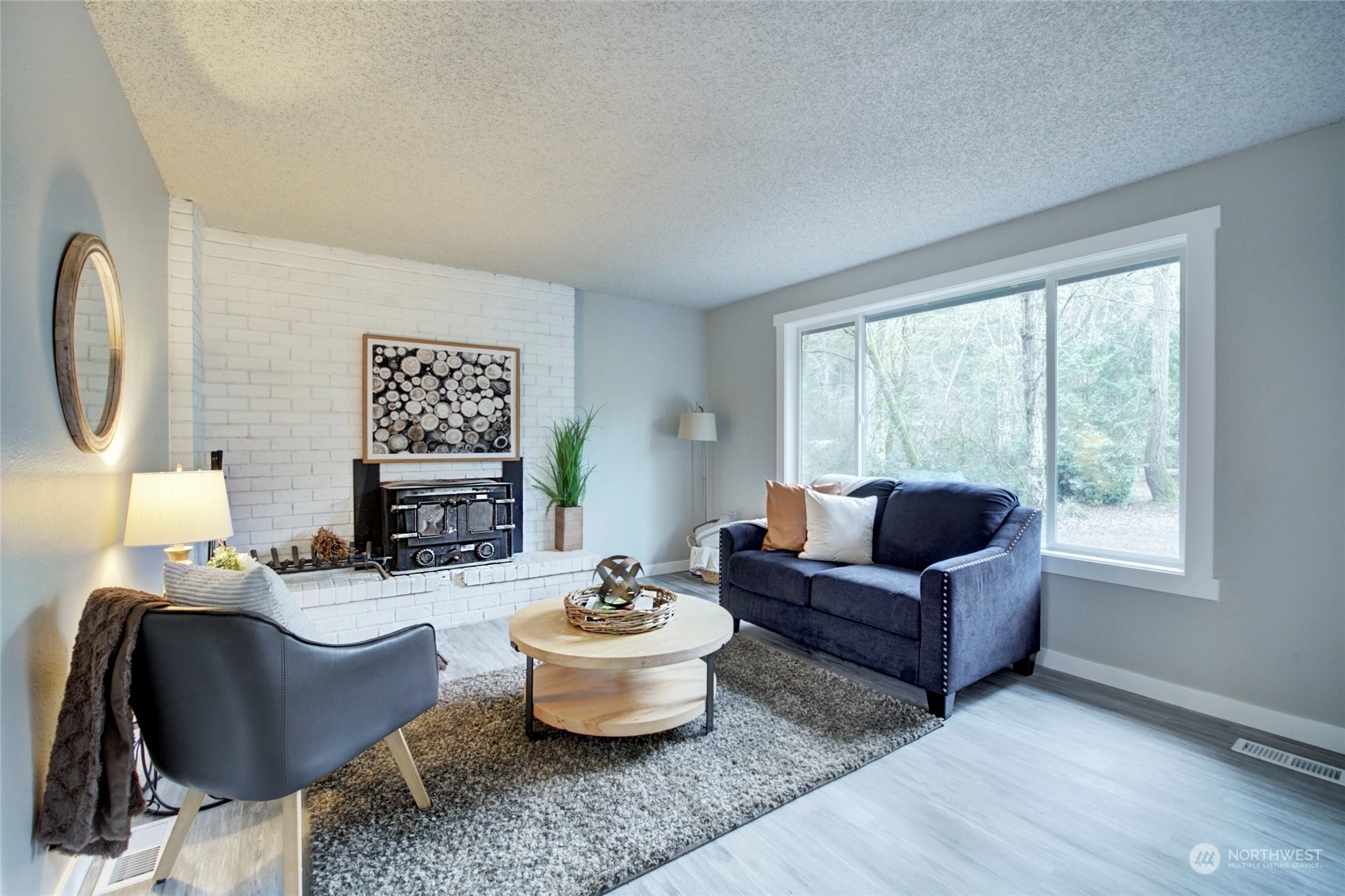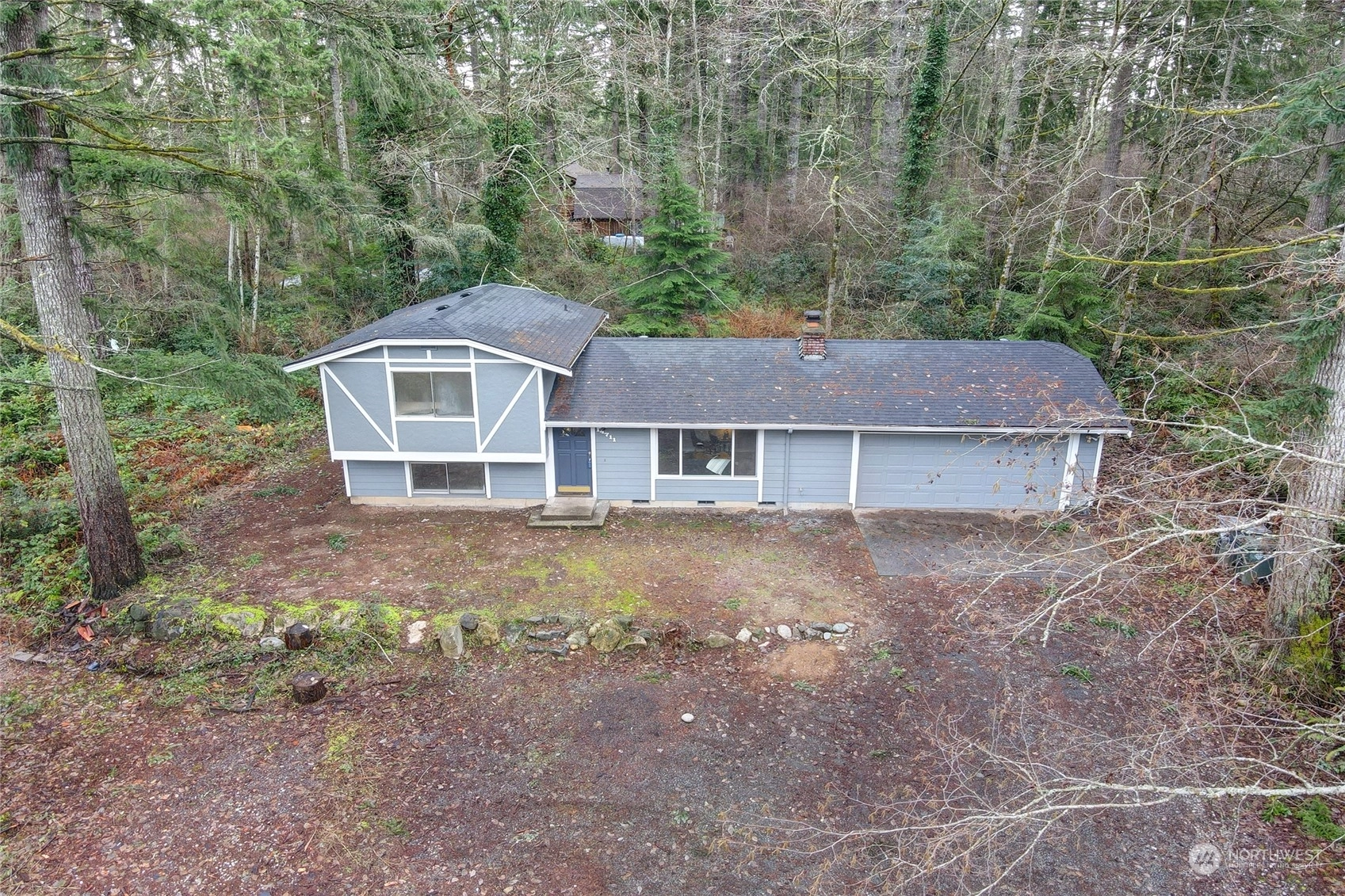 Located in a quiet community with lots of privacy with 1.23 acre of property. 2 bedrooms and 1 bath are on the upper floor. Main floor featuring living room with wood stove and kitchen with eating space. Bonus room on lower level.
